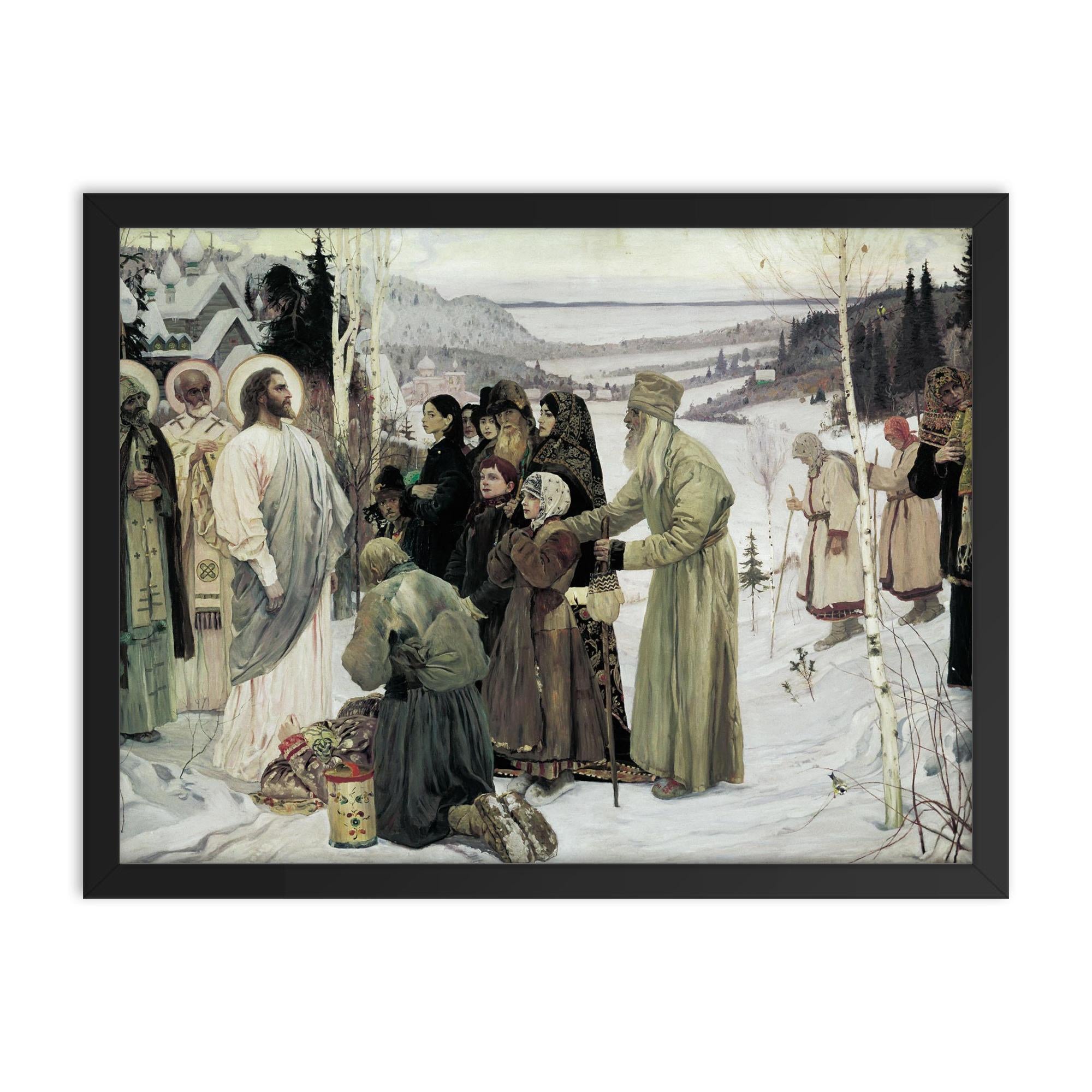 - Iconic Artwork: Featuring one of the most celebrated works by visionary Russian painter Mikhail Nesterov, this print brings soulful storytelling and enduring beauty to your wall. - Ready-to-Hang Elegance: Expertly framed in lightweight yet robust samba wood, this print blends durability with a refined finish to suit any decor—from modern minimalist to classic traditional. - Crystal-Clear Protection: Protected by premium plexiglass glazing, your artwork is shielded from dust and accidents—plus, it’s designed to prevent breakages, making shipping safe and stress-free. - Museum-Quality Reproduction: Every detail of Nesterov’s brushwork is reproduced with precision, ensuring vivid color and depth that commands attention from every angle. - Built to Last: The combination of samba wood and plexiglass means your framed print will maintain its beauty for years to come, wherever you choose to display it.