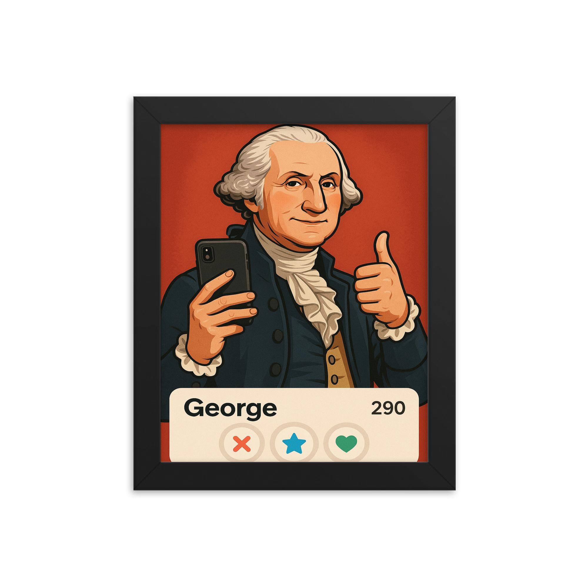 George Washington Humorous Dating Profile Framed Wall Art Print – Unique Historical Portrait Gift for Home or Office Decor