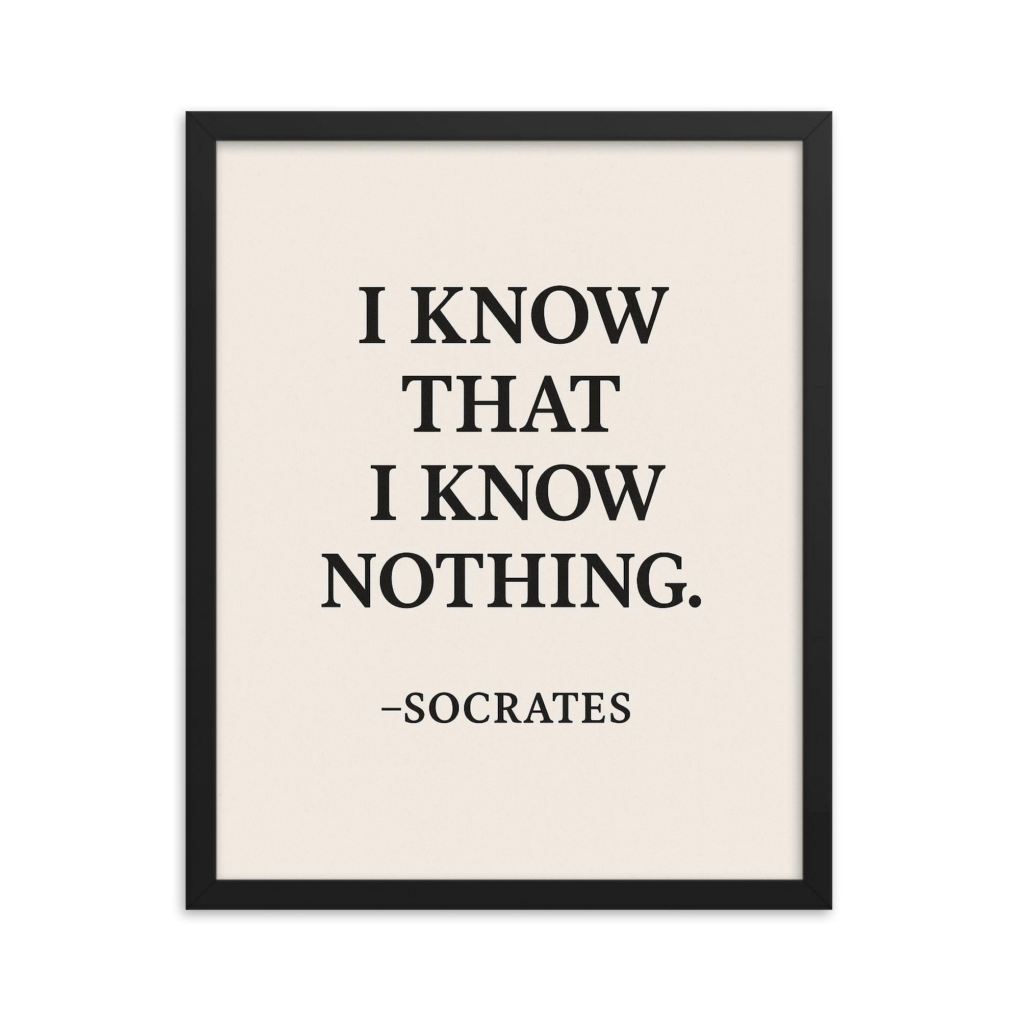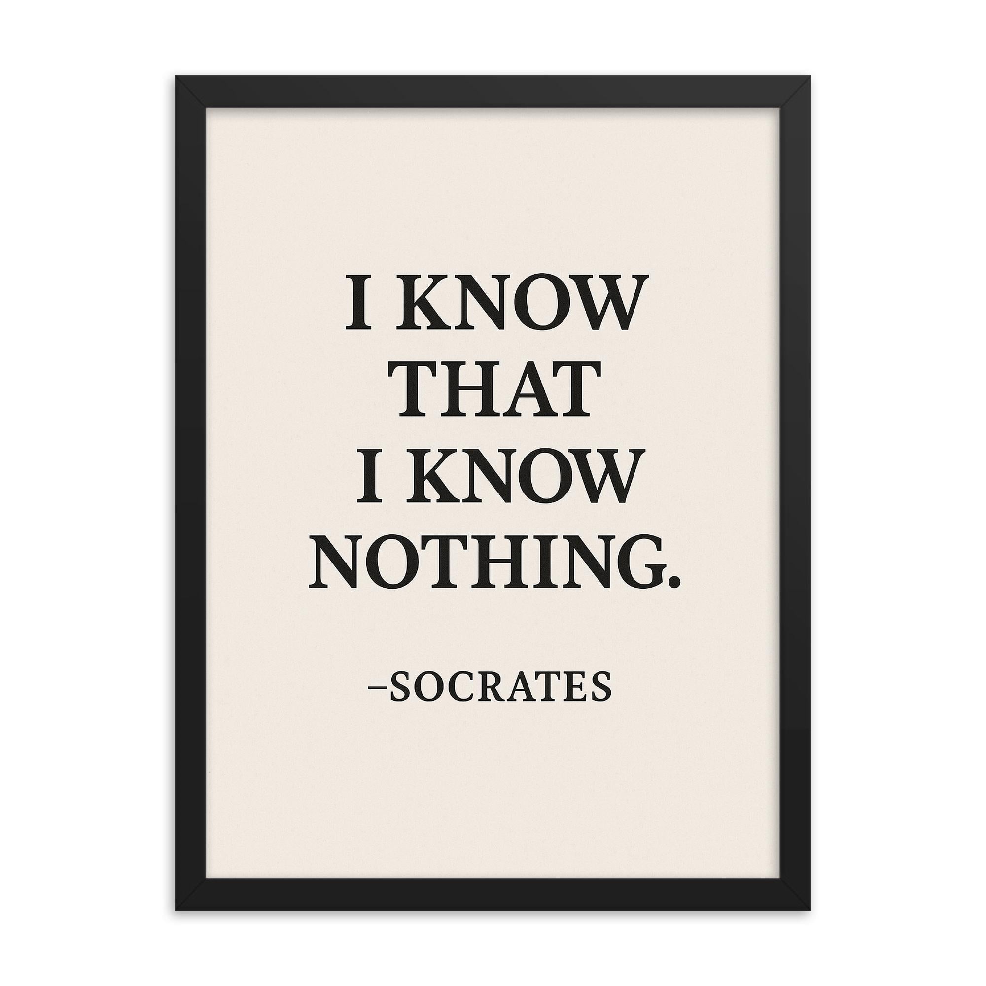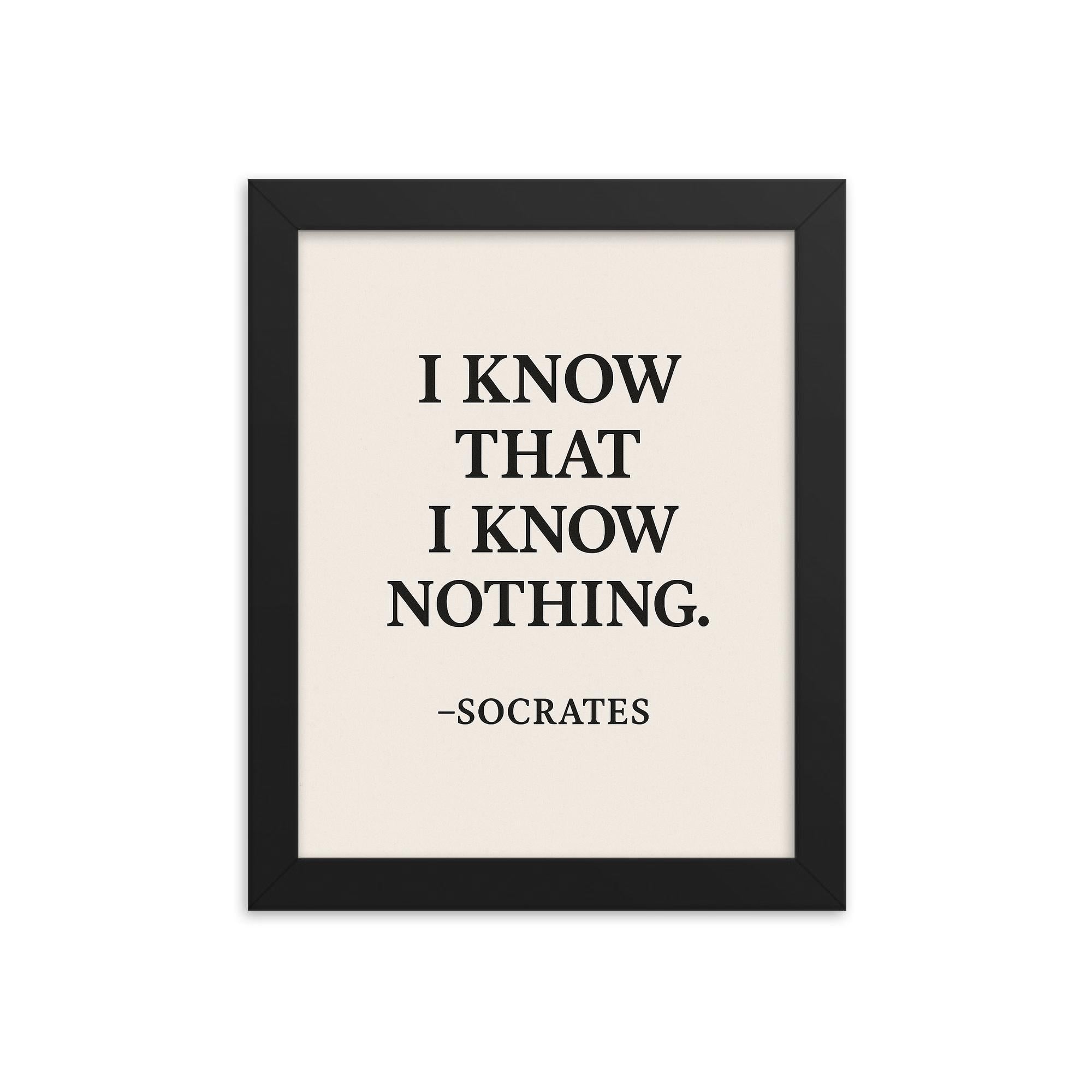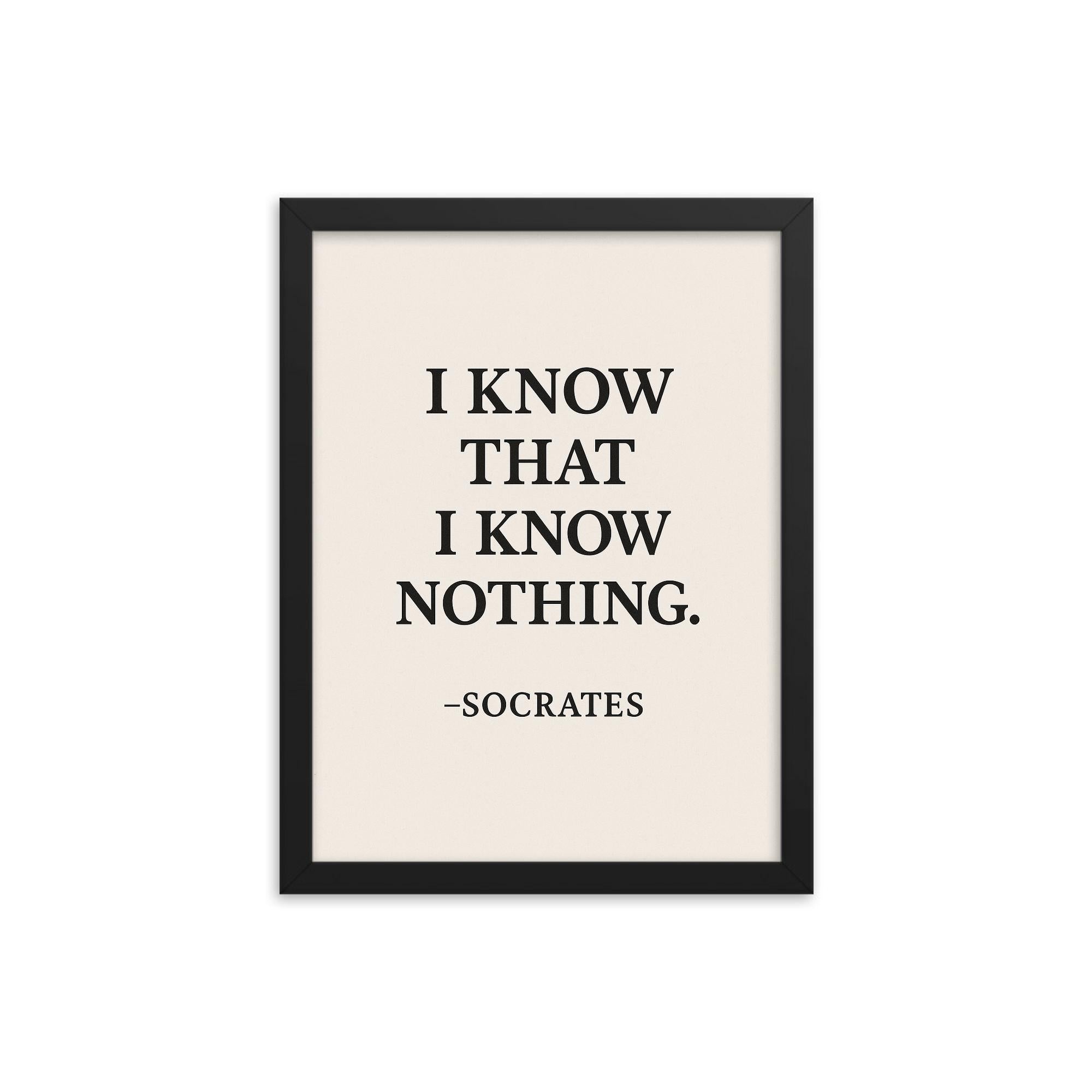Socrates I Know That I Know Nothing Framed Print – Inspiring Philosophical Wall Art, Thoughtful Decor Gift, Ready to Hang