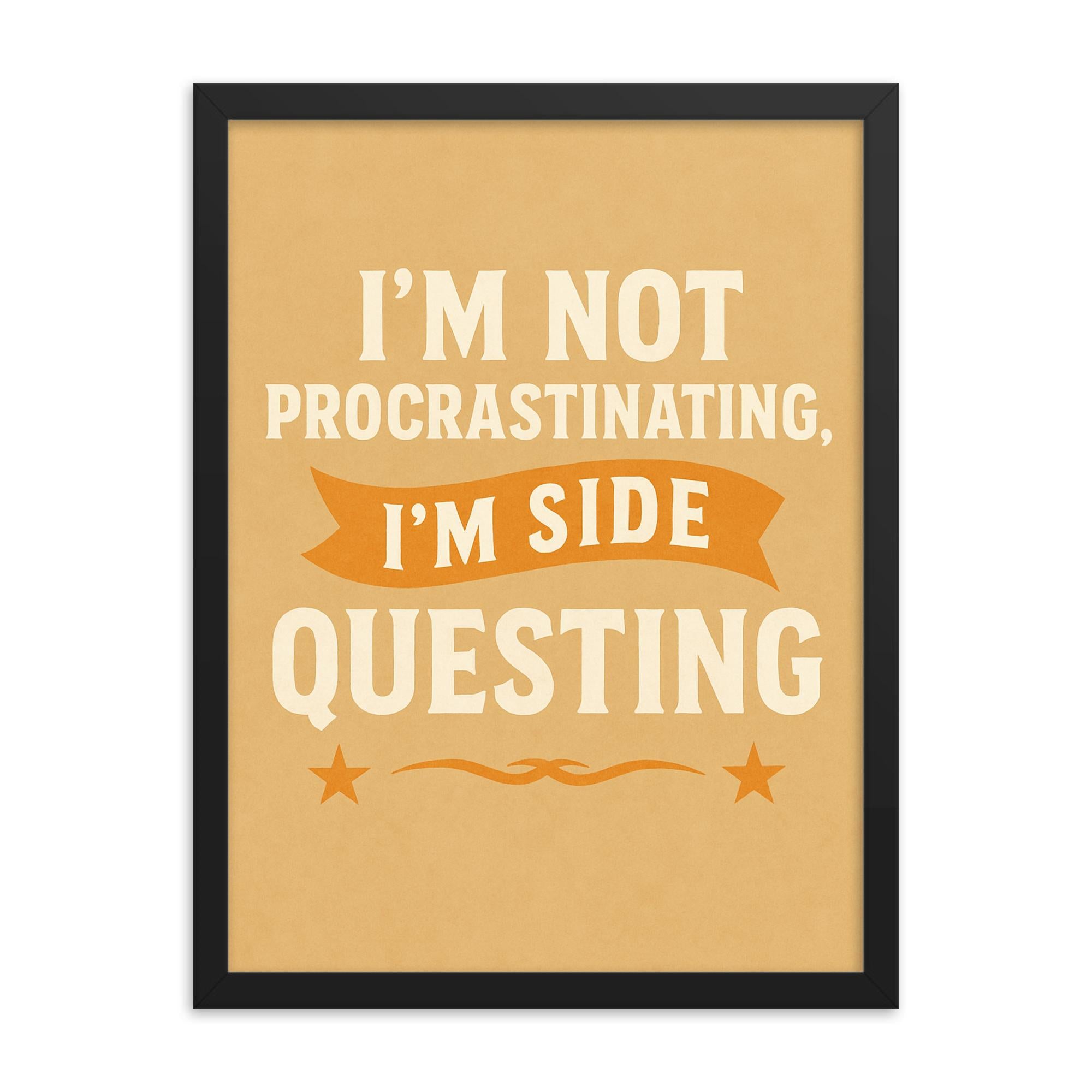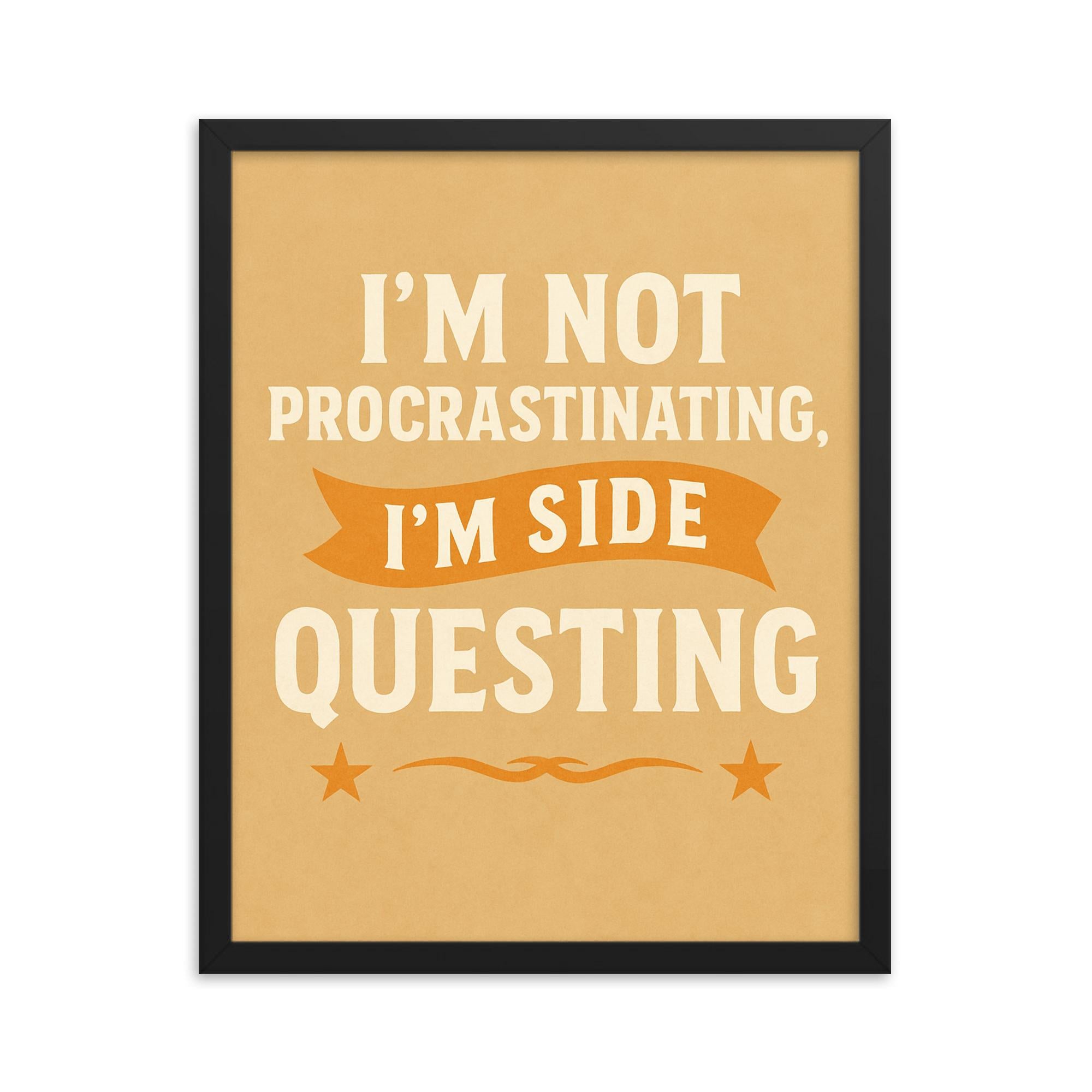 I’m Not Procrastinating I’m Side Questing Framed Print – Funny Gamer Wall Art for Home Office, Unique Gift for Video Game Lovers