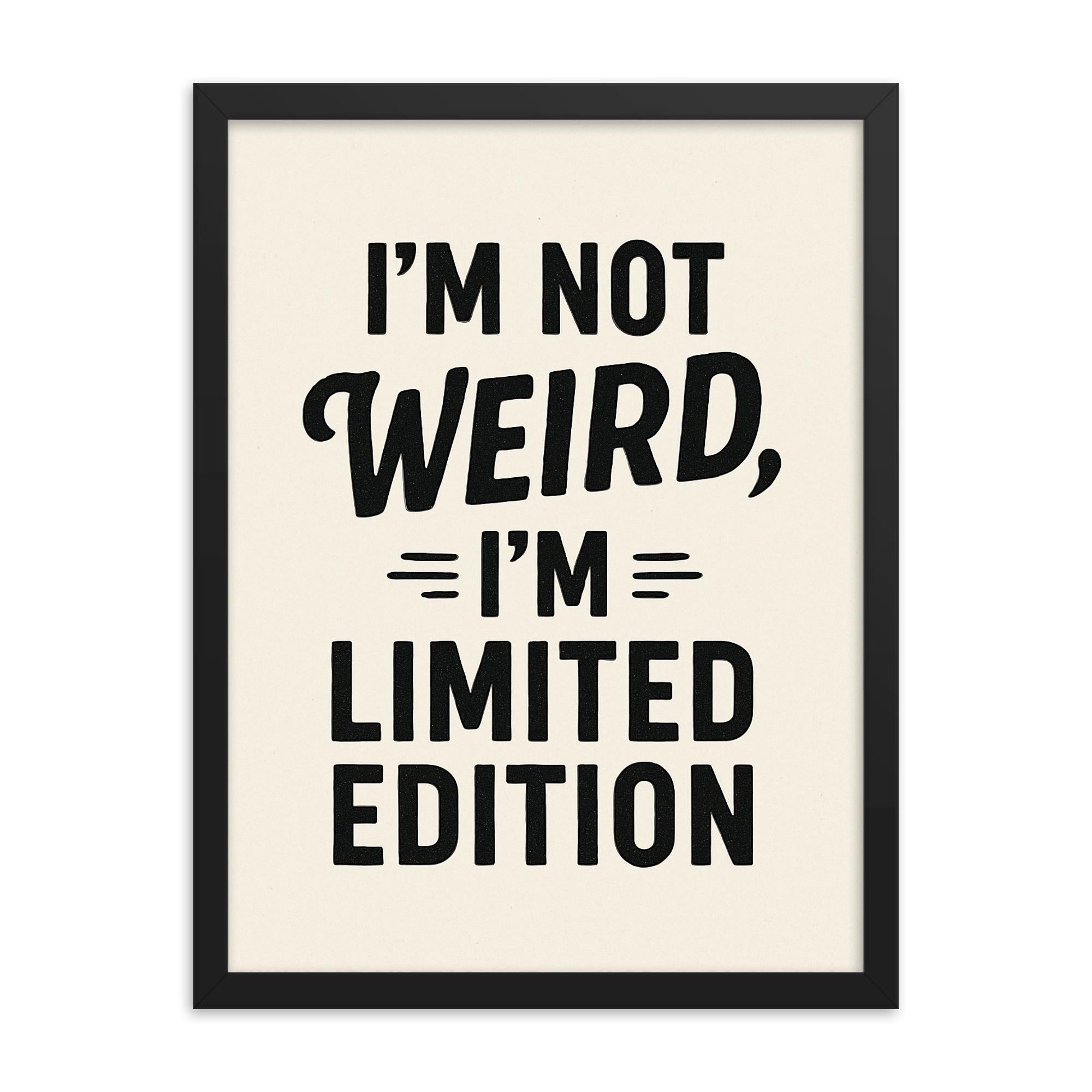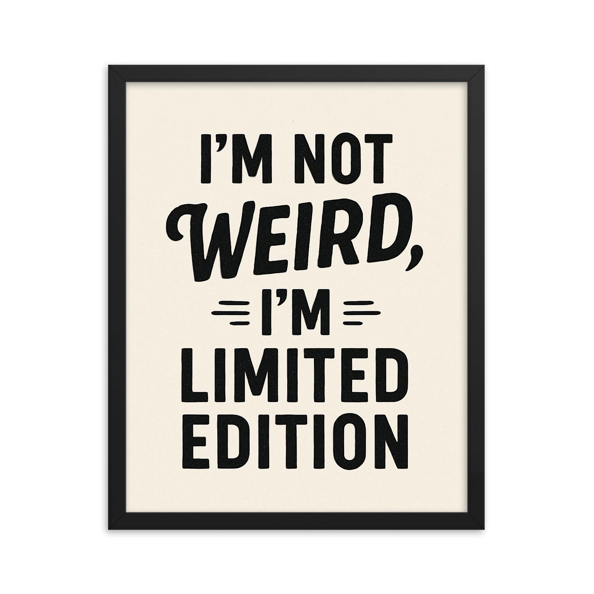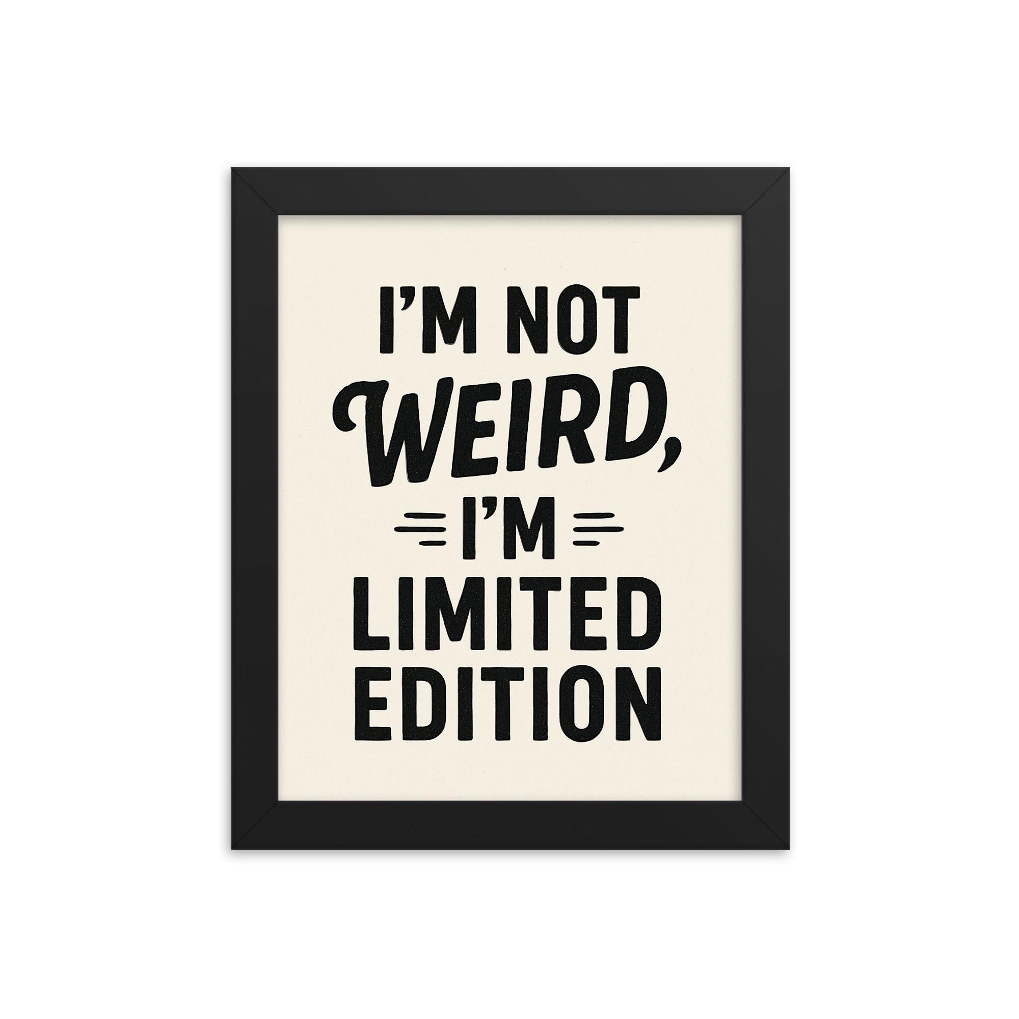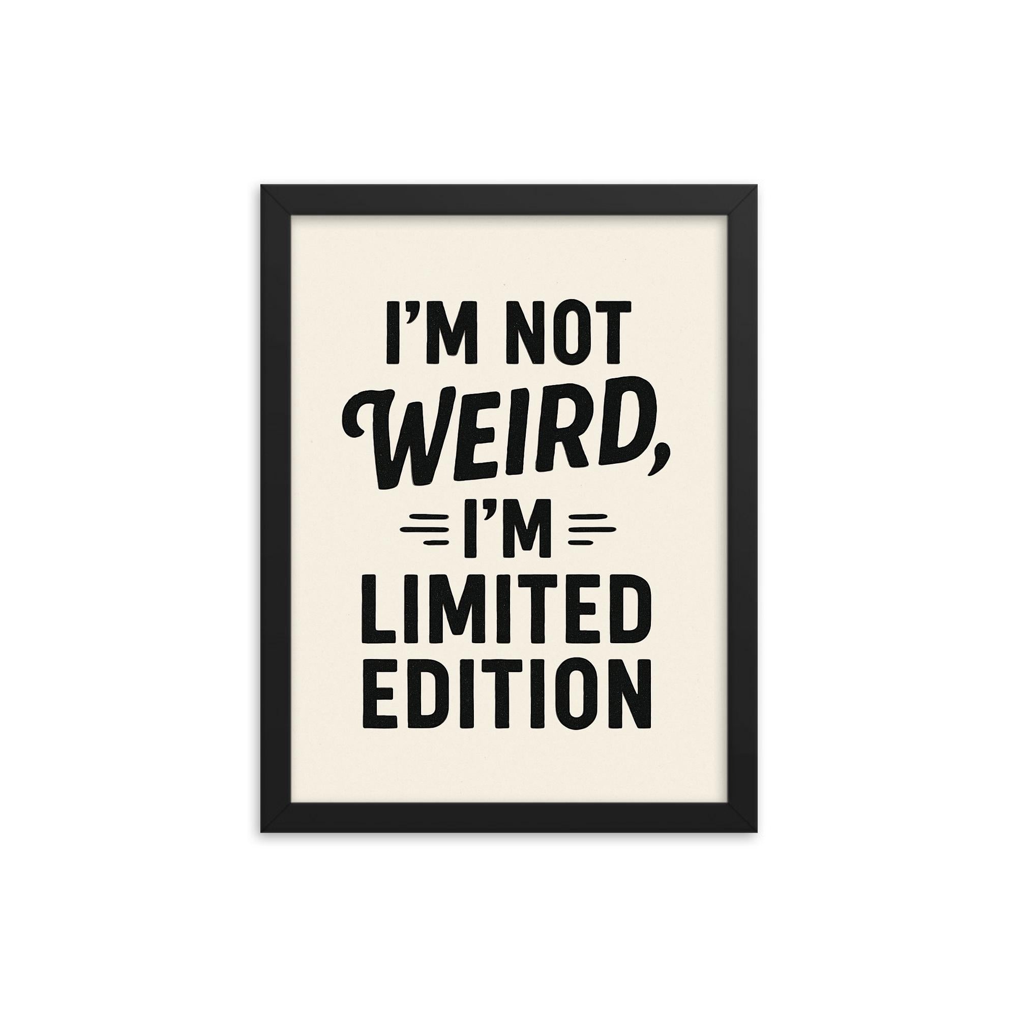 Stand out. Celebrate your individuality with a framed print that declares exactly who you are – not weird, but limited edition.