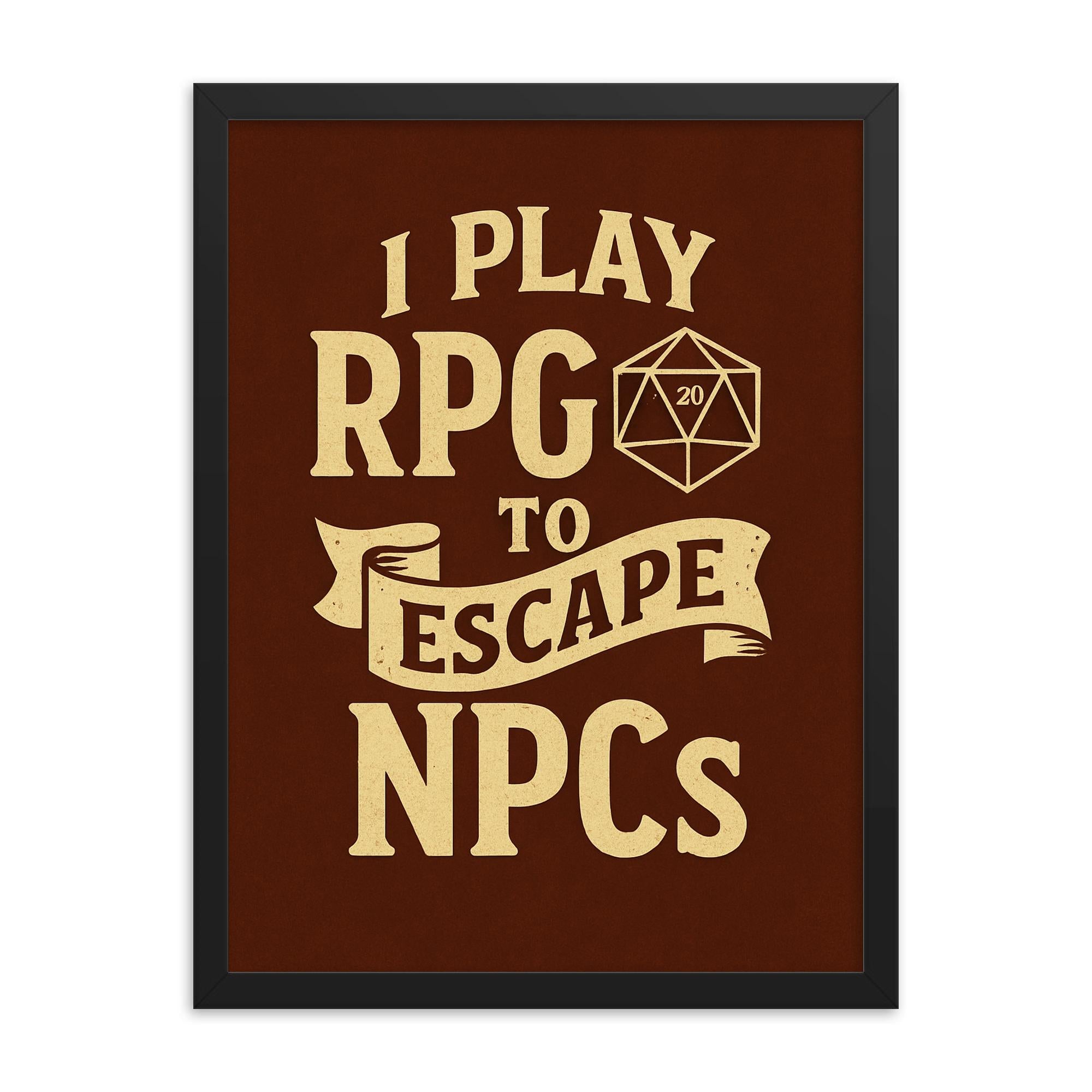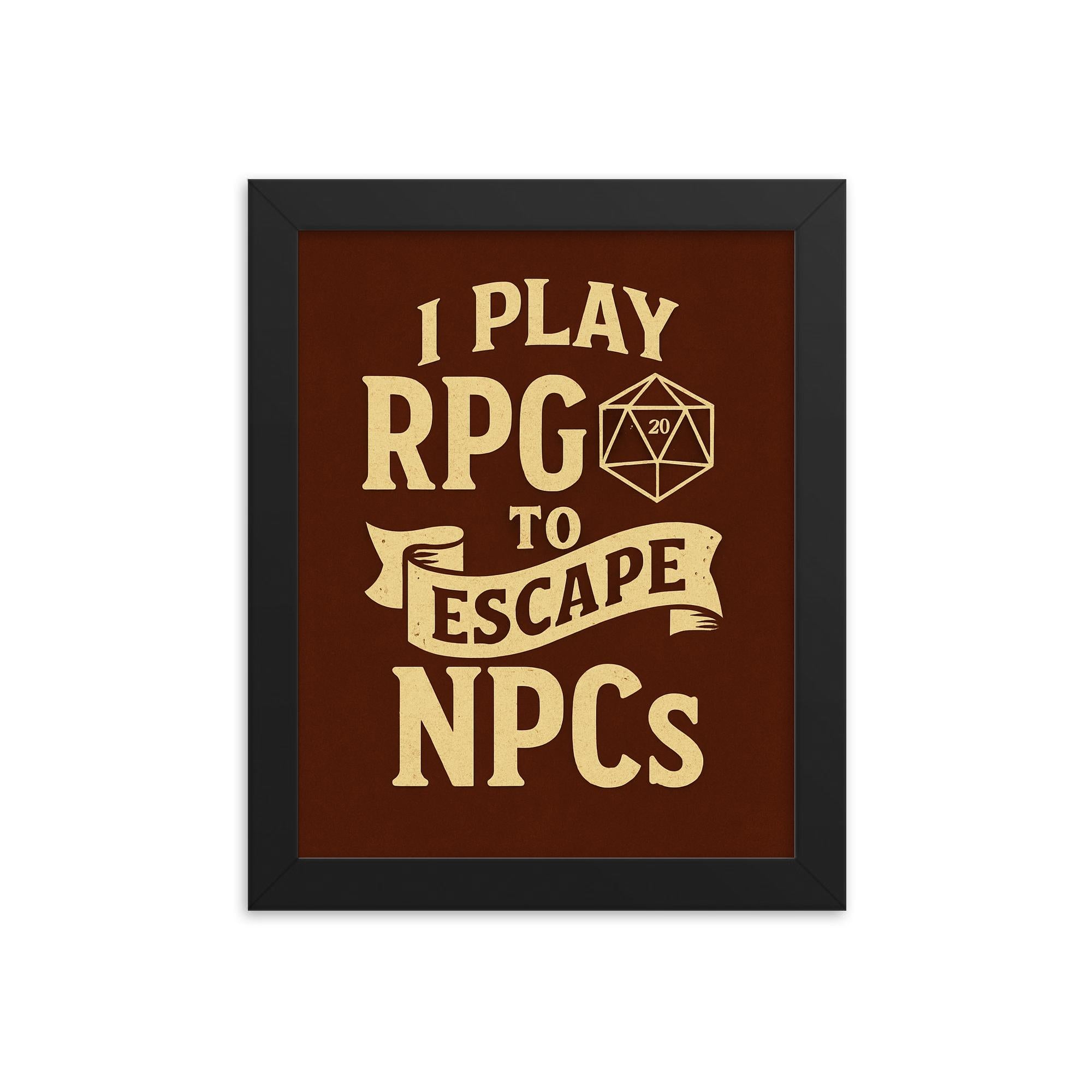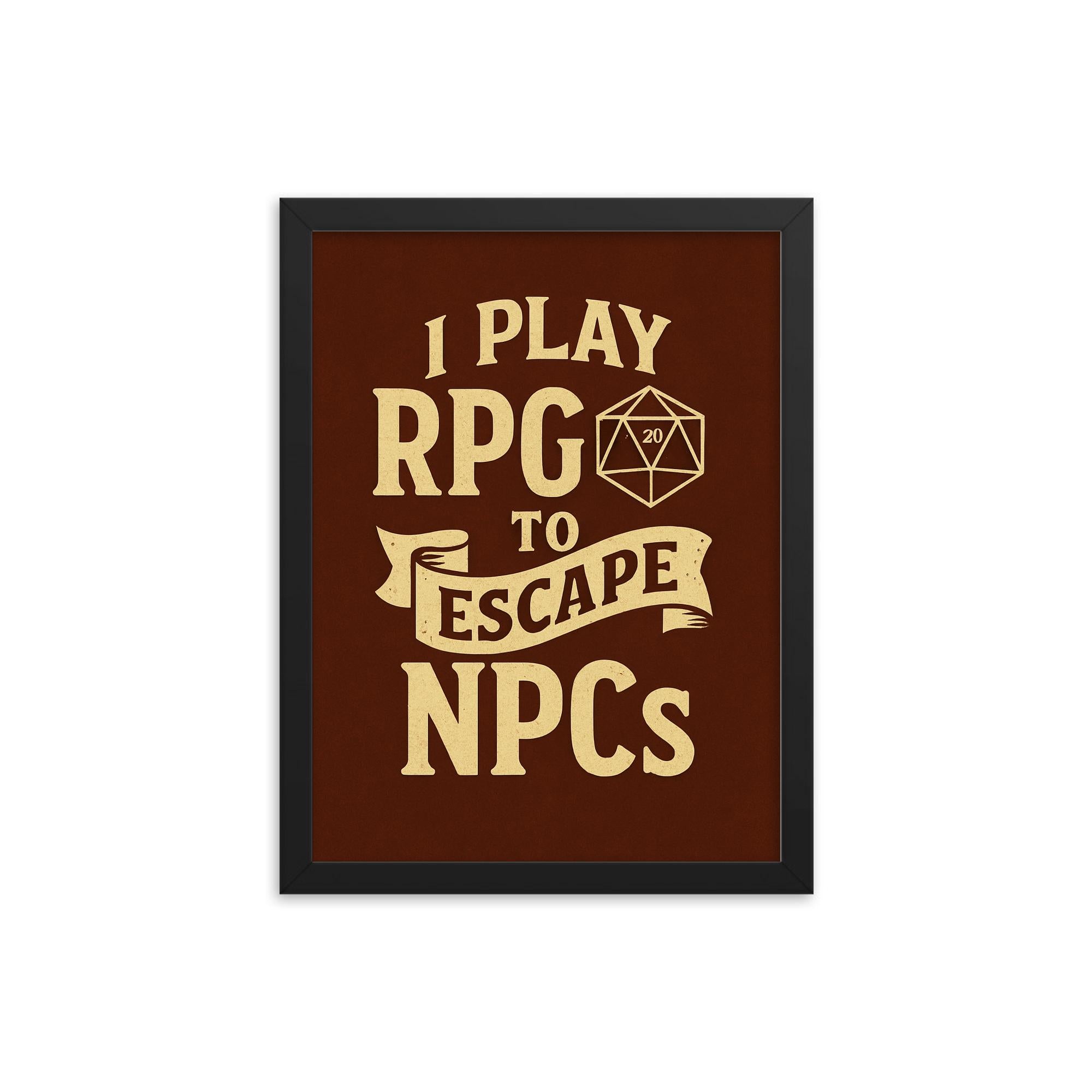 Looking for the perfect gift for the RPG lover in your life—or the perfect finishing touch for your own game room, office, or cozy nook? Our framed print, I play RPGs to escape NPCs, is the wall art every gamer needs right now.