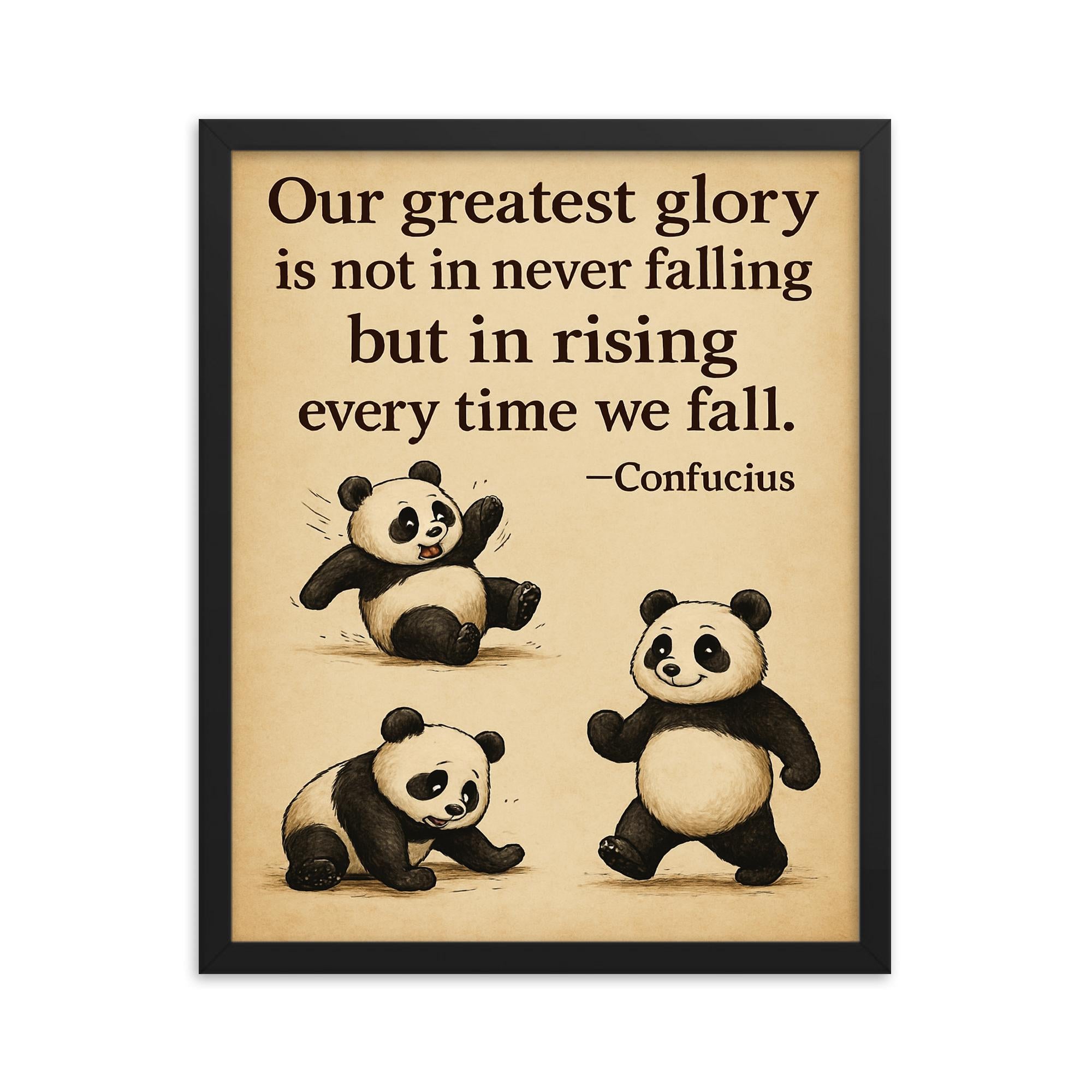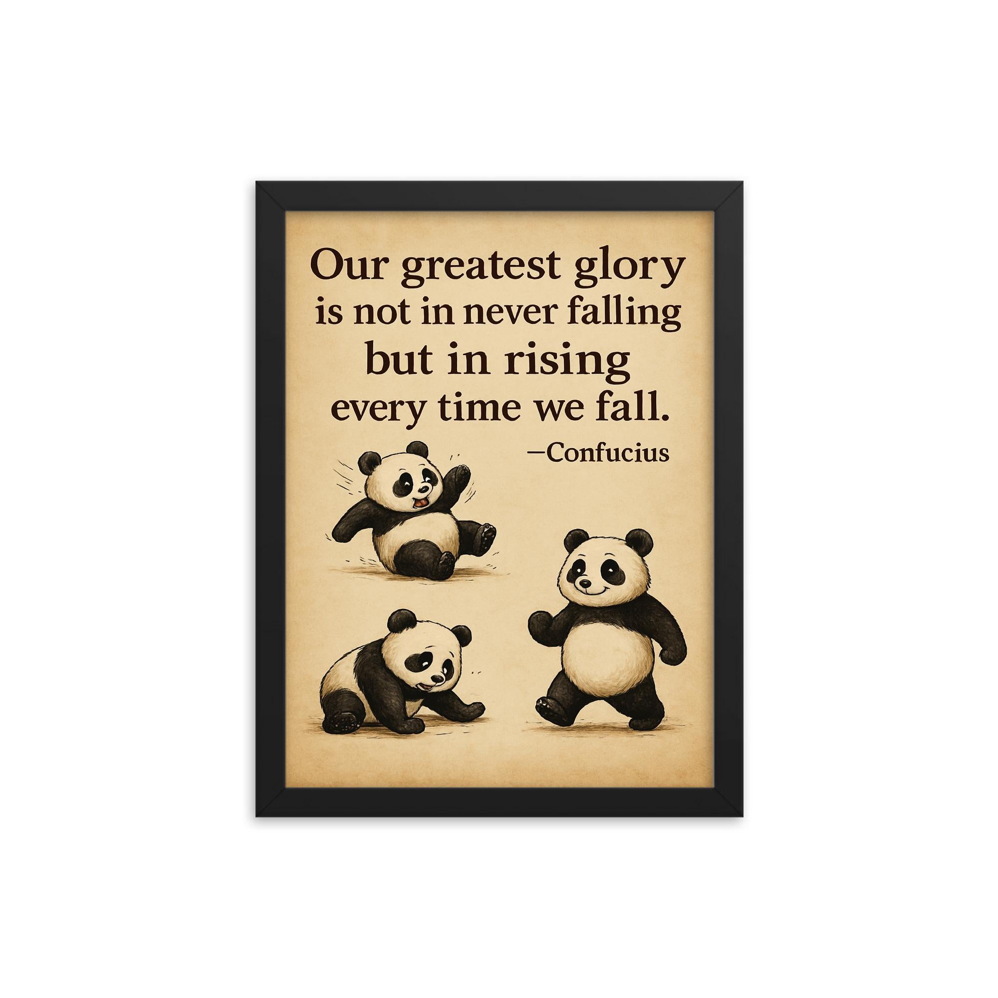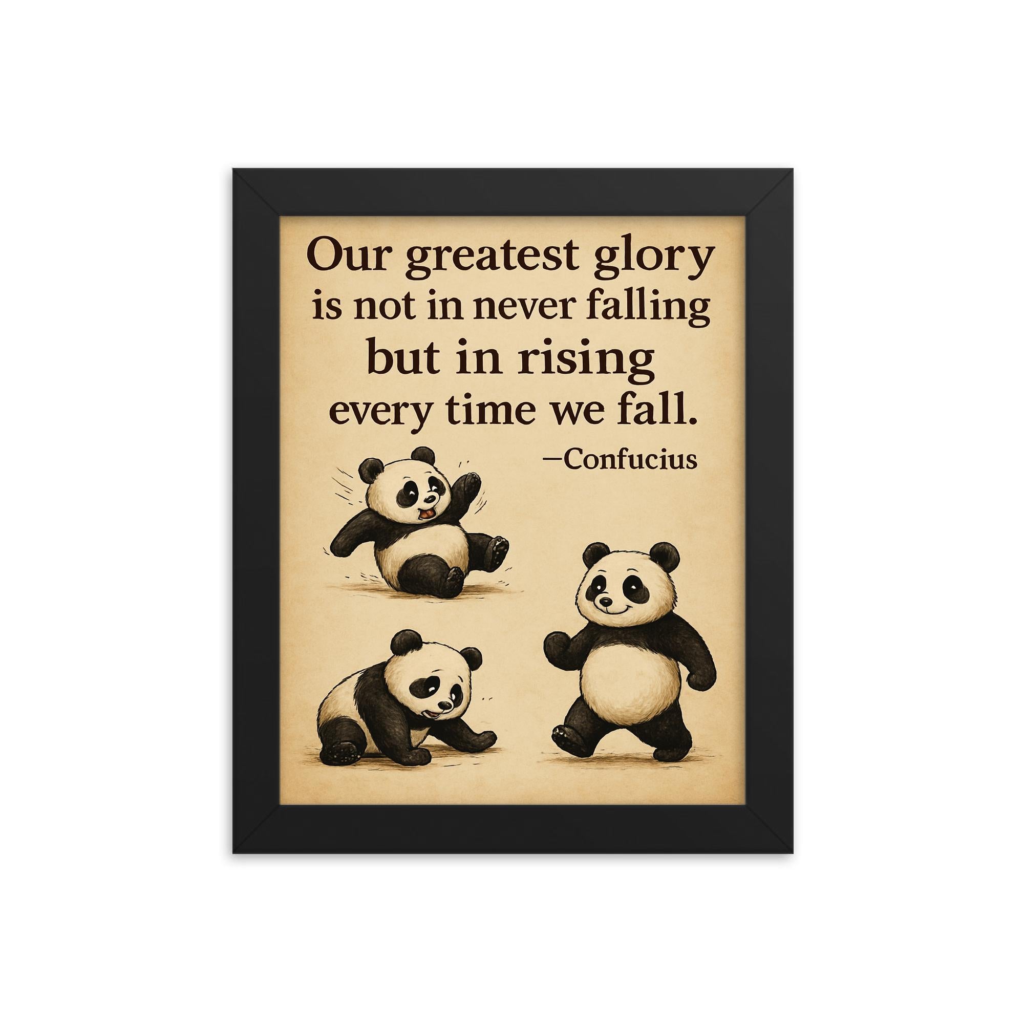 Order now and let the "Inspiring Quote Clumsy Panda Rising After Falling" framed print become a beloved centerpiece in your home, office, or any space that could use a touch of encouragement—and a lot of smiles.