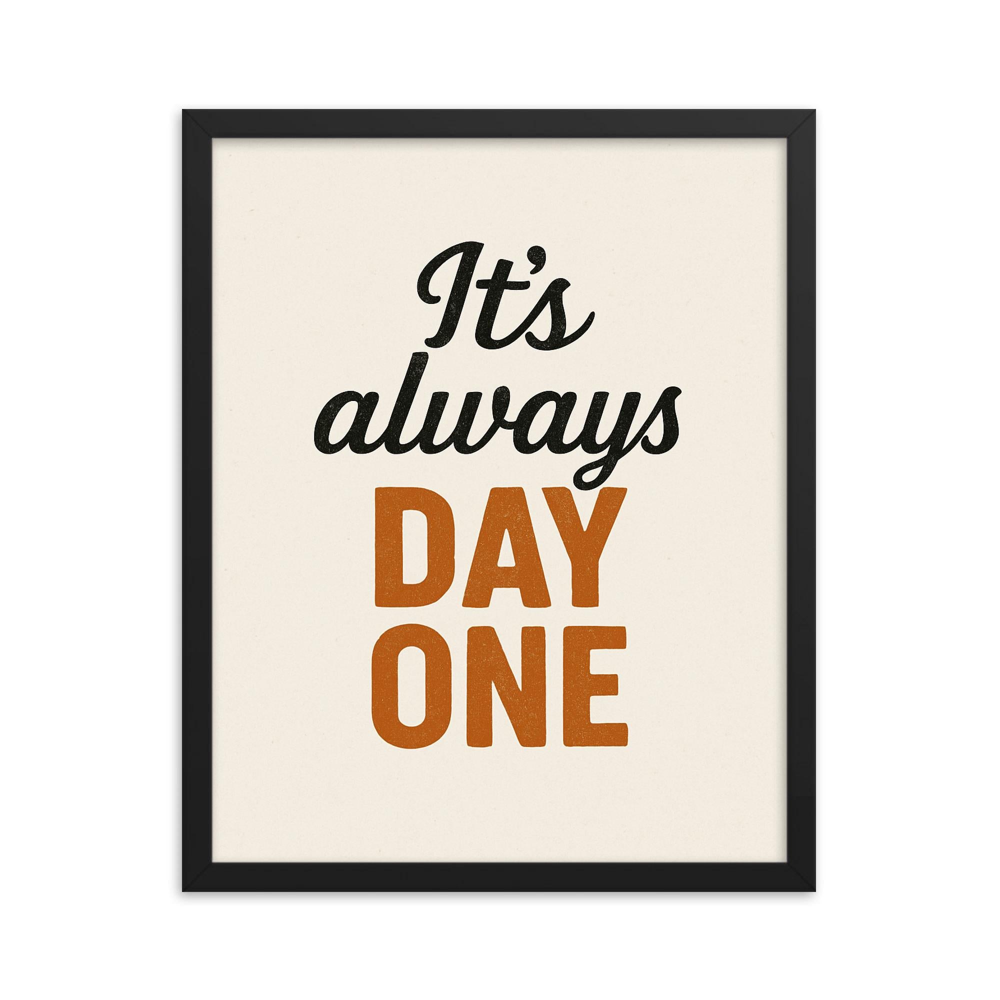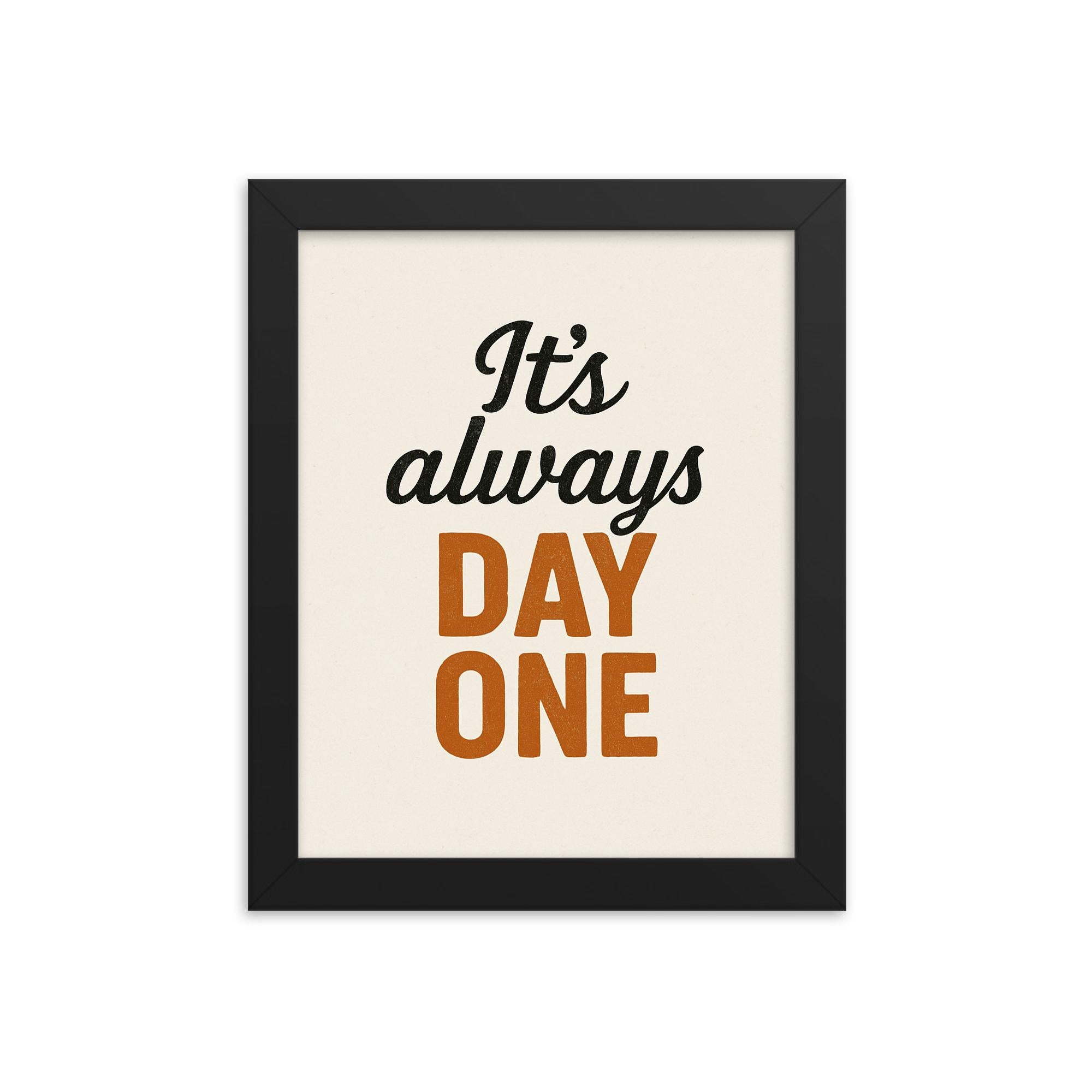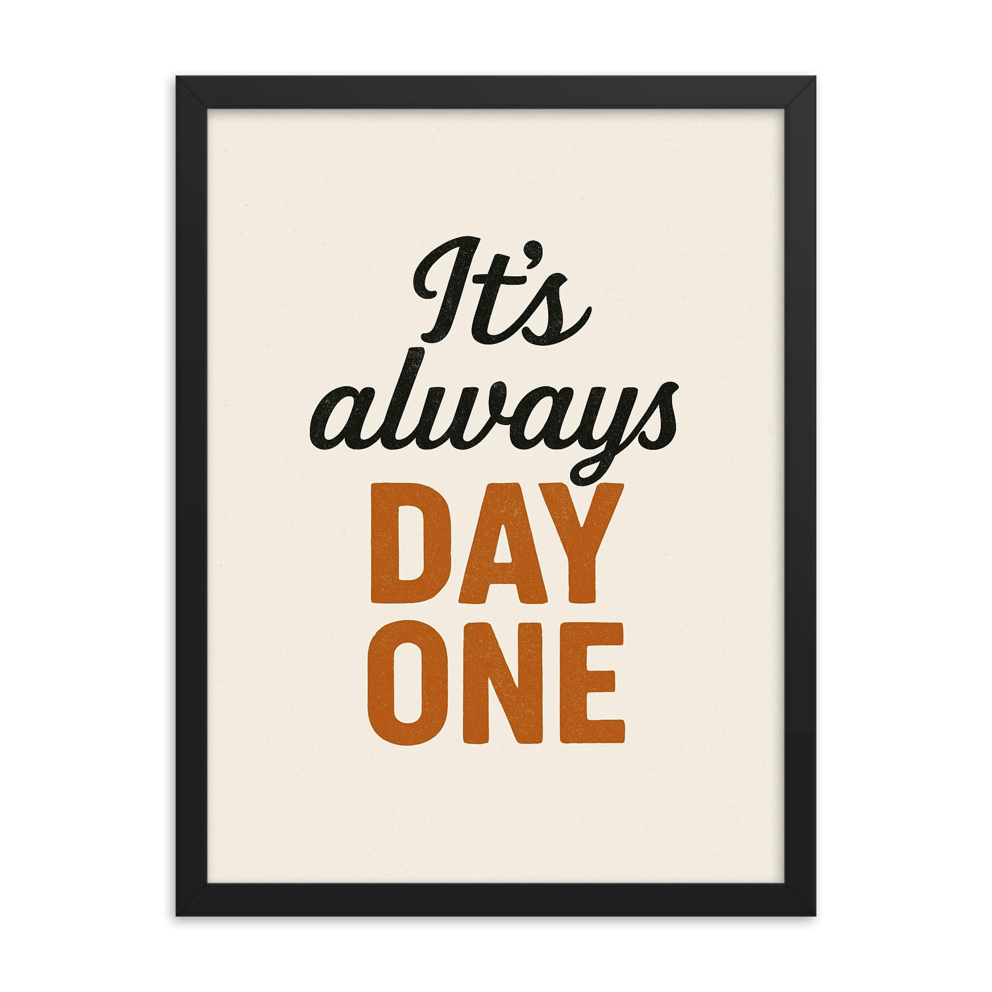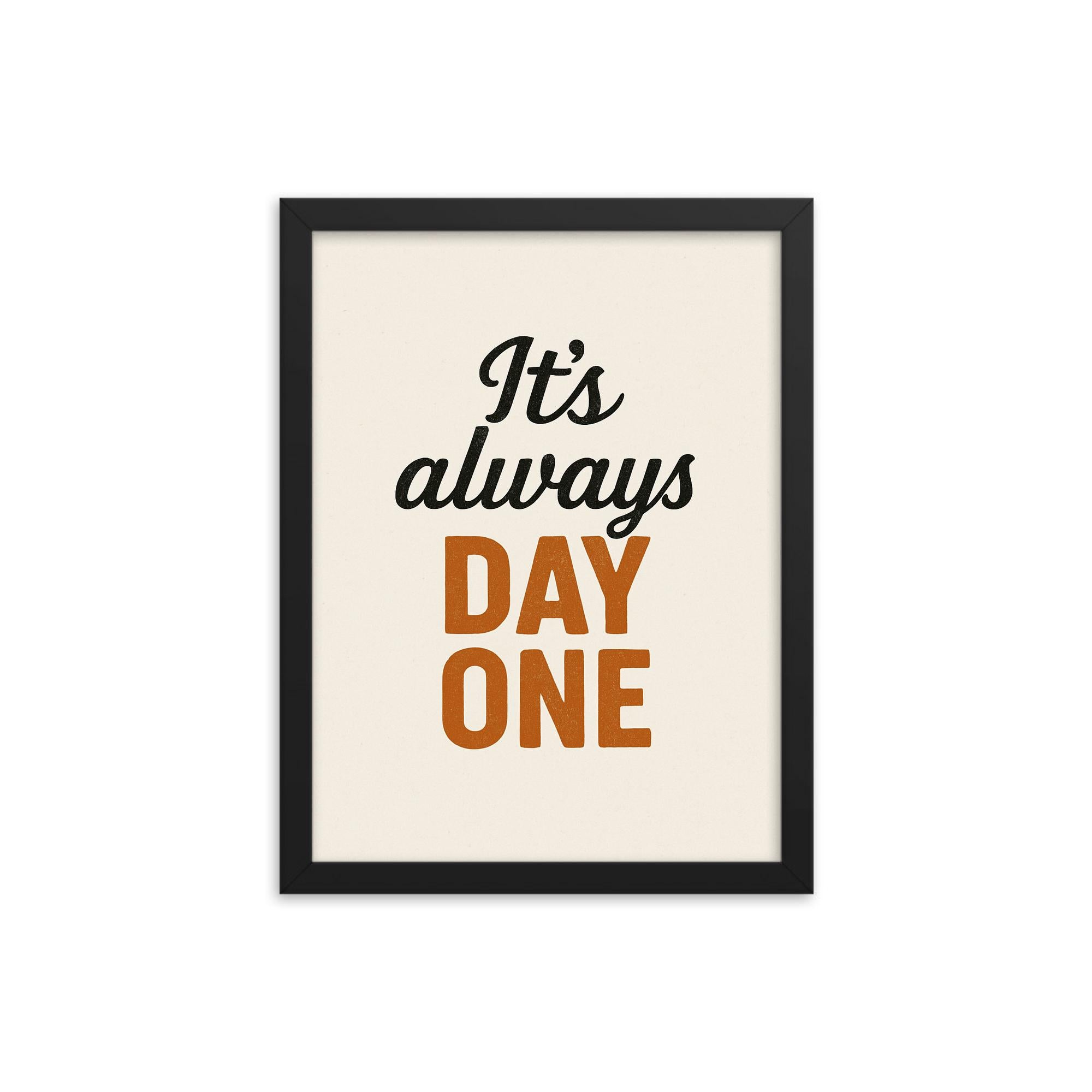 It's Always Day One Motivational Framed Print – Inspiring Wall Art for Office, Home Decor, Entrepreneur Gift – Modern Ready-to-Hang Poster