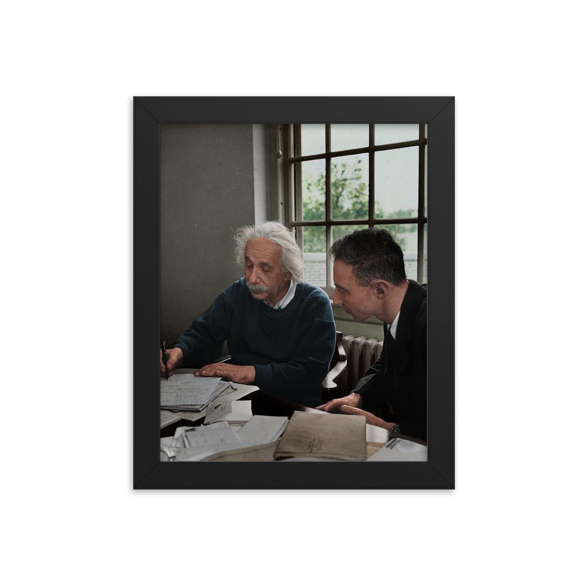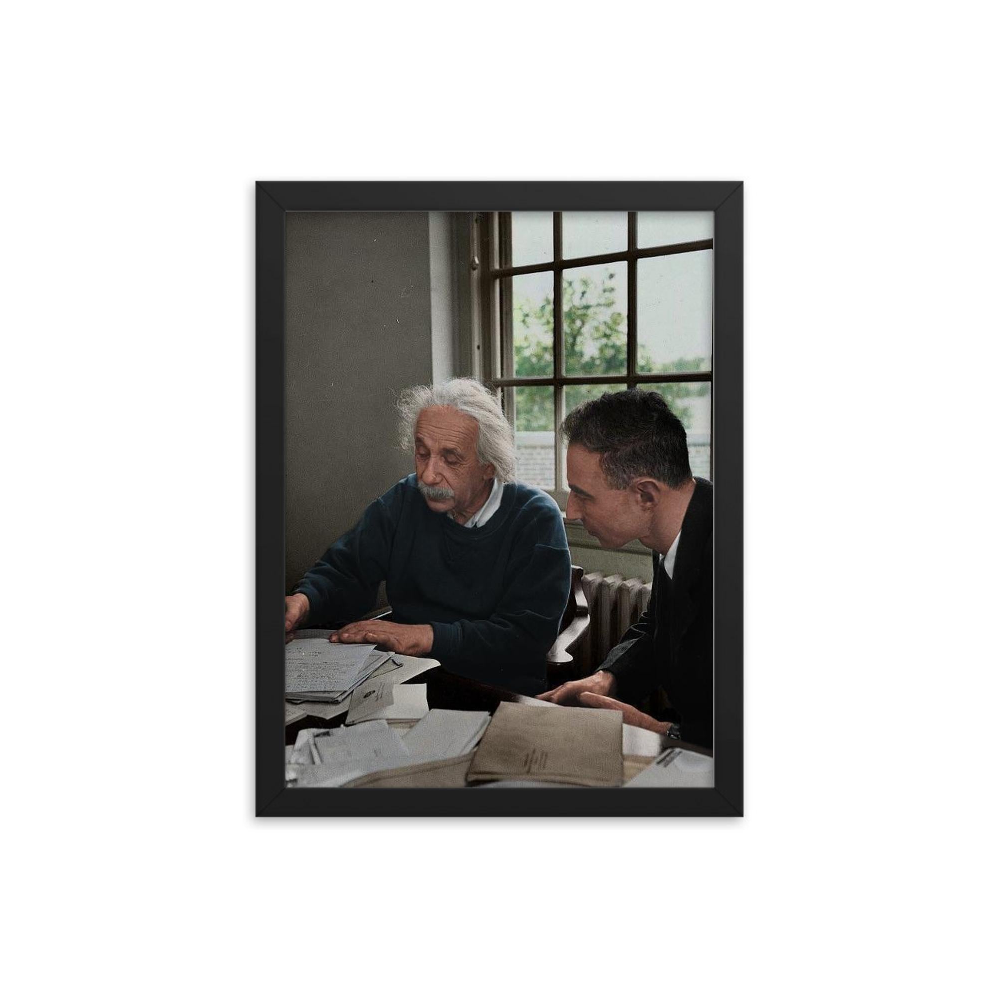 Step into history with this stunning framed print: J. Robert Oppenheimer and Albert Einstein, 1947.