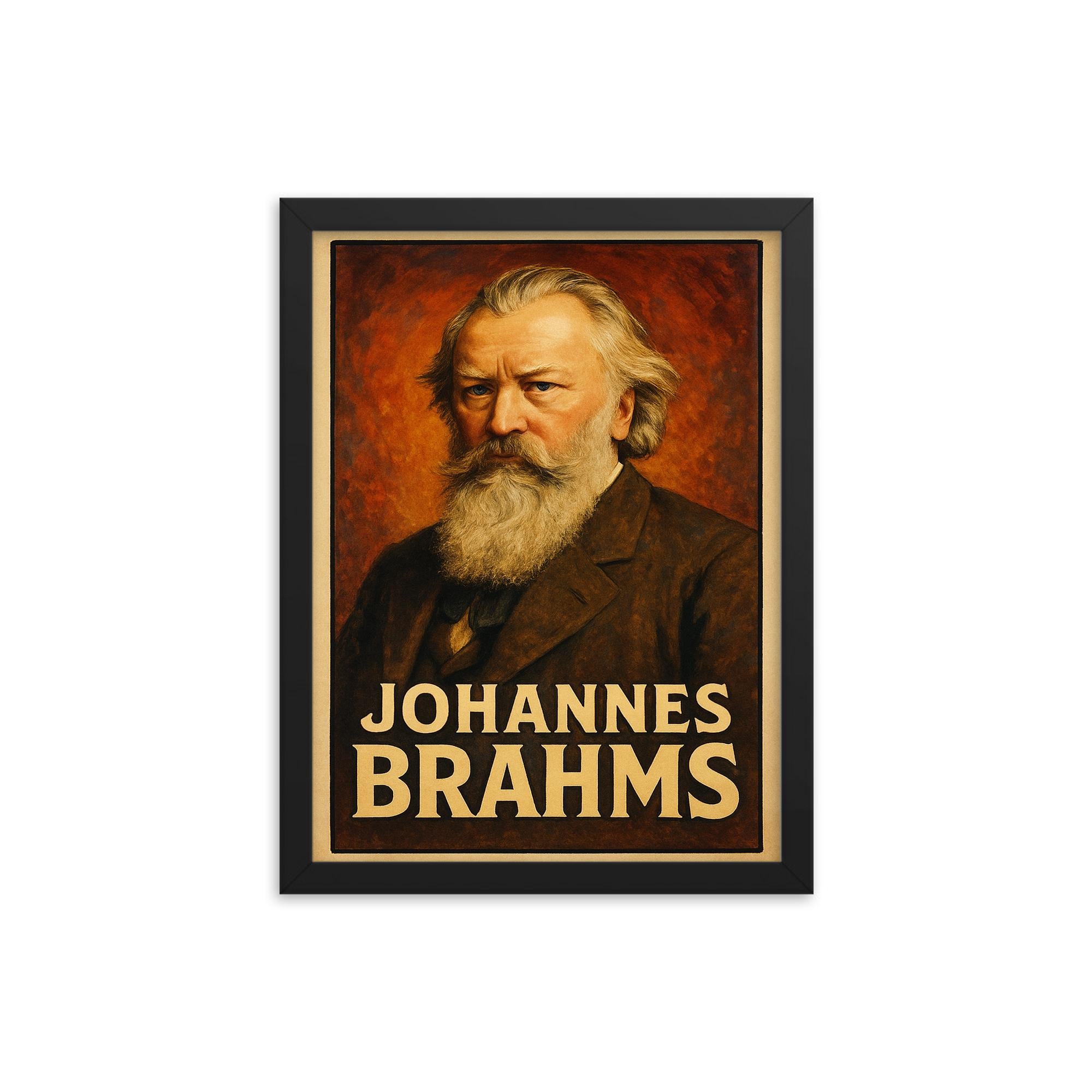 Elevate your space with this stunning framed print of Johannes Brahms, a perfect blend of elegance and artistry for any wall.