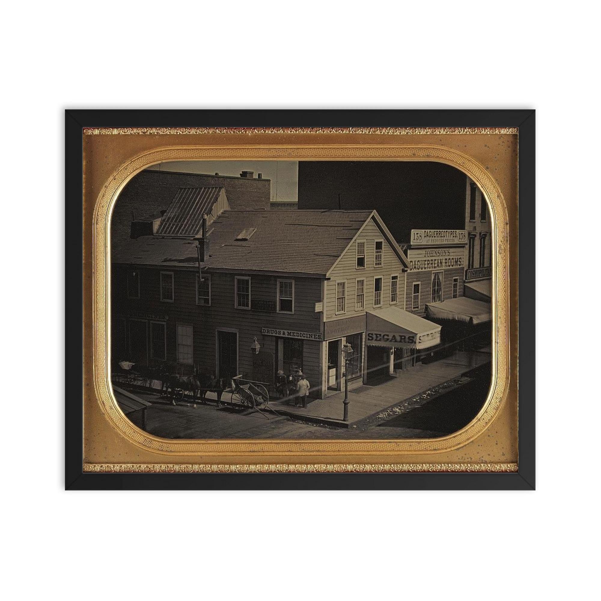 Framed Johnson’s Daguerreian Rooms Wall Art – Historic San Francisco 1850s Print by George H. Johnson – Vintage California Decor