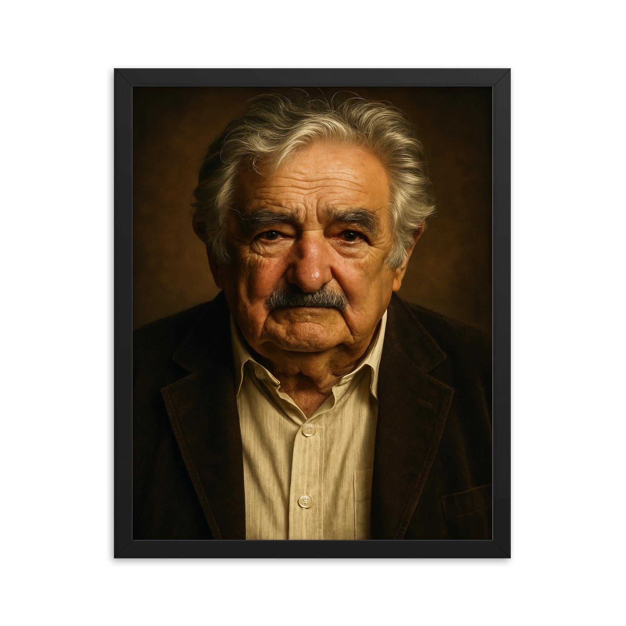 Jose Mujica, renowned for his authentic leadership and inspiring life story, captures attention beyond the canvas—this framed print invites reflection and conversation, bearing the spirit of resilience and true humility.