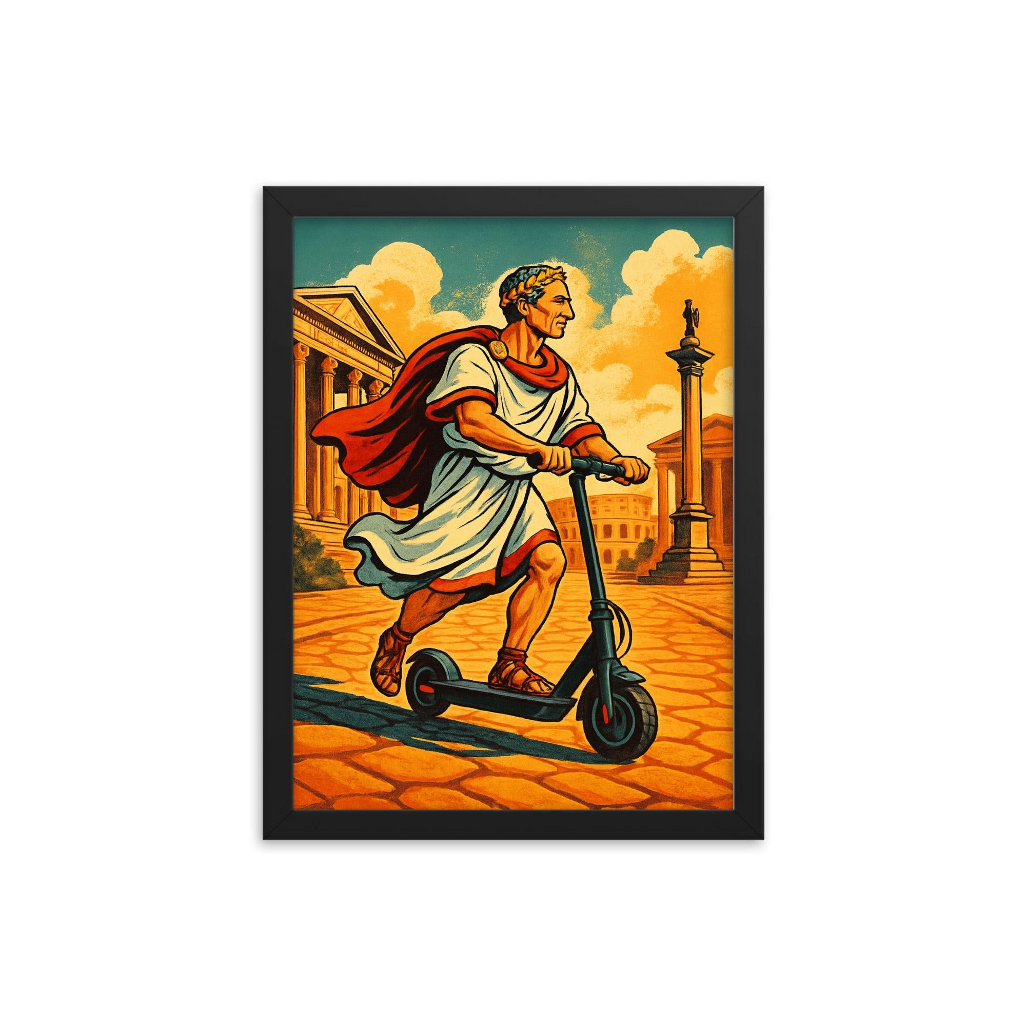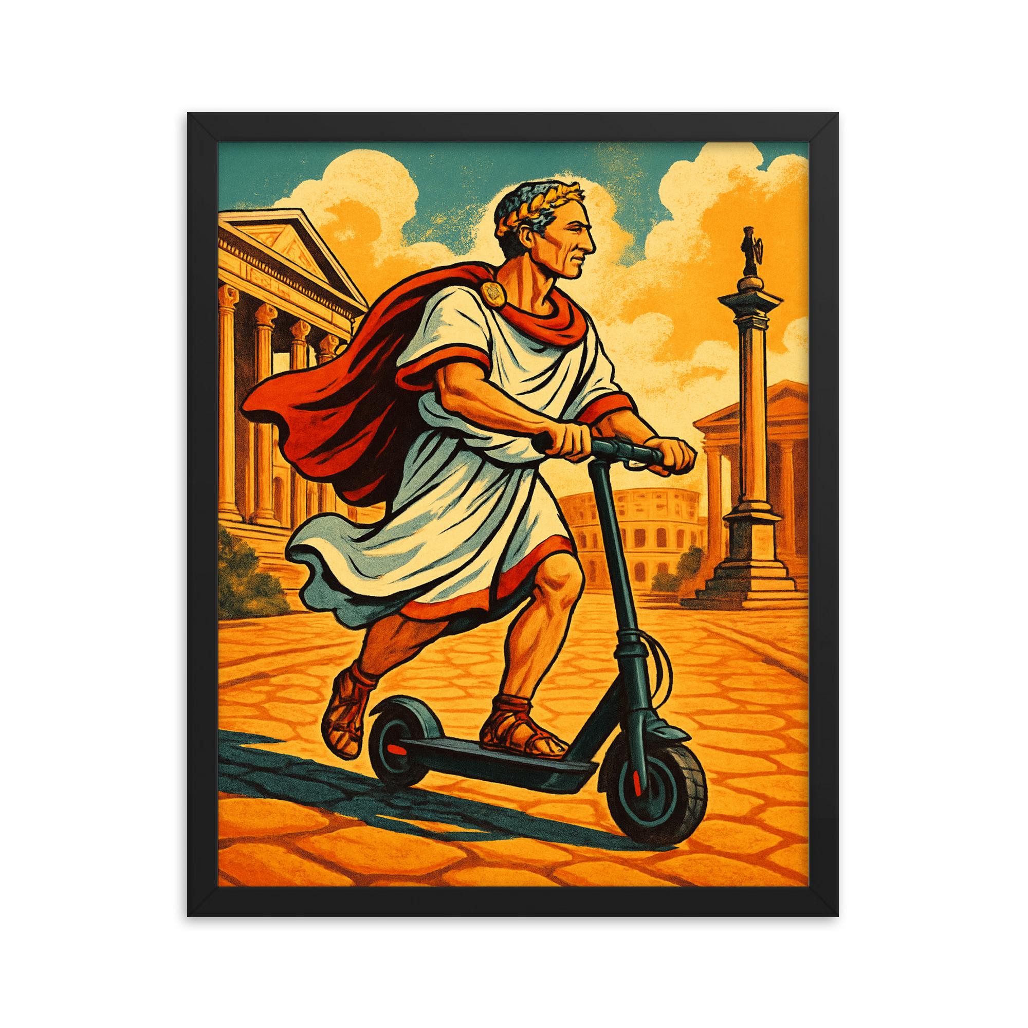 Julius Caesar Scooter Wall Art Framed Print – Unique Ancient Rome Historical Decor for Living Room & Office