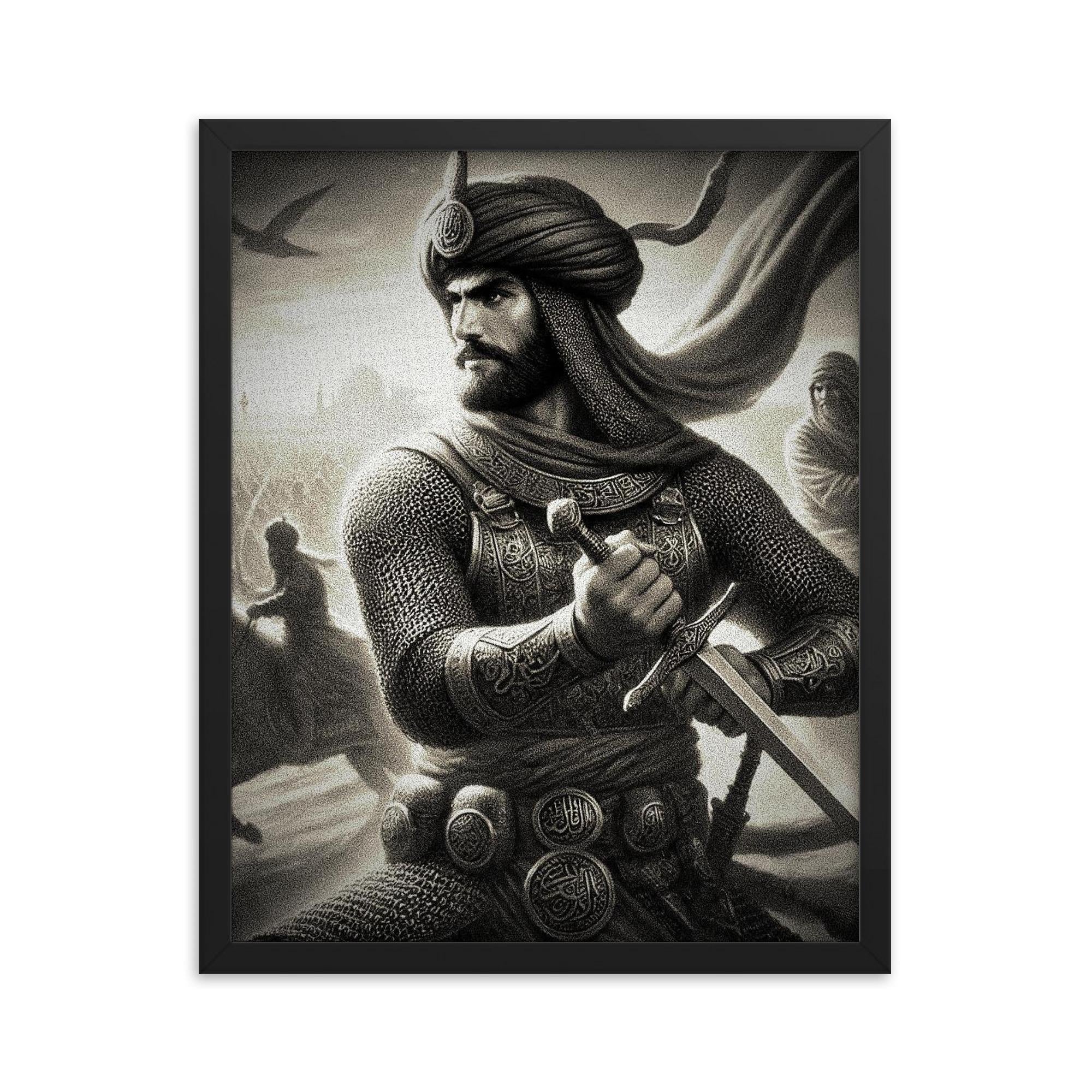 Celebrate the legacy of Khalid Ibn al-Walid, one of history's most revered military commanders, with this elegantly framed print. A symbol of bravery and tactical genius, this artwork is a profound tribute to his unmatched prowess and enduring influence. Ideal for enthusiasts of history and inspiration, this piece serves as a powerful reminder of strategic brilliance and timeless leadership.