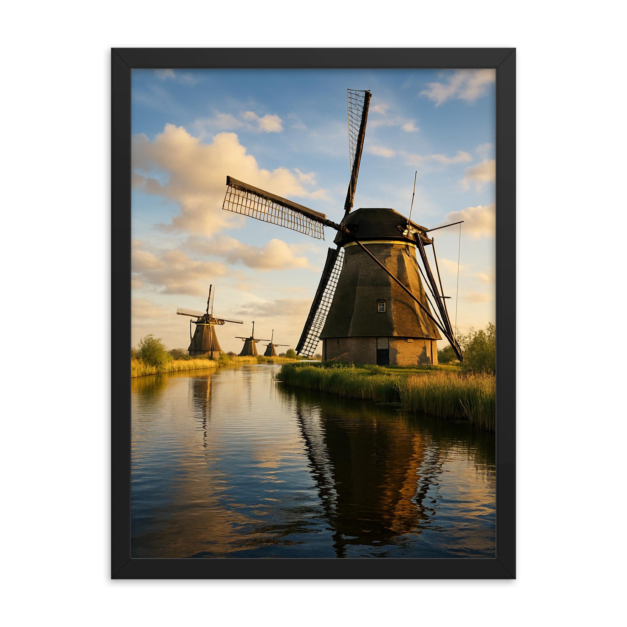 Transform your living space with the timeless charm of our Kinderdijk Windmills Netherlands framed print — a stunning piece of wall art that captures the serene beauty and iconic spirit of Holland’s famous windmills.