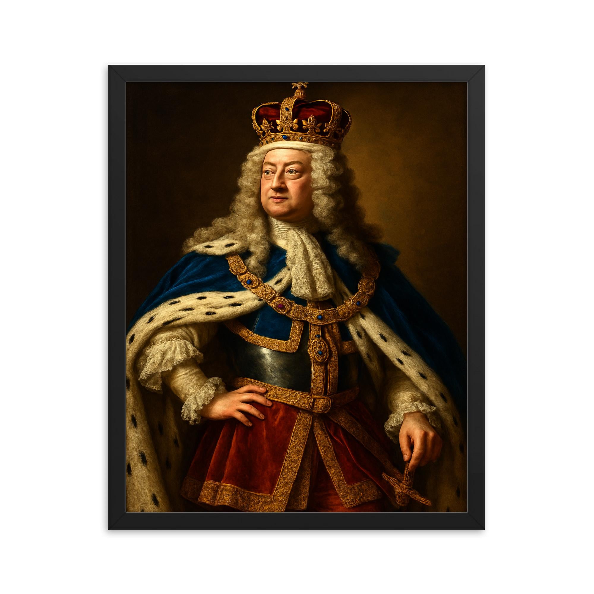 King George II Historical Framed Wall Art Print – Classic Royal Portrait Decor for Home & Office, Museum-Quality Frame