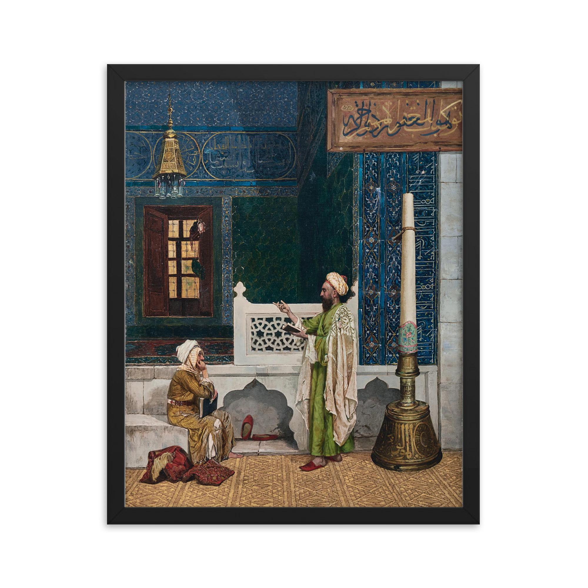 Elevate your space with a piece of timeless elegance: our Framed Print of Koranic Instruction by Osman Hamdy Bey, 1890.