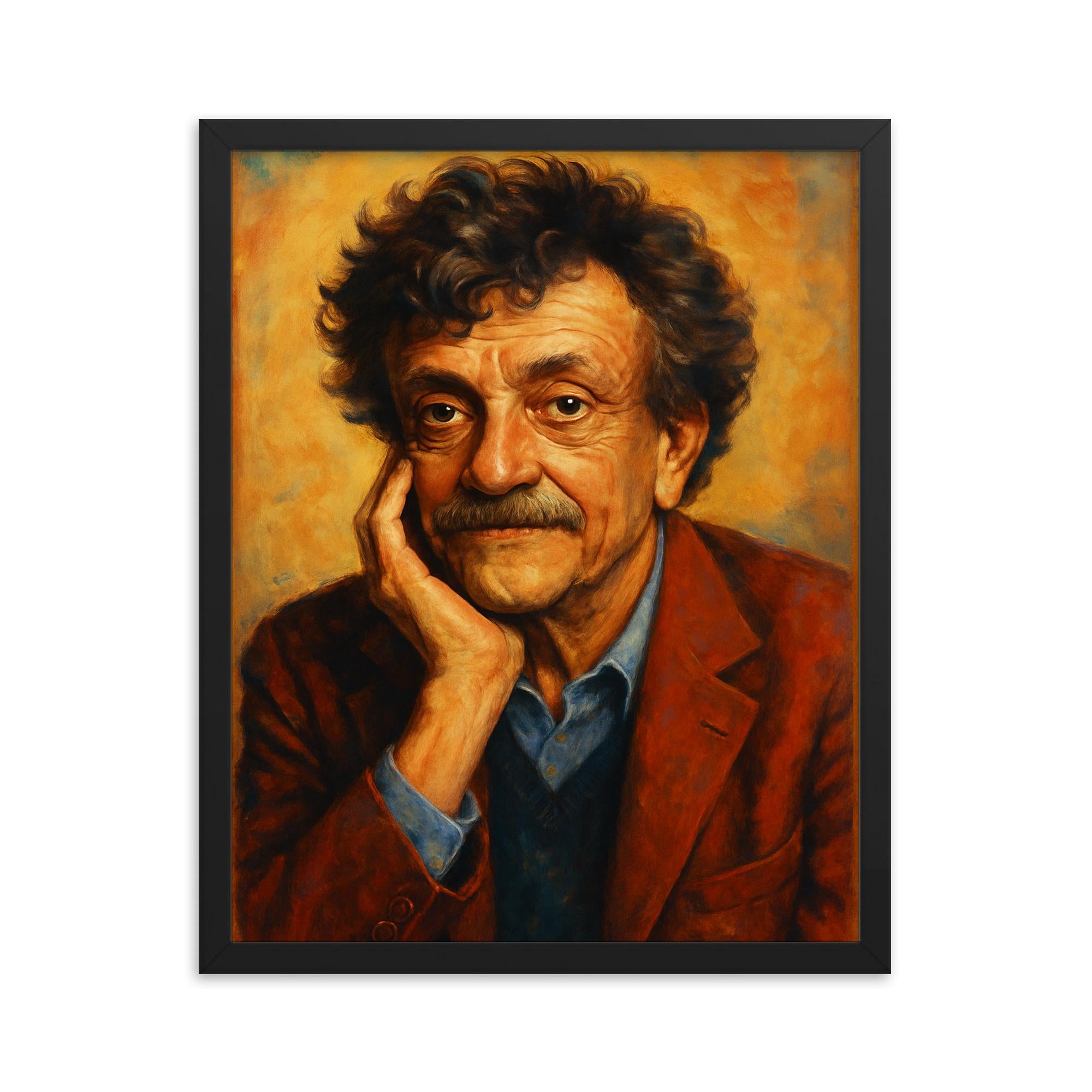 Elevate your space with this stunning framed print of Kurt Vonnegut, a timeless tribute to one of literature’s most iconic voices.