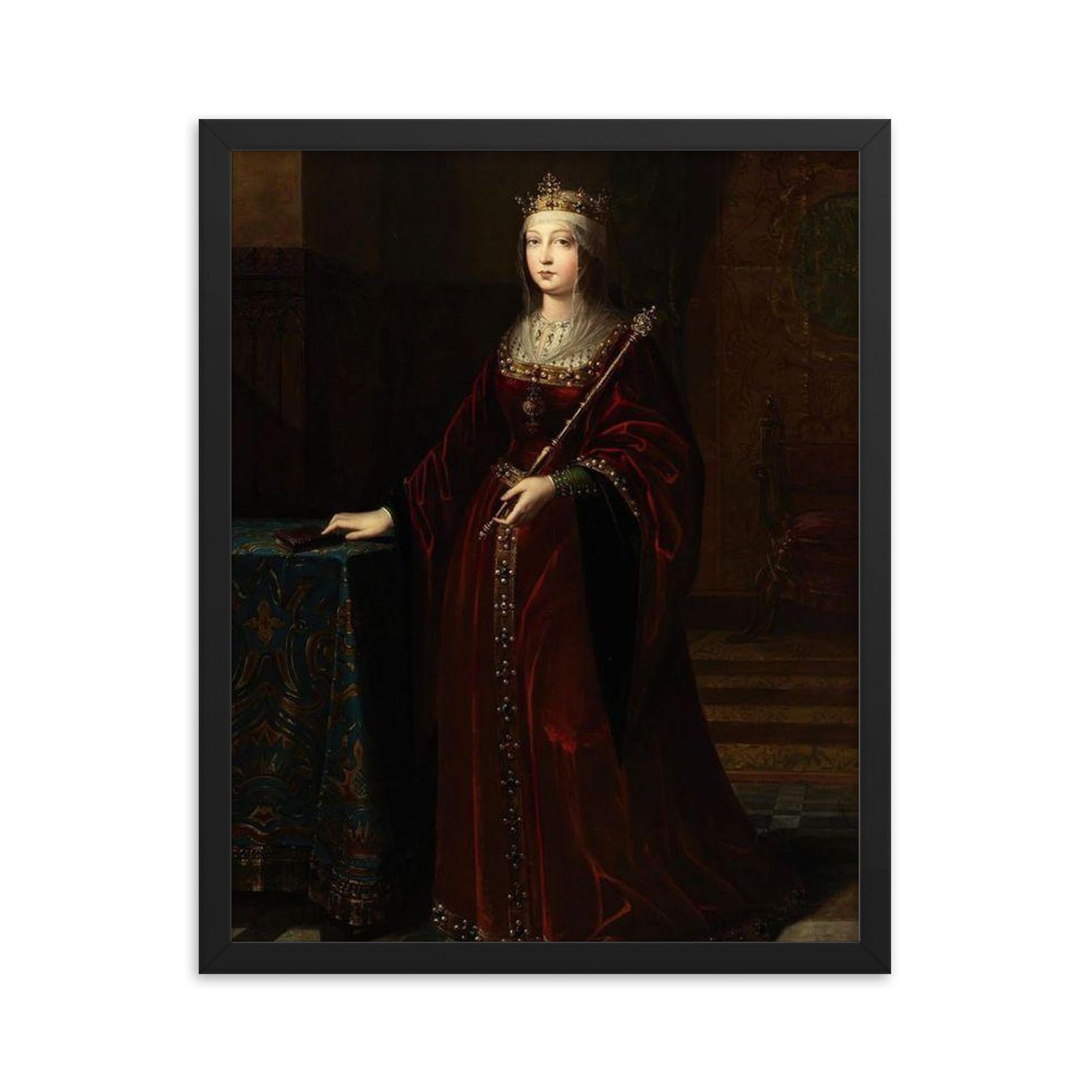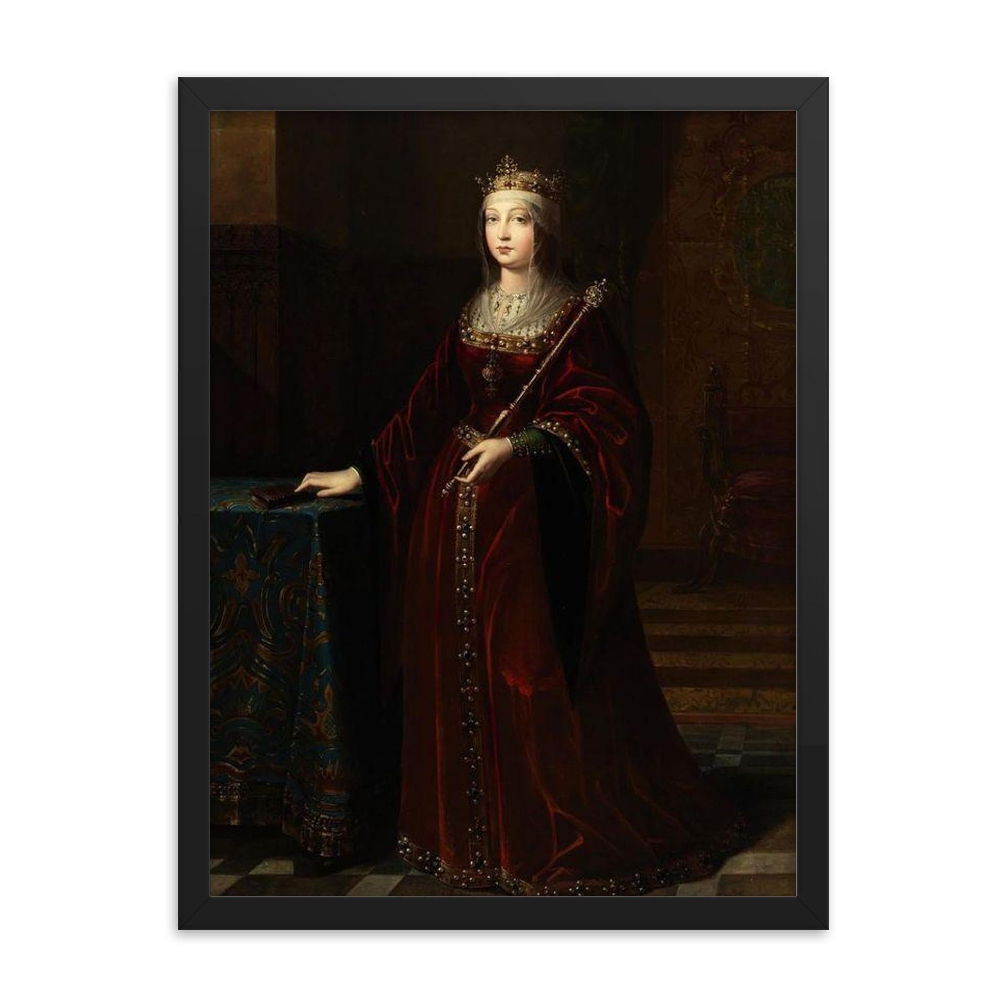 Elevate your living space with a striking piece of history and artistry — the framed print of La Reina Isabel I de Castilla by Luis de Madrazo, 1848.