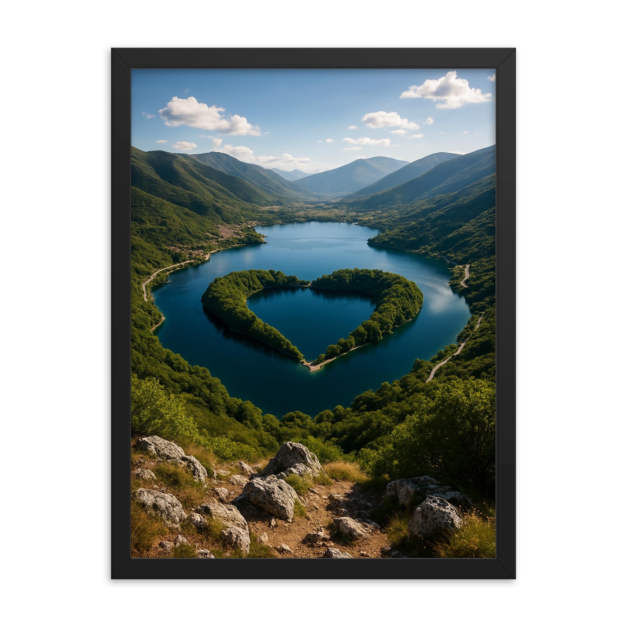 Perfect as a thoughtful gift or a stunning focal point in your living room, bedroom, or office, this framed print captures the iconic heart-shaped viewpoint of Lago di Scanno—a must-have for lovers of unique landscapes and Italian scenery.