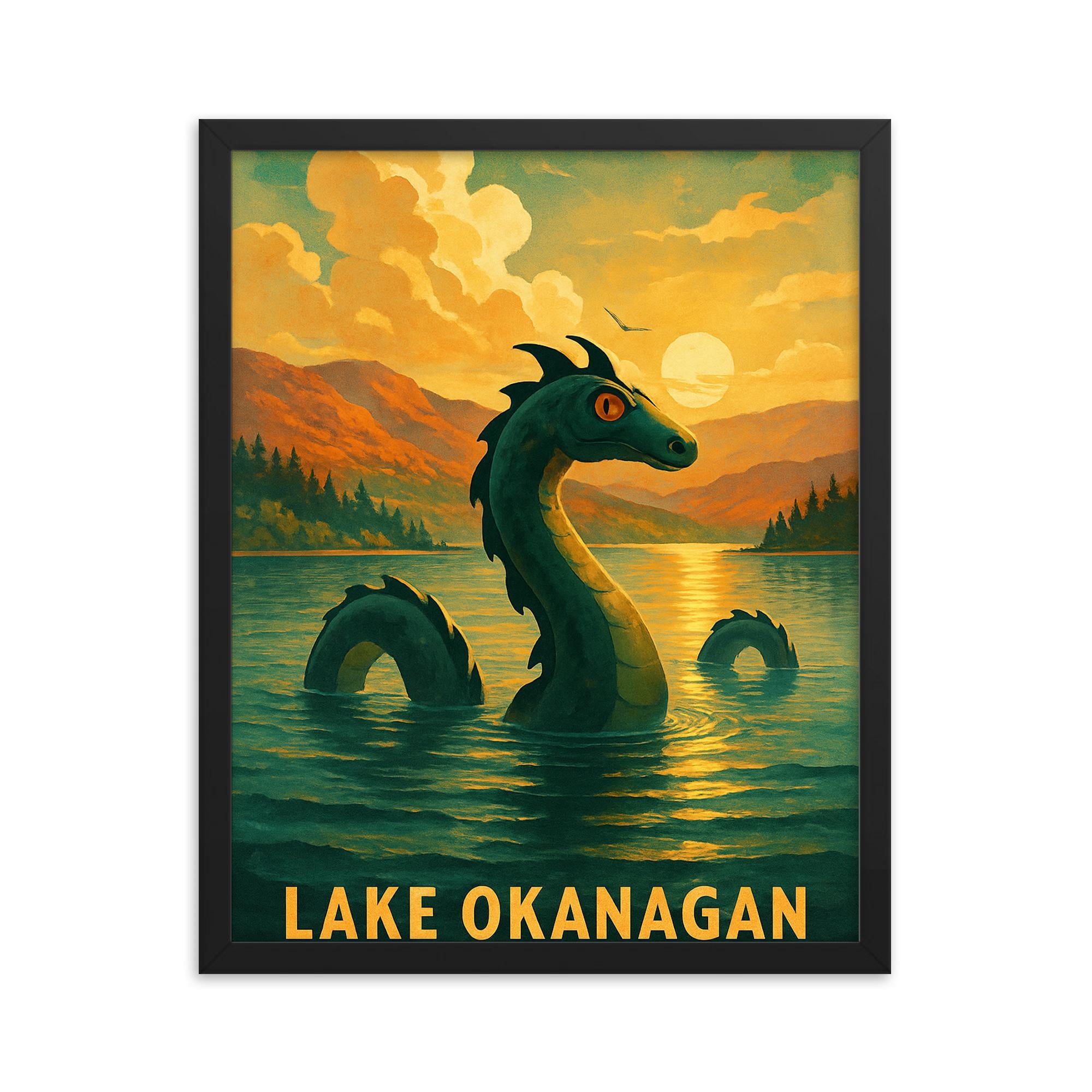 Lake Okanagan Ogopogo Framed Print – Unique Canadian Wall Art, Mythical Lake Monster Decor, Premium Canada Gift