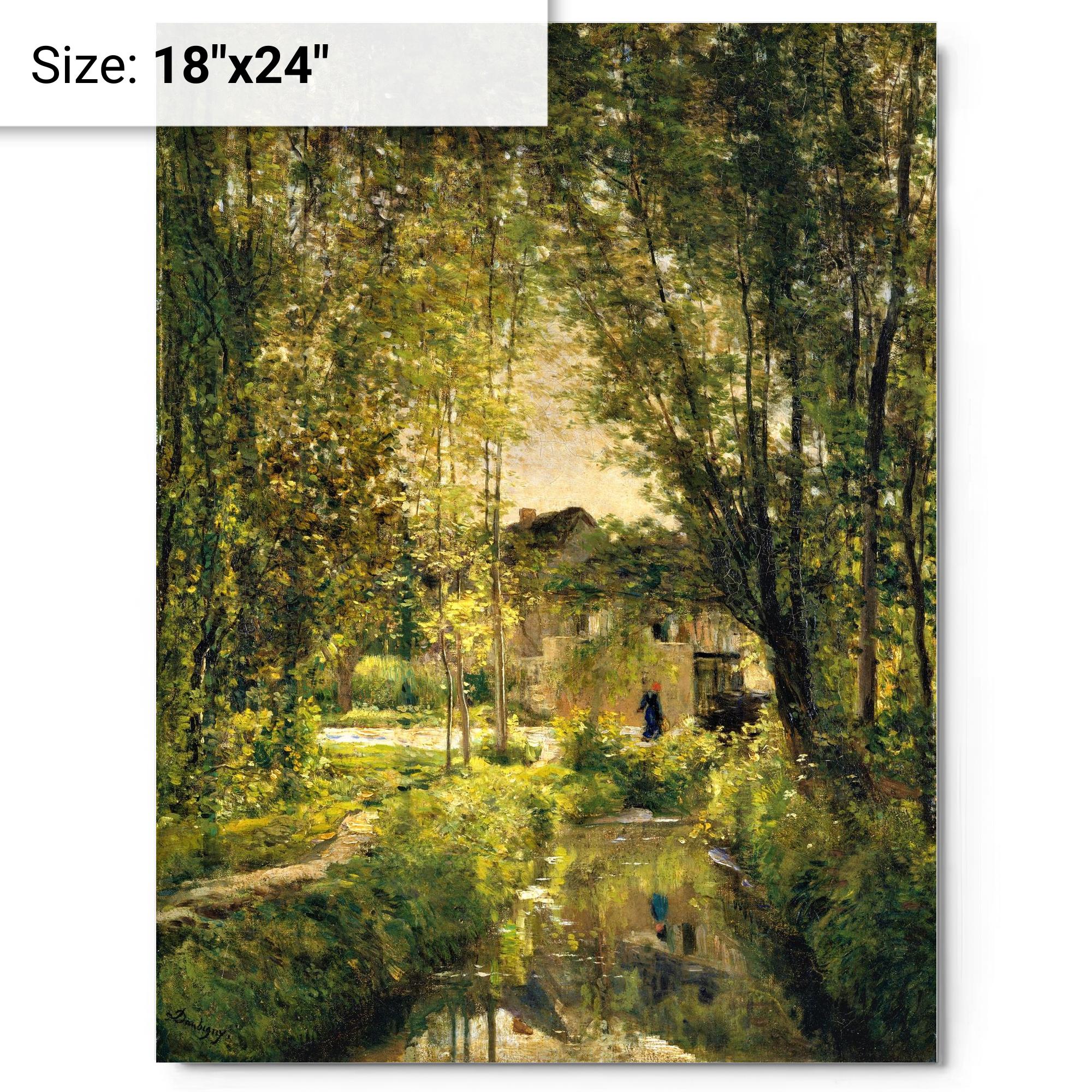 Charles-Francois Daubigny Metal Print — Landscape with Sunlit Stream, Barbizon Wall Art
