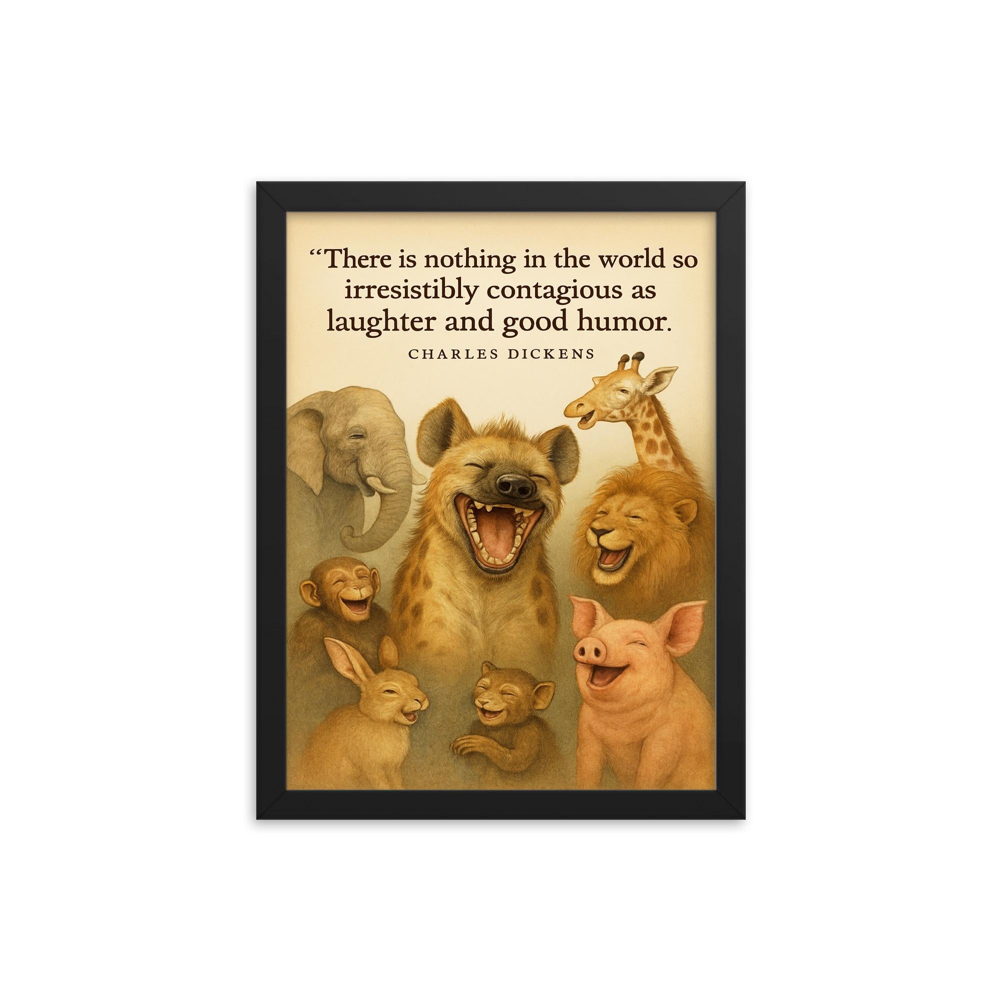 Bring warmth, wit, and timeless inspiration to any space with this stunning framed print of one of Charles Dickens’ most uplifting quotes about laughter and good humor.