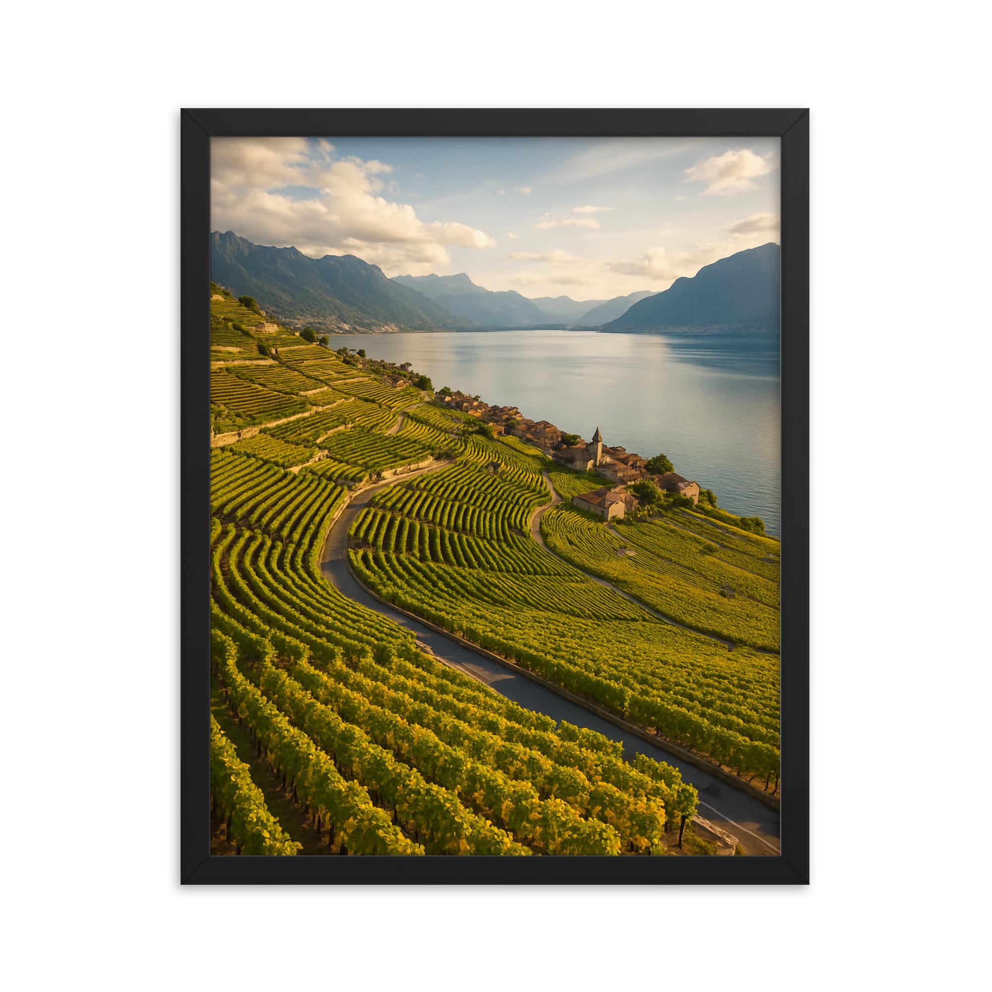 Lavaux Vineyard Terraces Switzerland Framed Wall Art - Stunning Scenic Wine Country Landscape Print for Elegant Home Decor