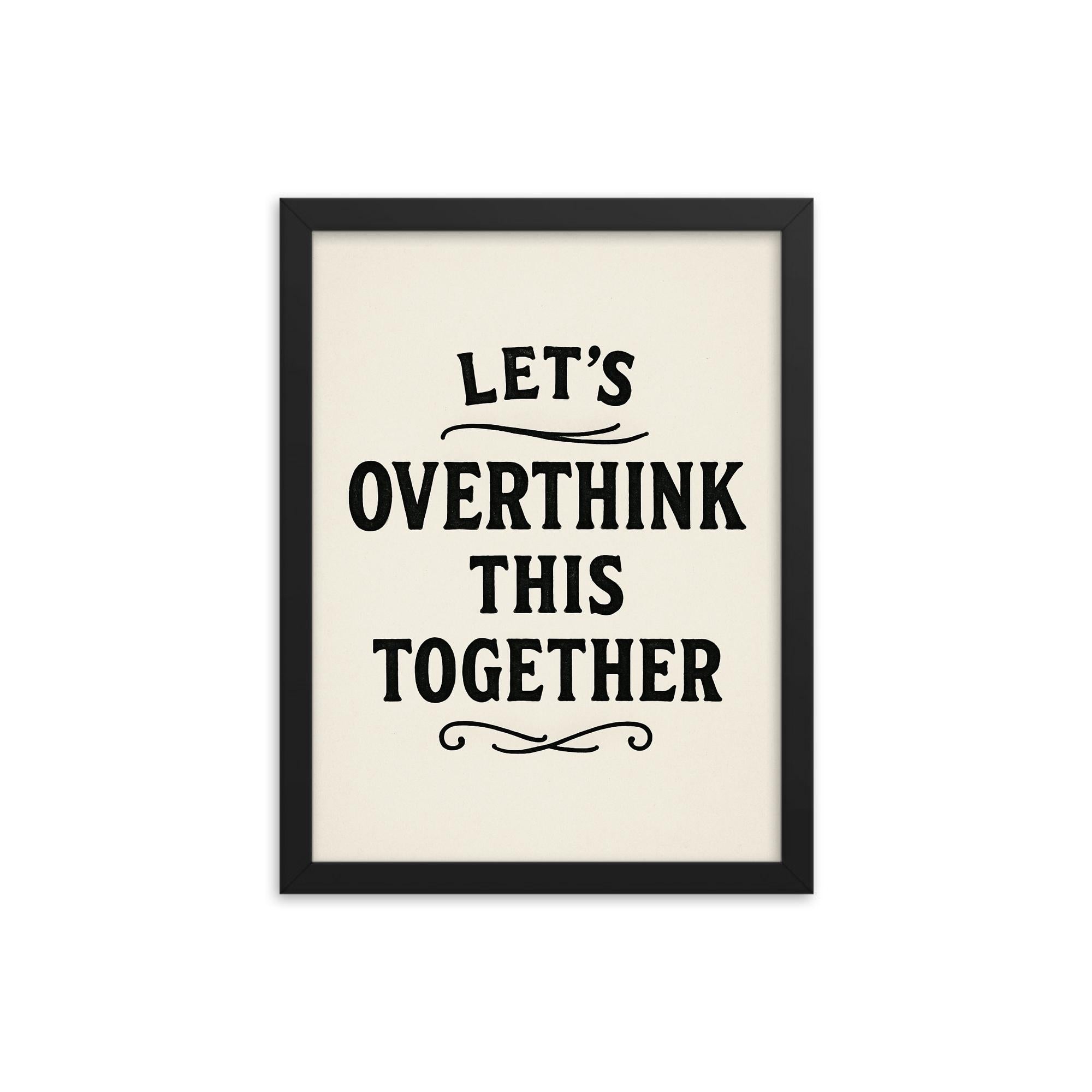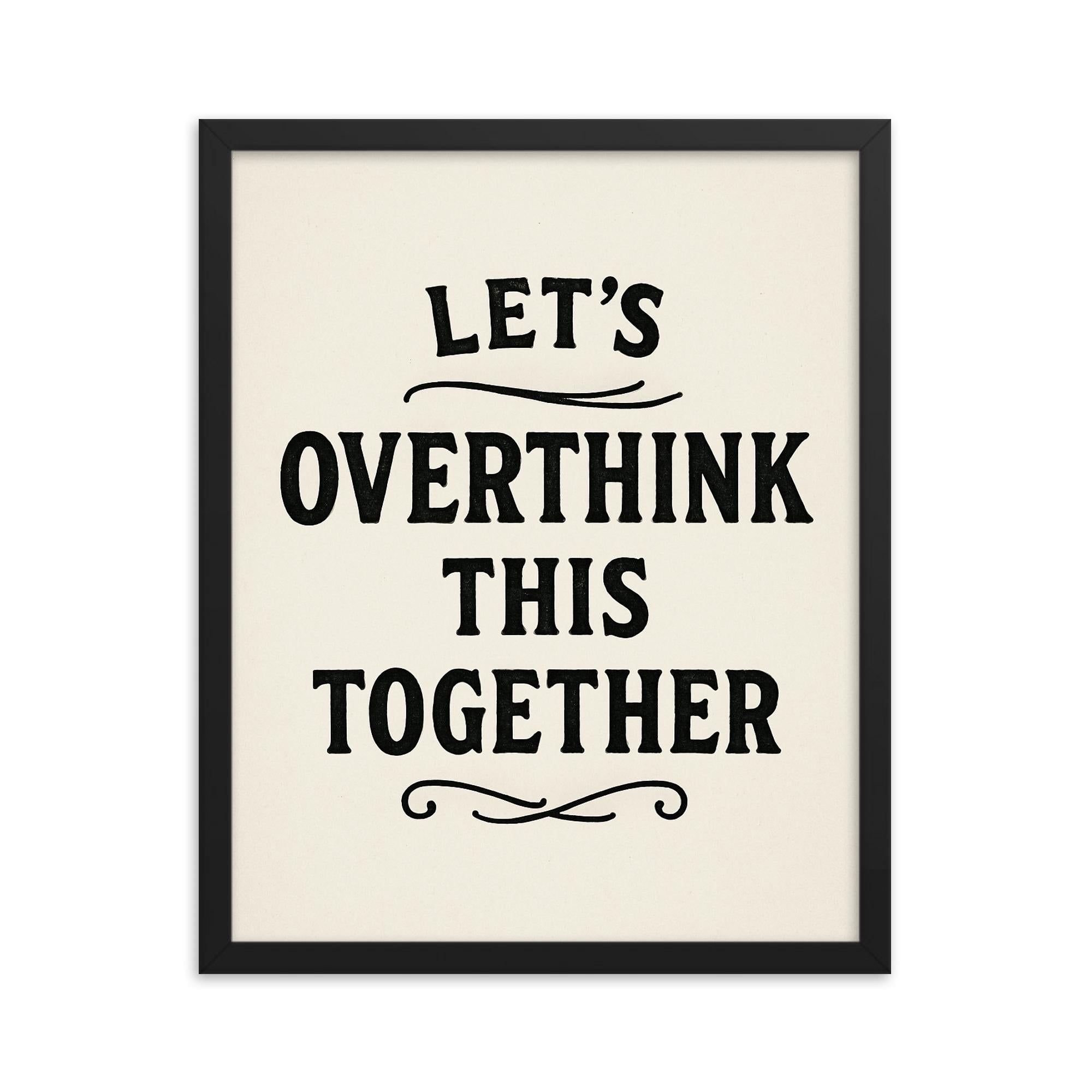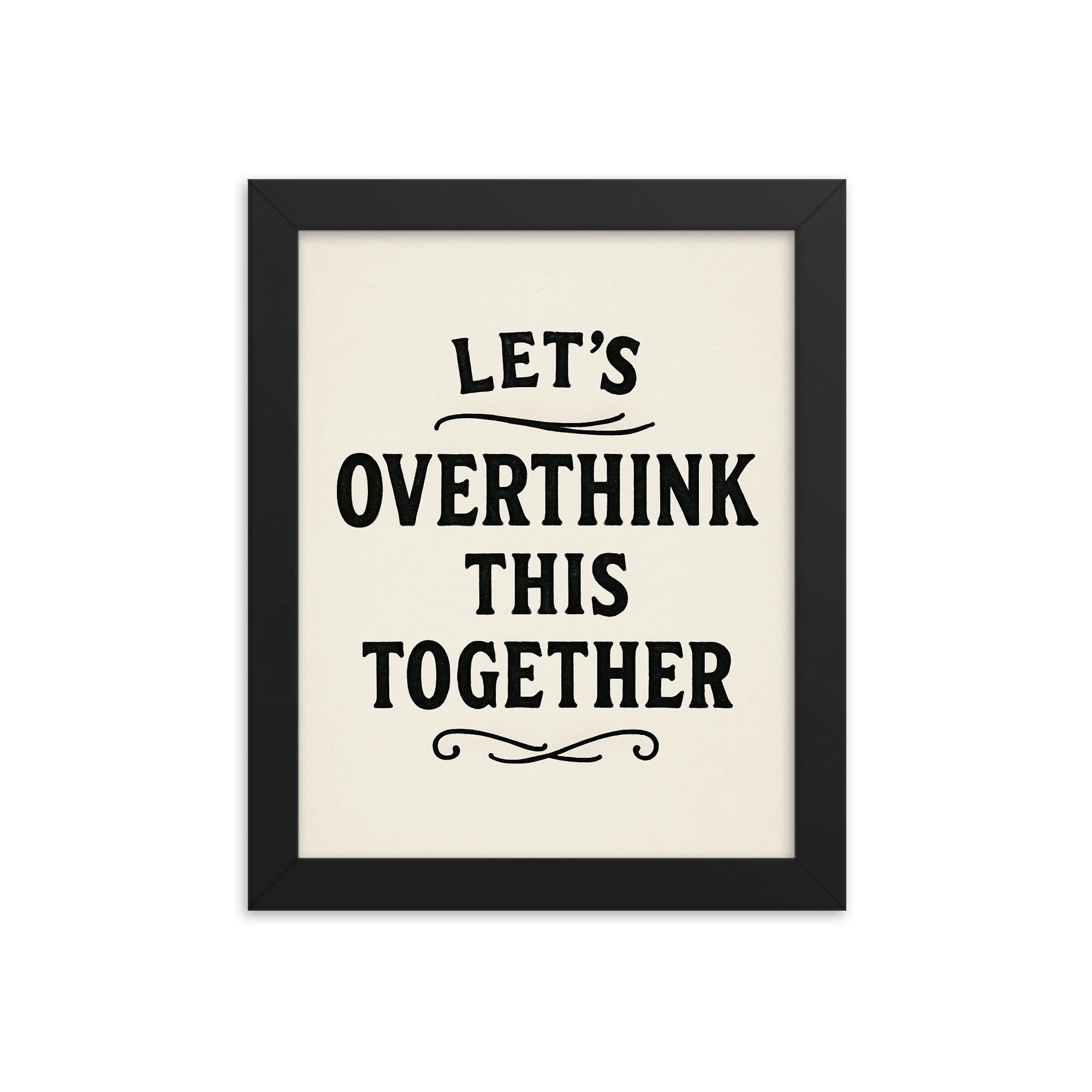 Add this unique framed print to your cart now and let’s overthink things together—beautifully.