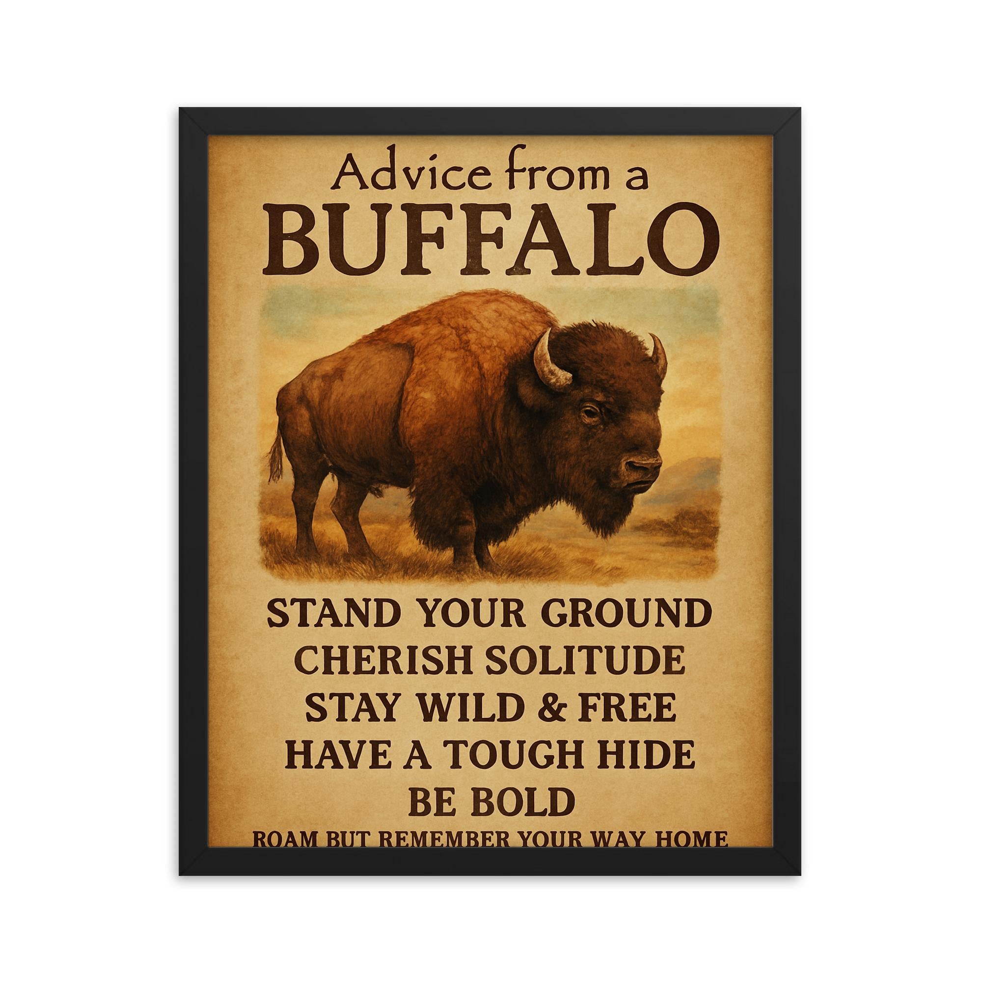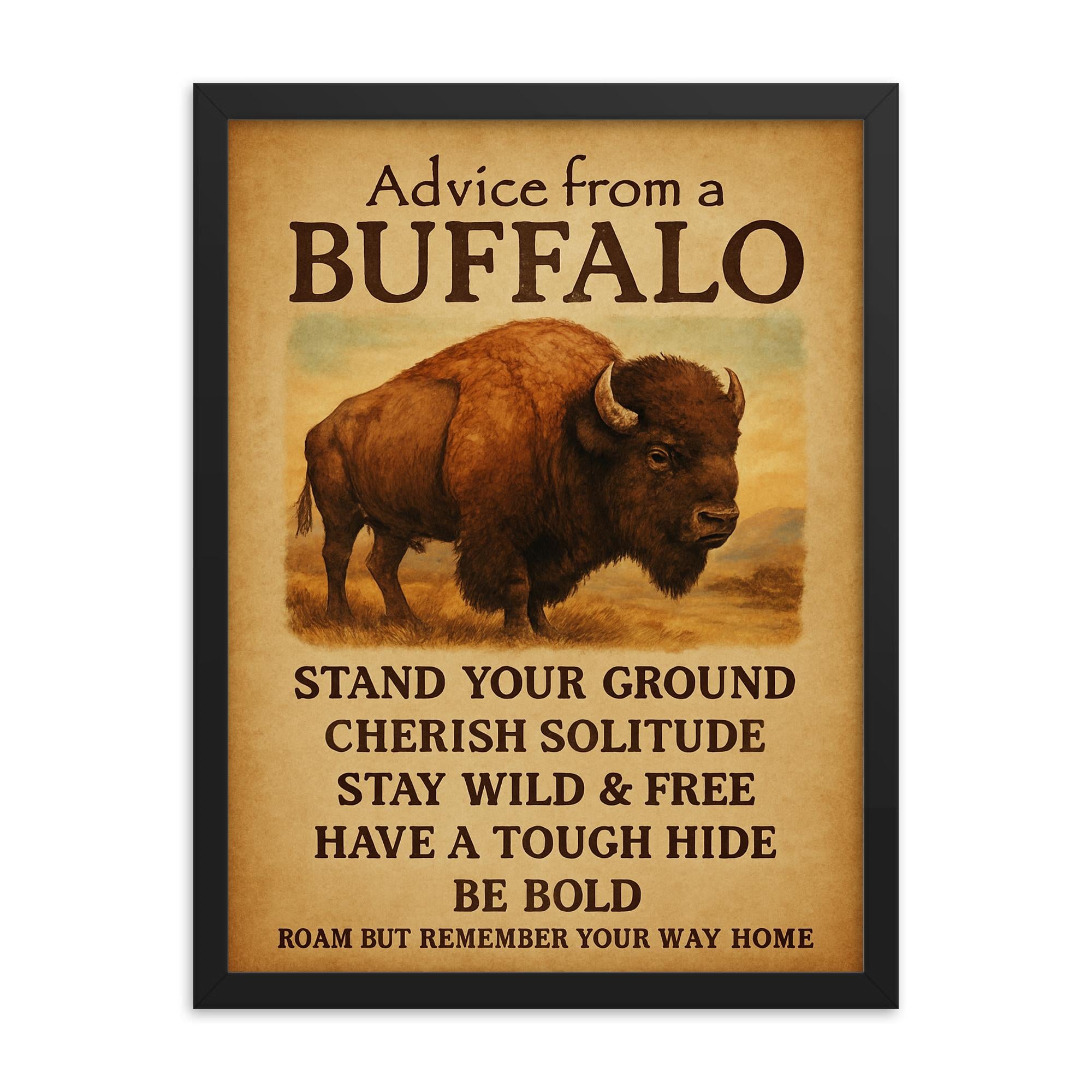 Elevate your space with inspiring wisdom and timeless style through this framed print featuring Life advice from a buffalo motivational quote.