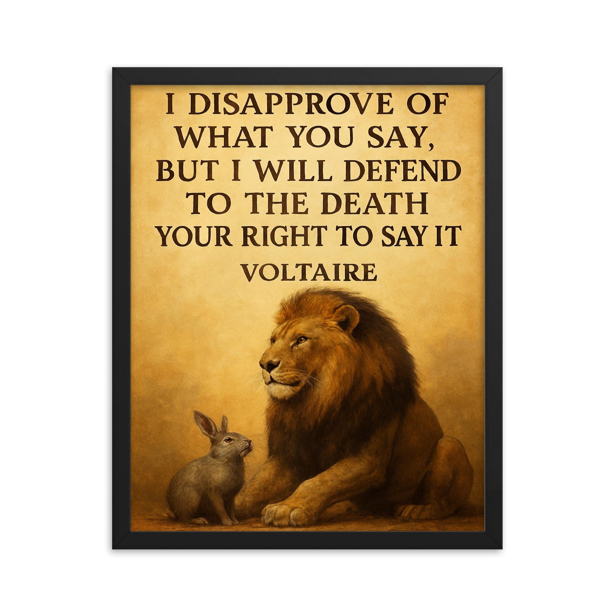 Unleash the power of courage and compassion in any room with this remarkable framed print: a bold lion standing strong, defending the right of a smaller animal to speak. This thought-provoking wall art does more than decorate—it inspires conversation, courage, and respect for every voice.
