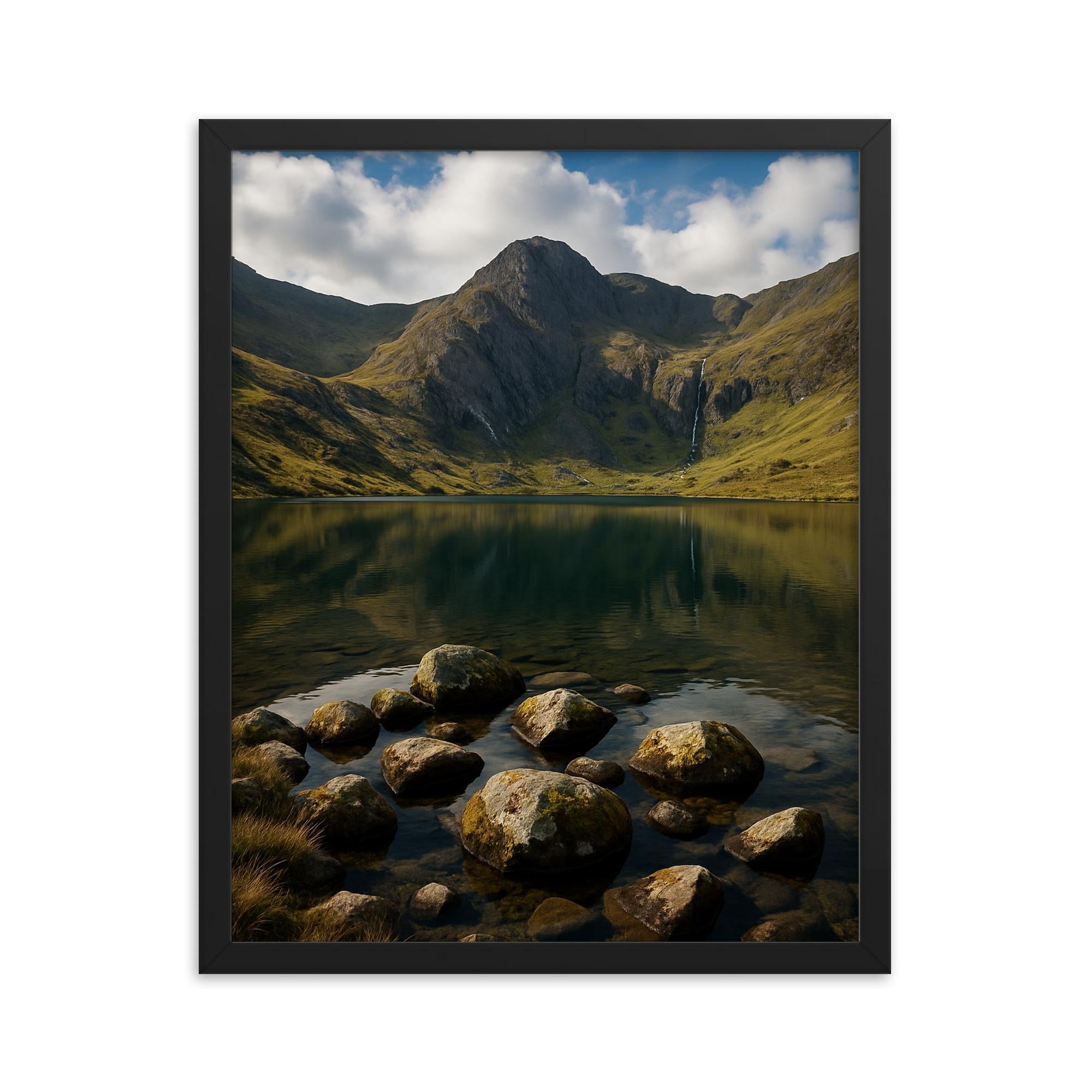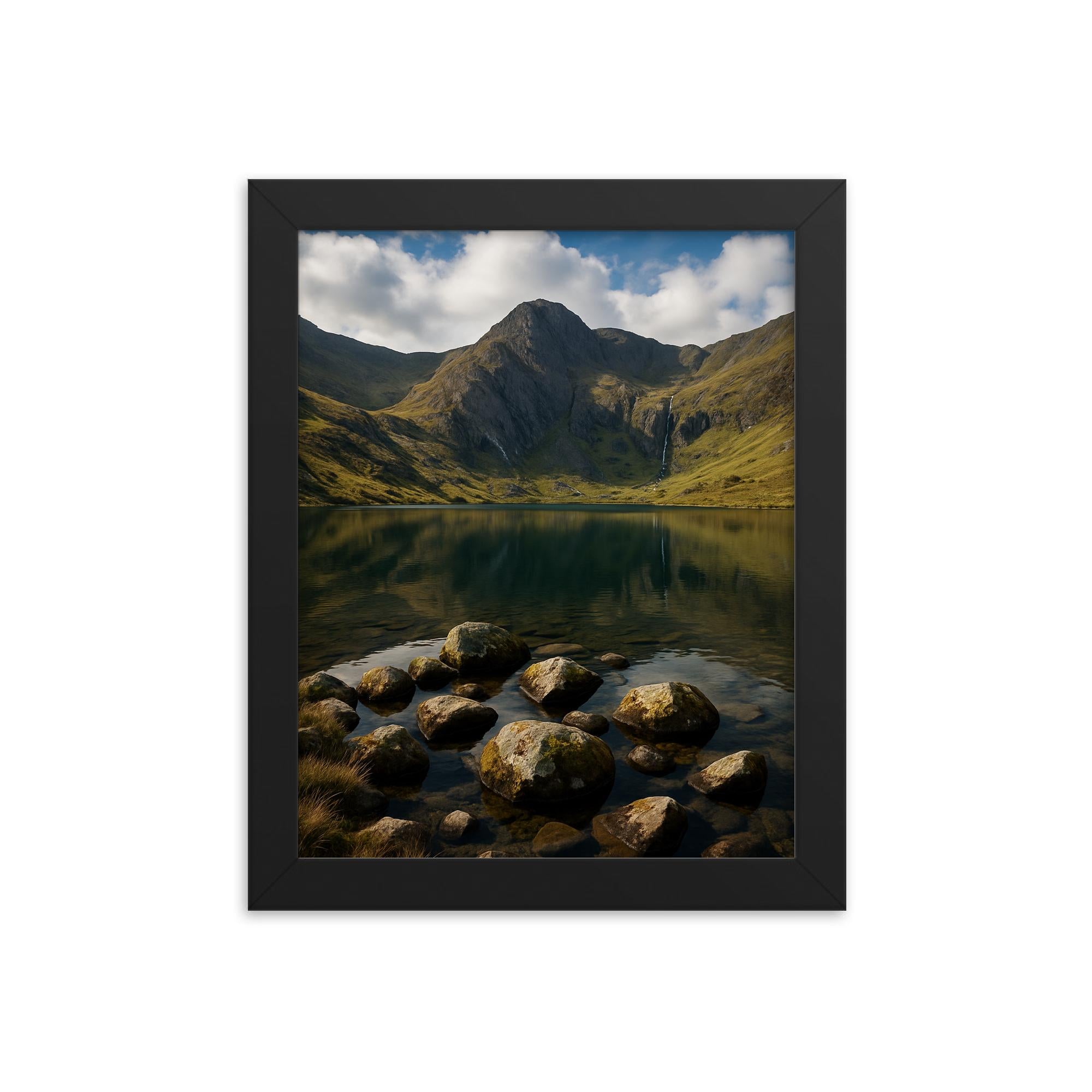 Expertly printed on premium quality paper, this framed print showcases the timeless allure of Llyn Idwal’s tranquil waters set against the rugged contours of Devil’s Kitchen, offering a perfect blend of nature’s calm and wild spirit.