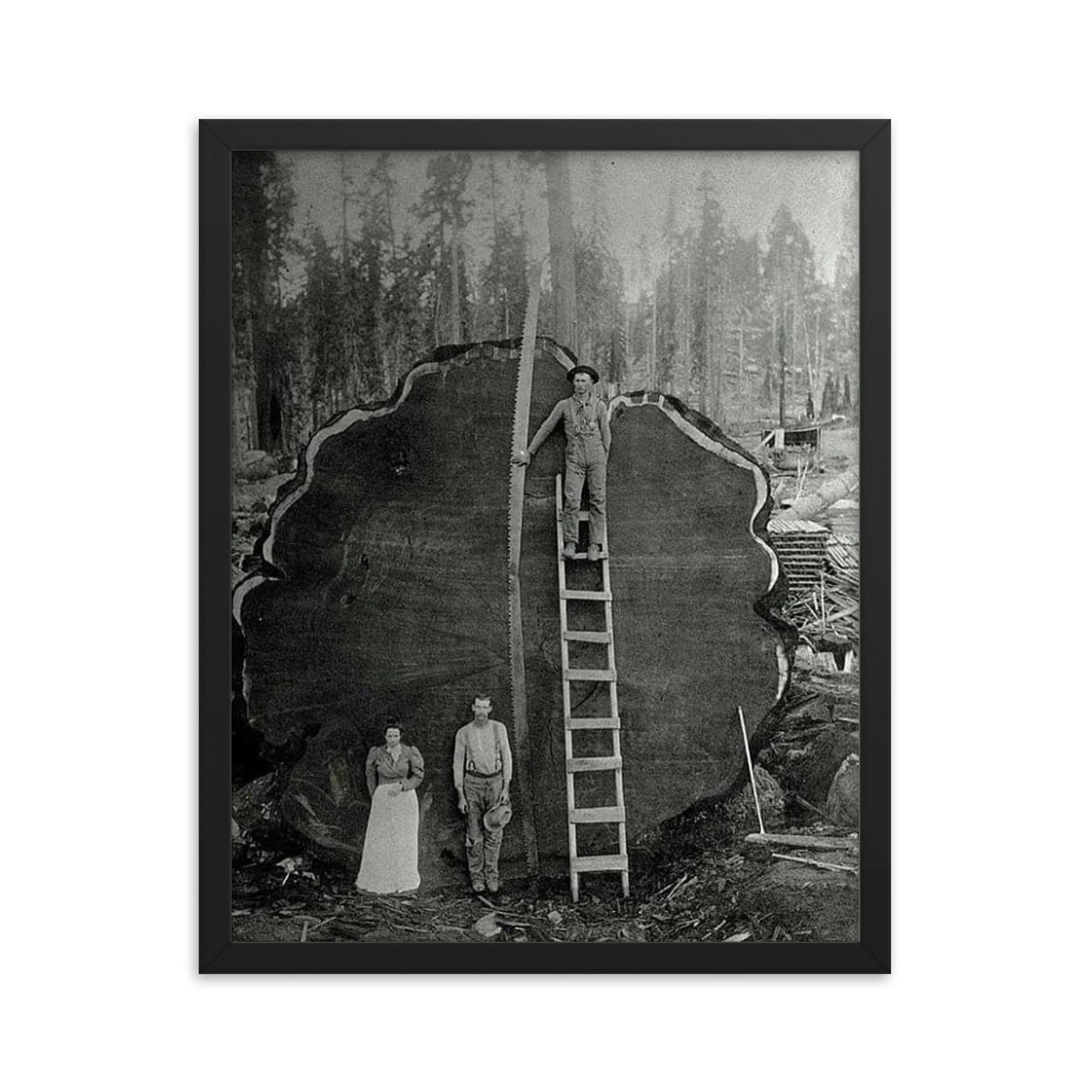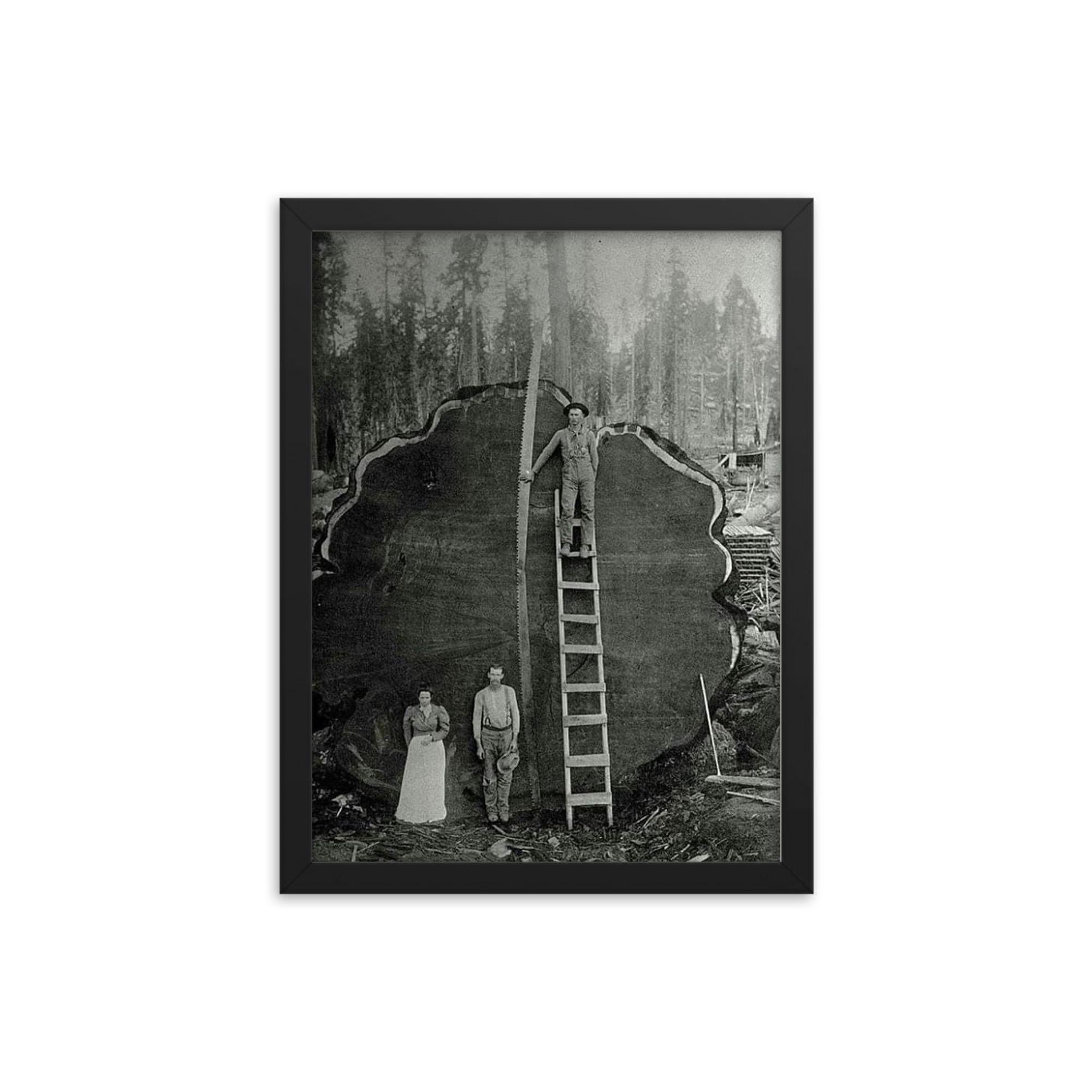 Discover a piece of history with the framed print of Logging Family with a 1300-Year-Old Tree, 1892 — a timeless artwork that brings a powerful story and striking vintage charm to your walls.