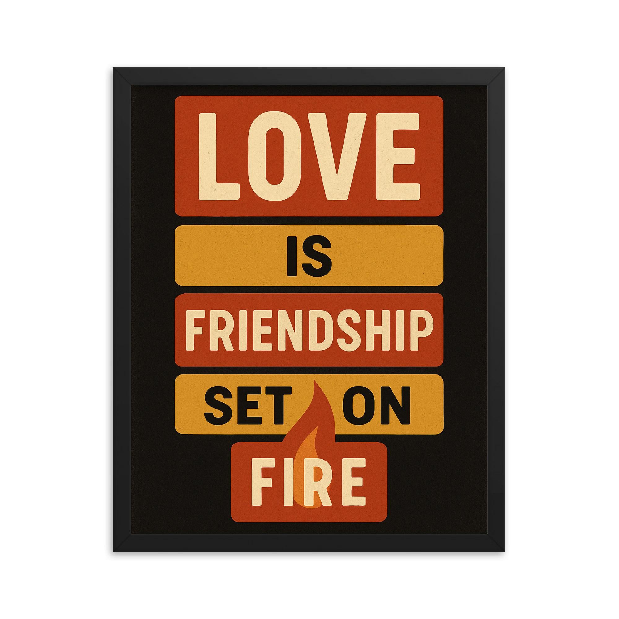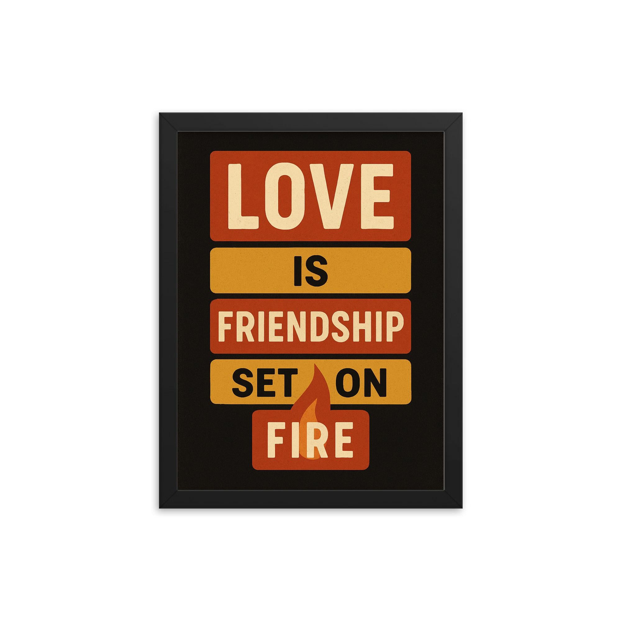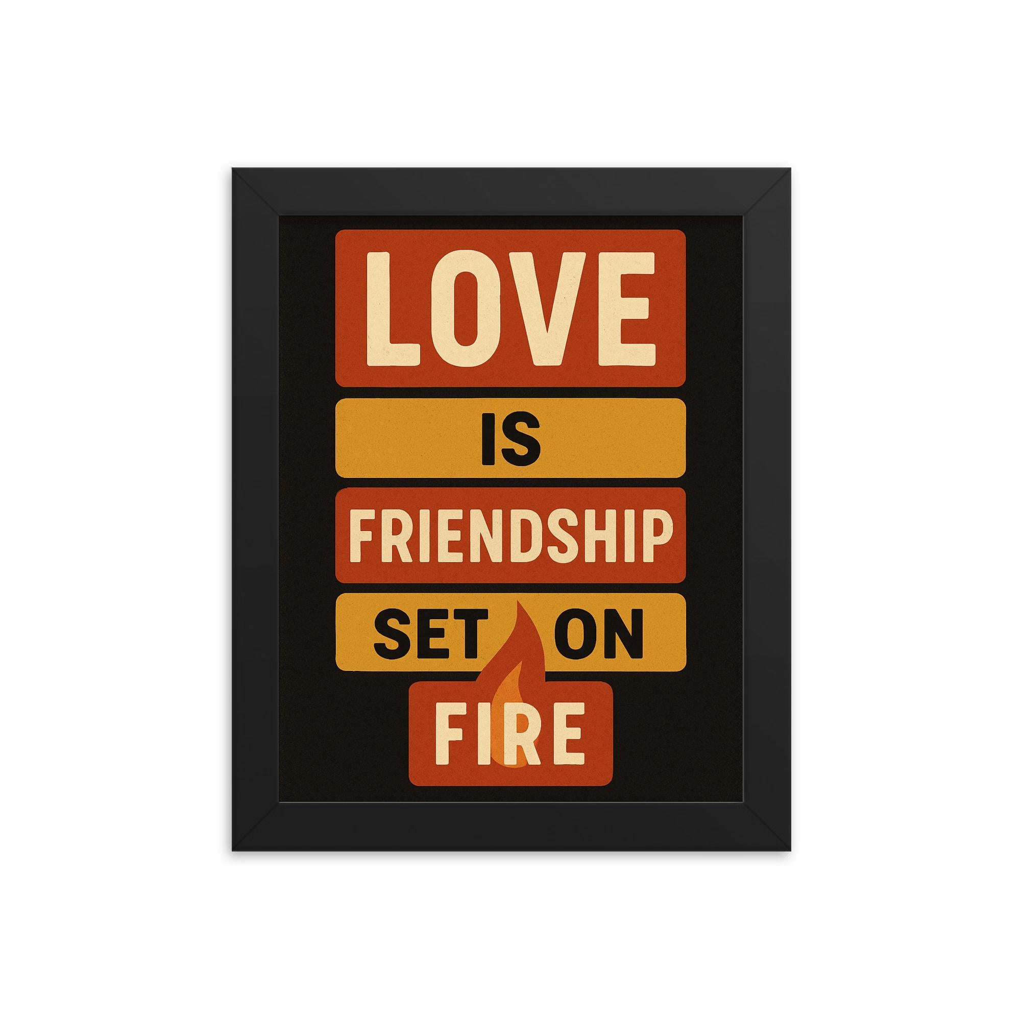 Shop our “Love is friendship set on fire” framed print today—transform your walls, inspire those who enter, and celebrate the love that lights up your life.