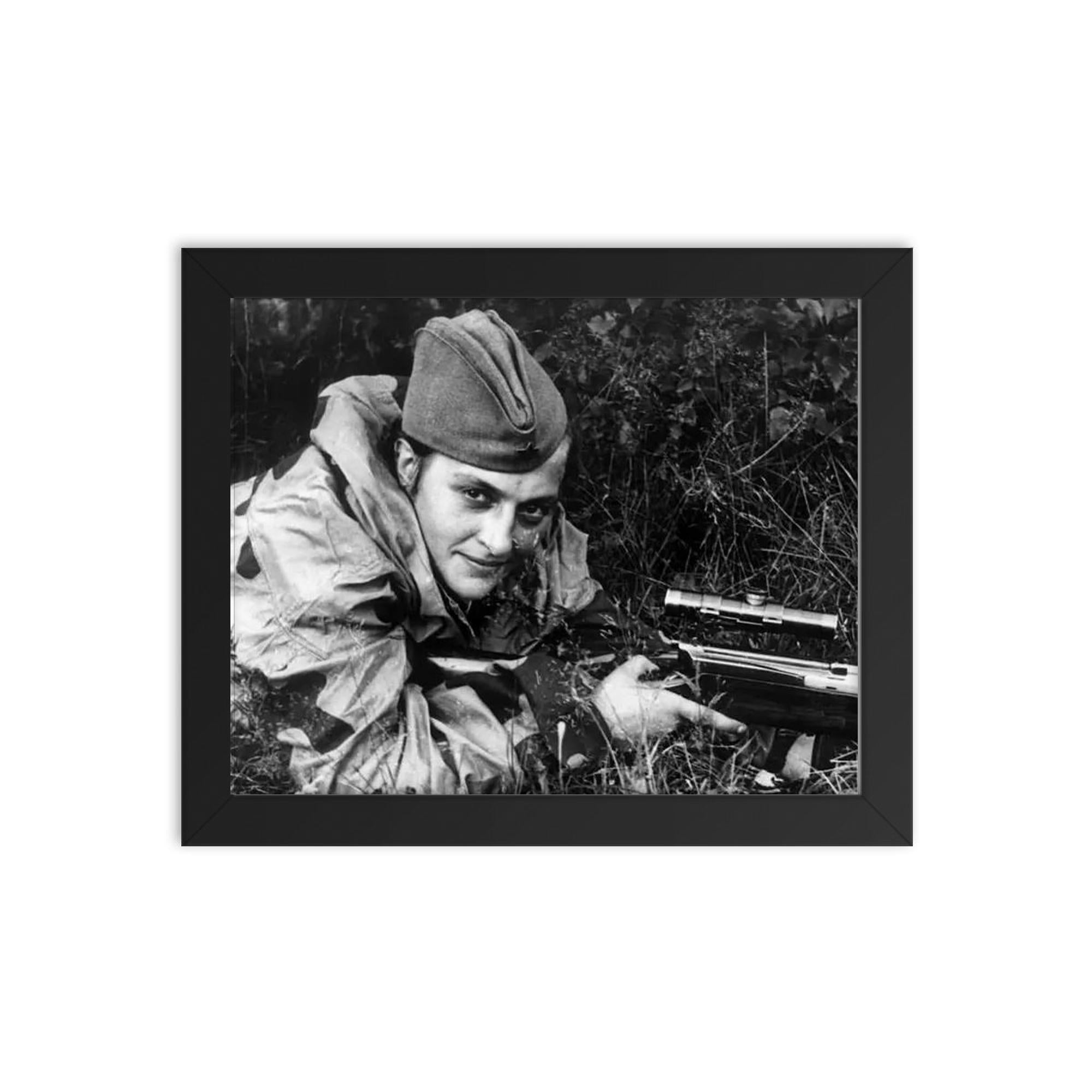 Celebrate courage and history with this stunning framed print honoring Lyudmila Pavlichenko—a true icon whose legacy continues to inspire.