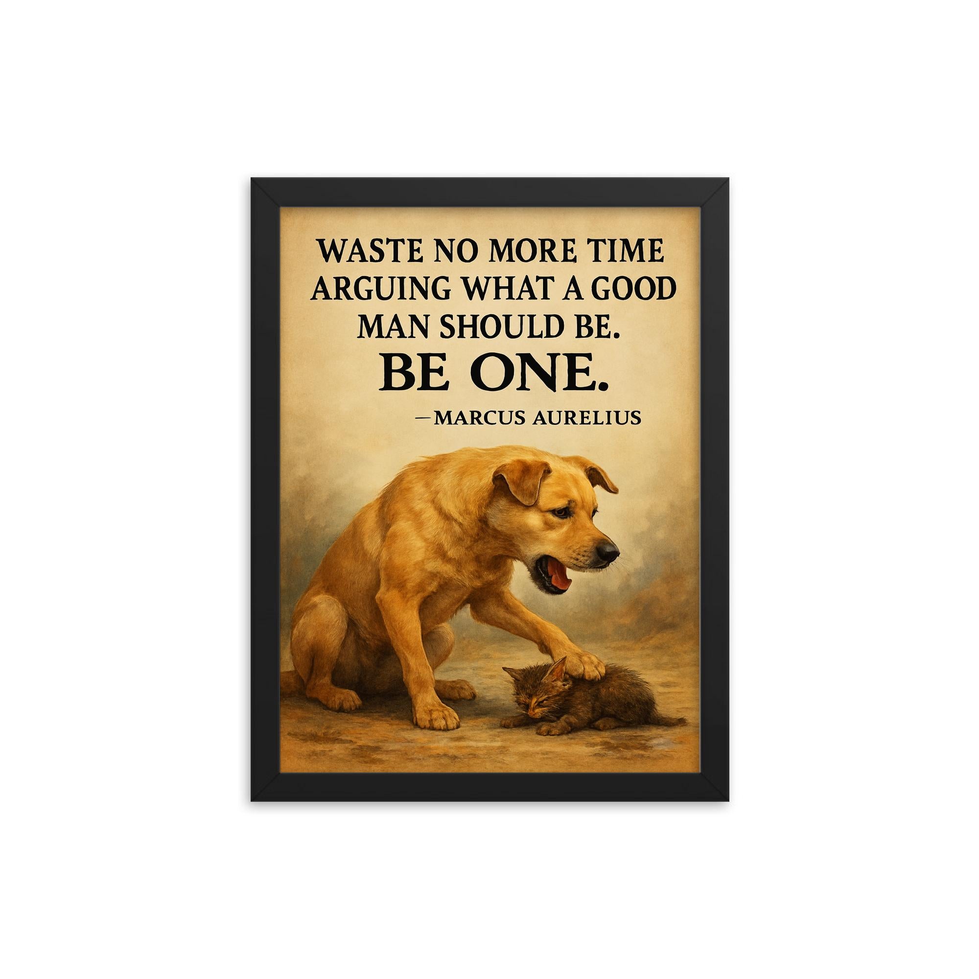 Discover a framed print that goes beyond decoration—this Marcus Aurelius quote inspires action. The perfect reminder to seize the day, this elegant wall art embodies timeless motivation with modern style. Each glance reminds you: Waste no more time. Even a dog, pausing to help another, shows the power of meaningful action.