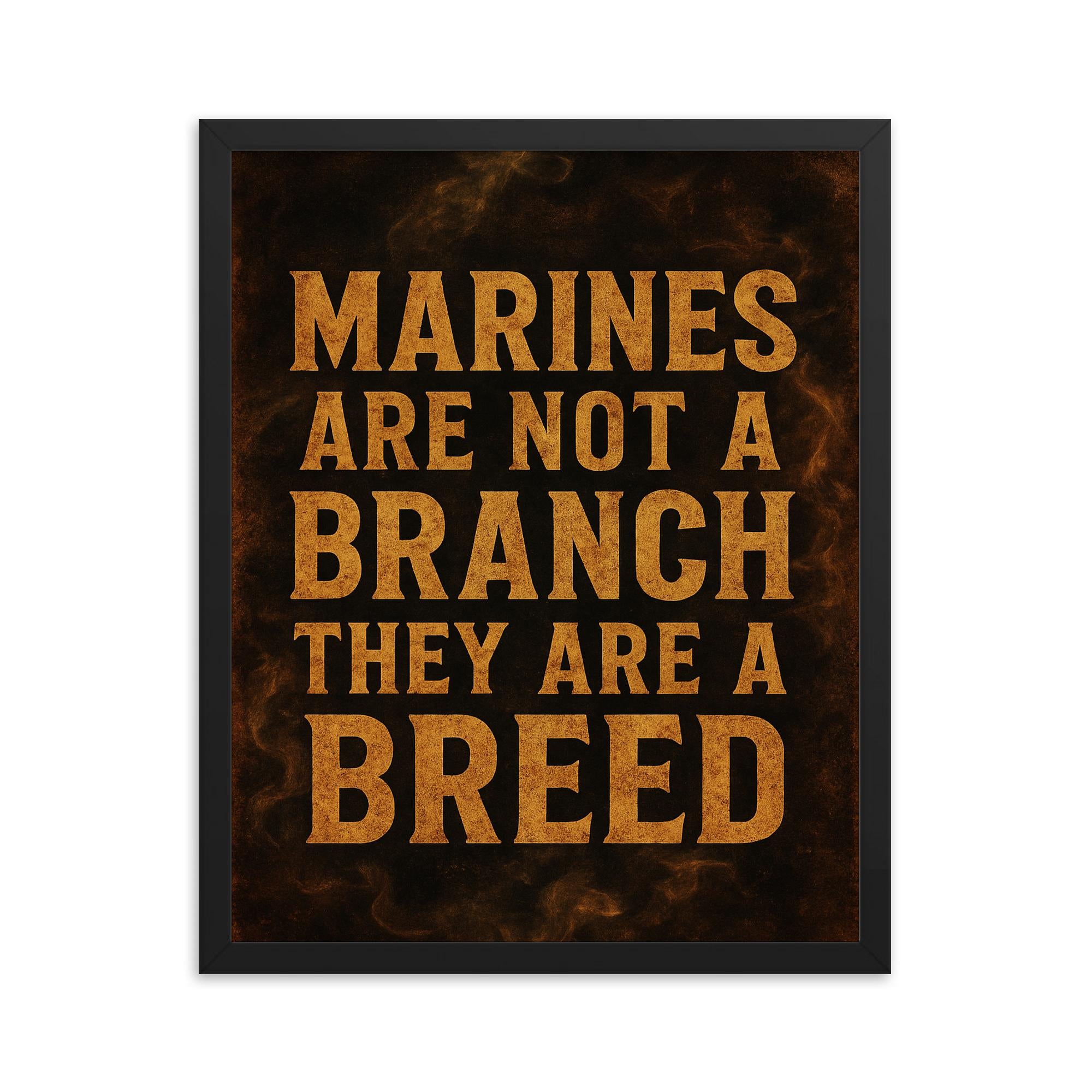 Celebrate the unmatched spirit and pride of the Marines with this striking framed print, perfect for anyone who lives by the creed that Marines are not just a branch—they are a breed.