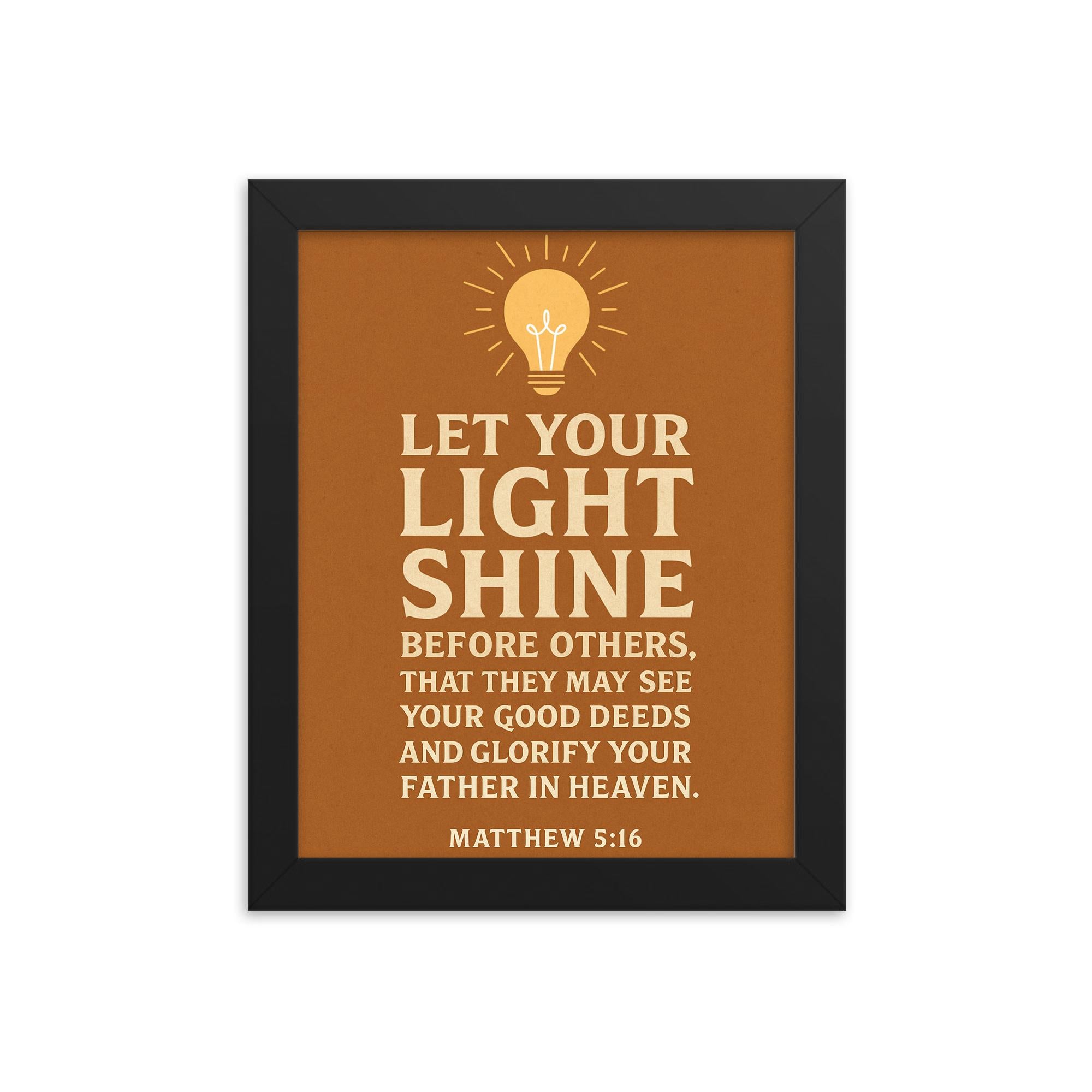Bring inspiration and timeless wisdom into your home or office with this beautifully crafted framed print featuring Matthew 5:16: