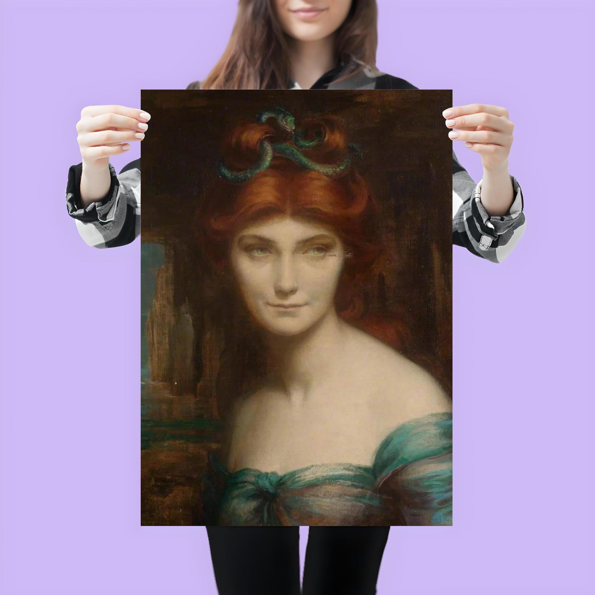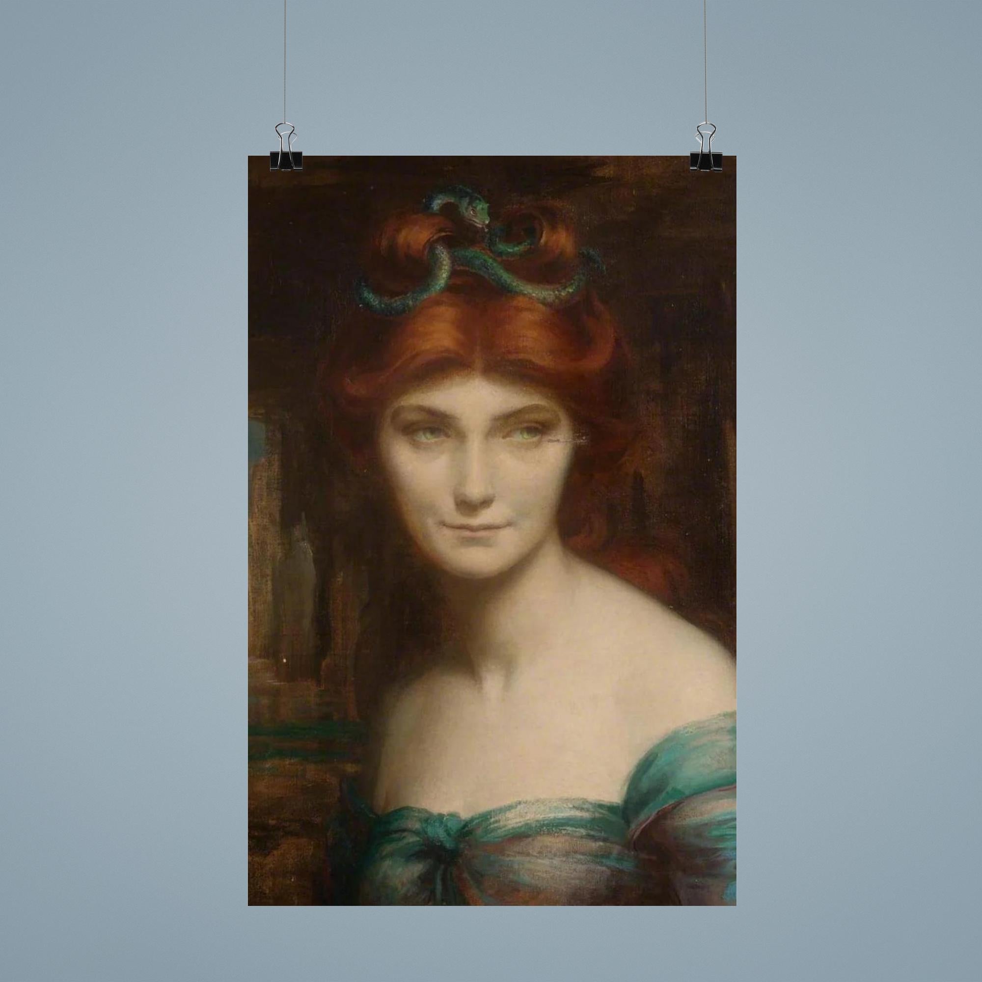Step into a world where myth and artistry intertwine with this striking 1896 poster of Medusa by Winifred Hope Thomson. Capturing the timeless power and mystique of the legendary figure, this artwork commands attention with its compelling presence. A perfect statement piece for lovers of classical mythology and vintage art, it transforms any space into a realm of captivating storytelling.