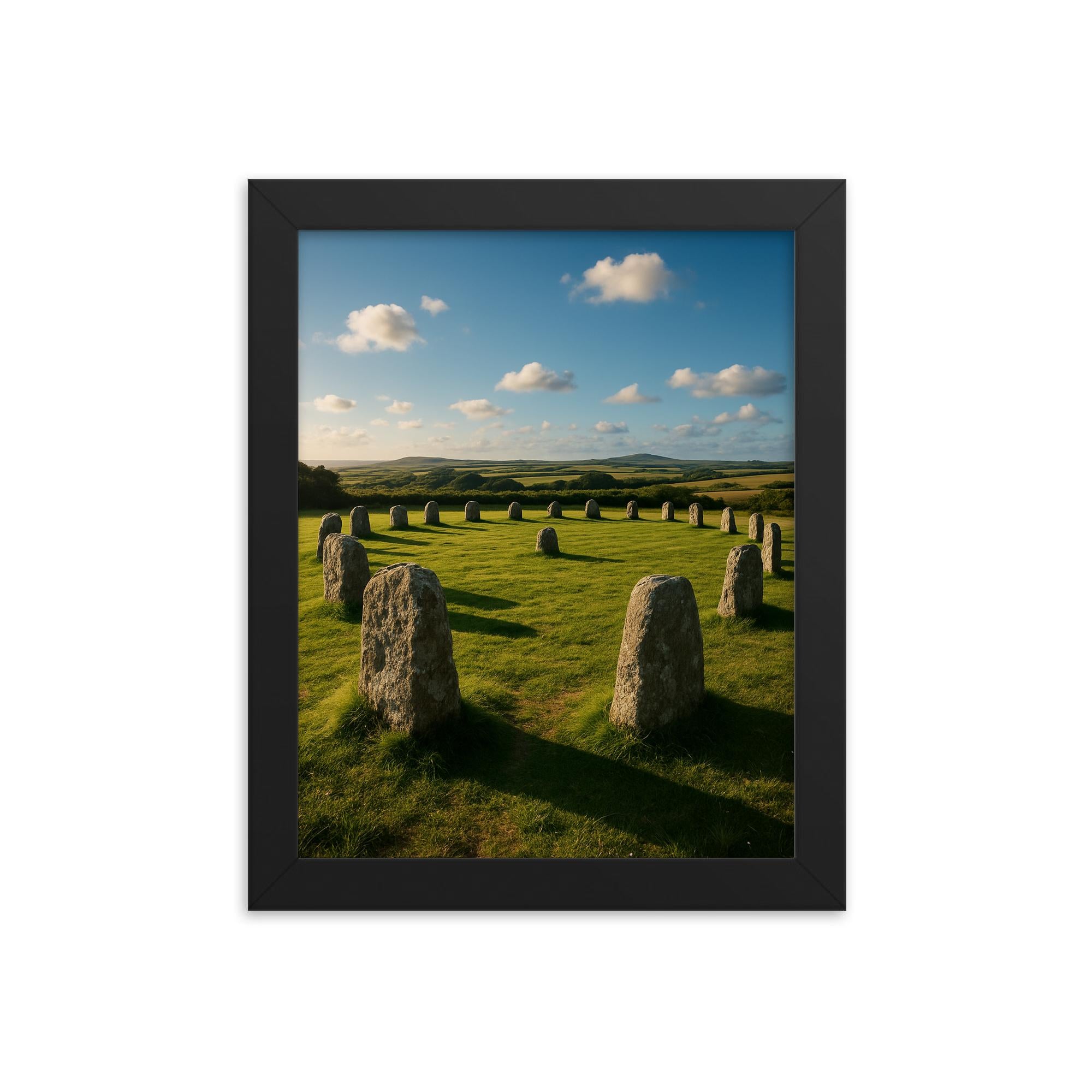 Elevate your living space with the timeless allure of the Merry Maidens Stone Circle Cornwall England framed print.