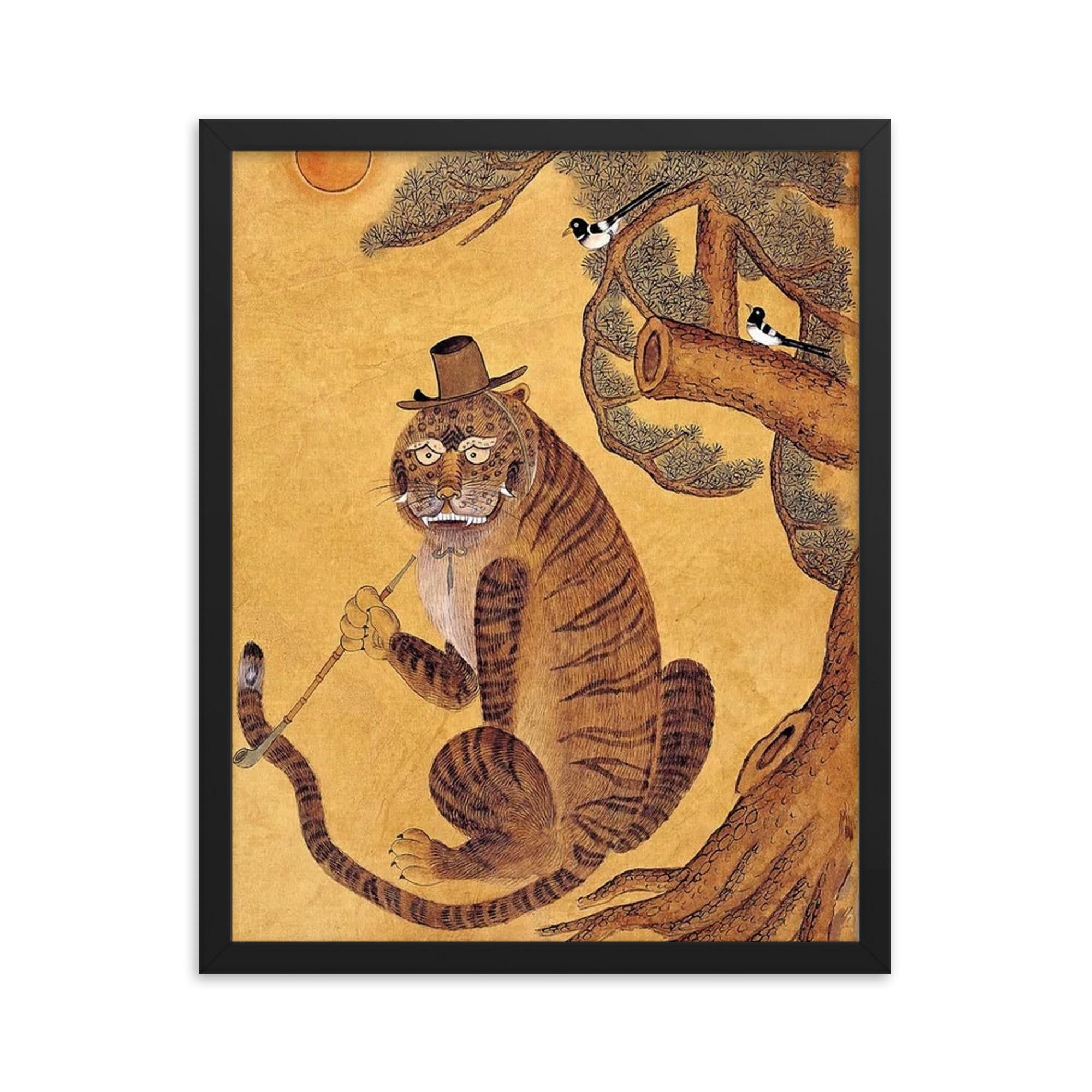 Whether you’re an art enthusiast, a lover of Korean culture, or simply searching for a unique statement piece, the “Minhwa Tiger Smoking a Pipe, with Magpies” framed print blends heritage and style seamlessly.