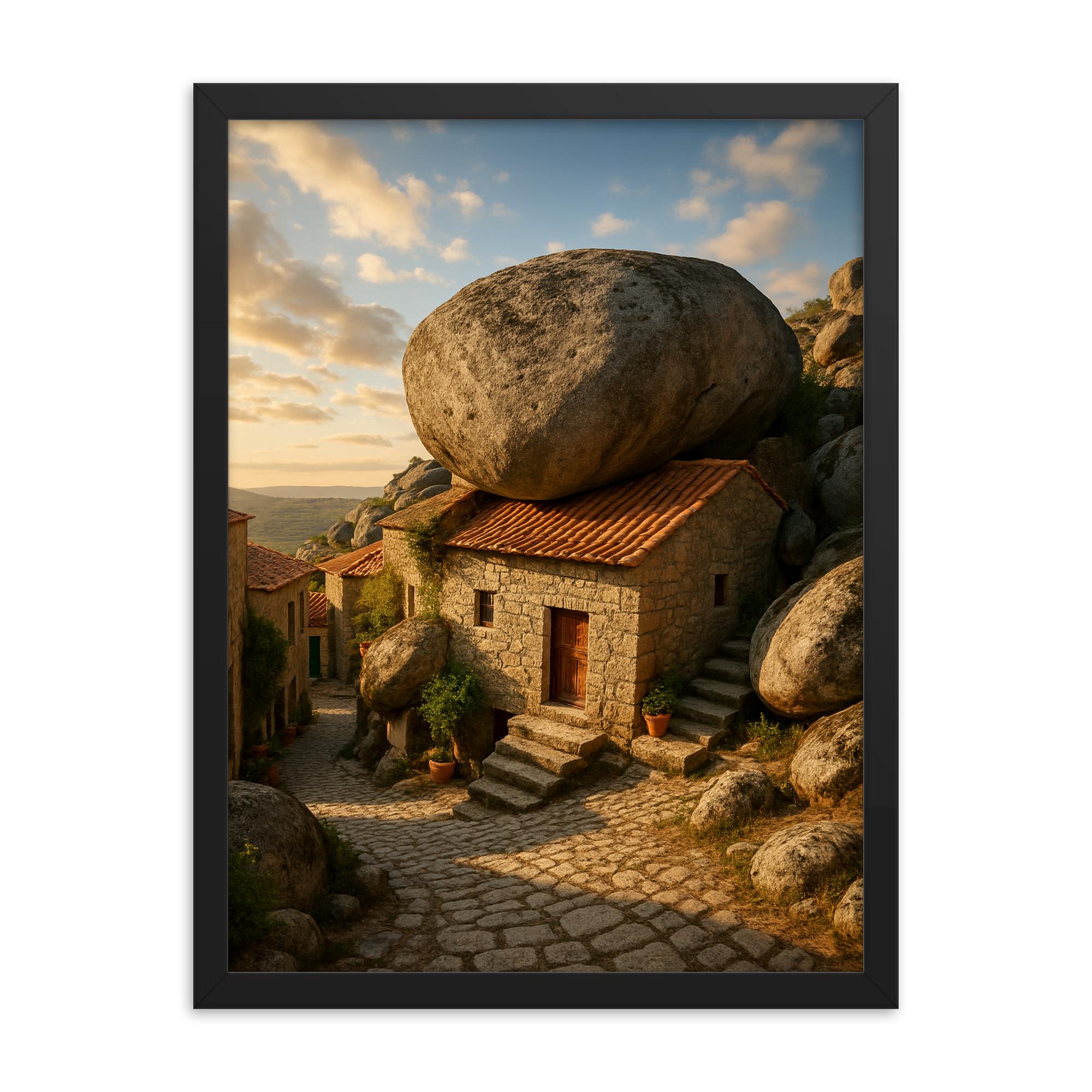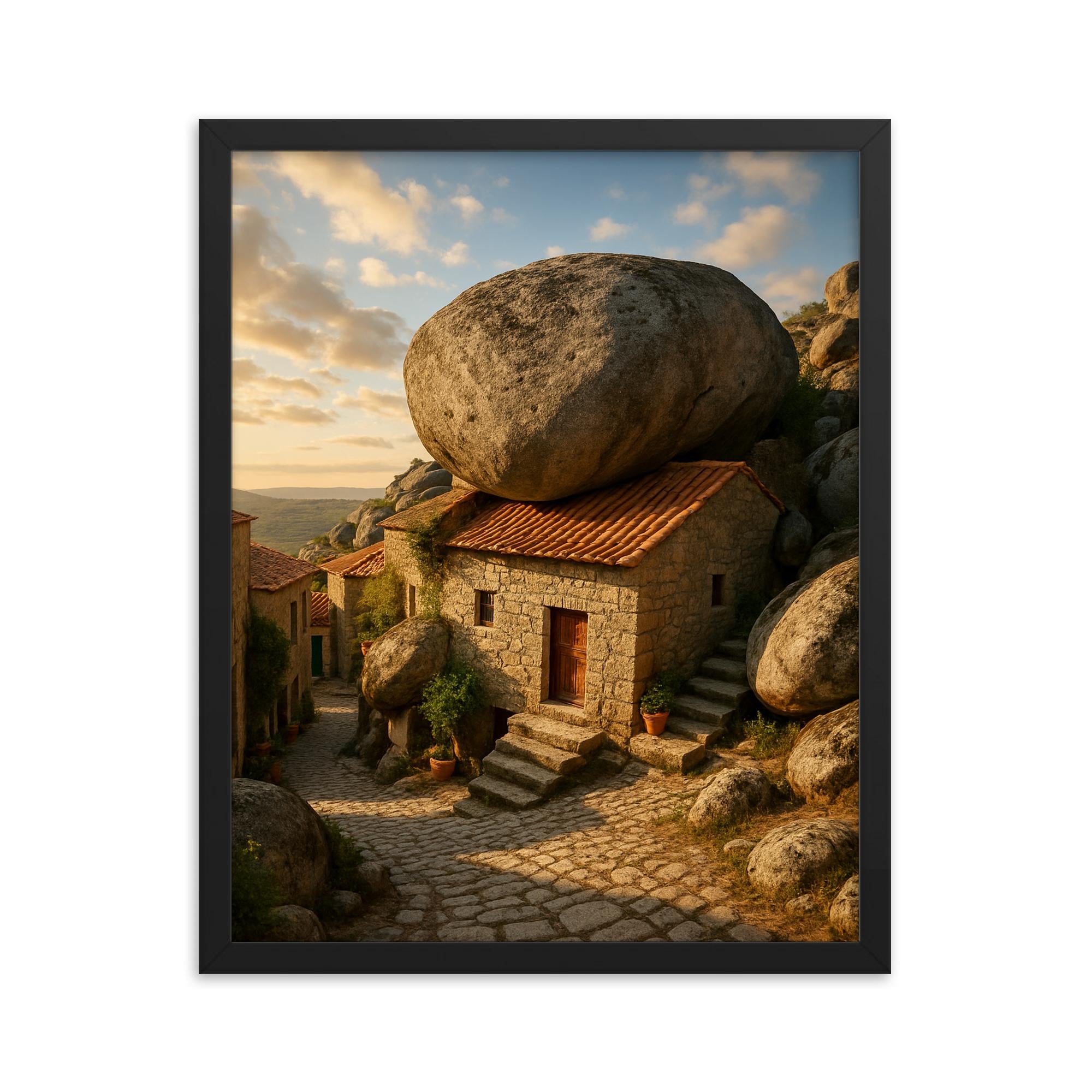 Monsanto Boulder Houses Portugal Framed Print – Unique Rustic Wall Art Home Decor, Authentic Portuguese Stone Village Photography