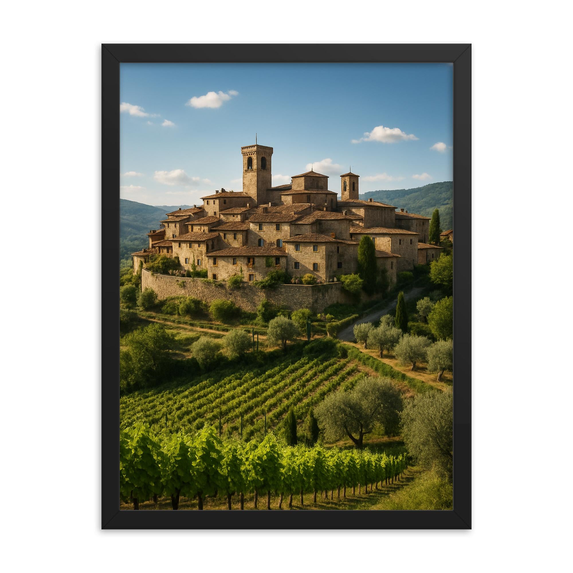 Montefioralle Tuscany Italy Framed Wall Art – Authentic Italian Village Landscape Print for Home Décor & Gift