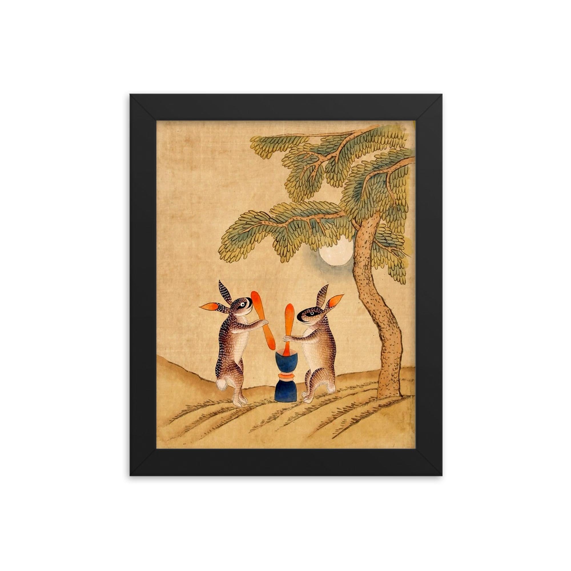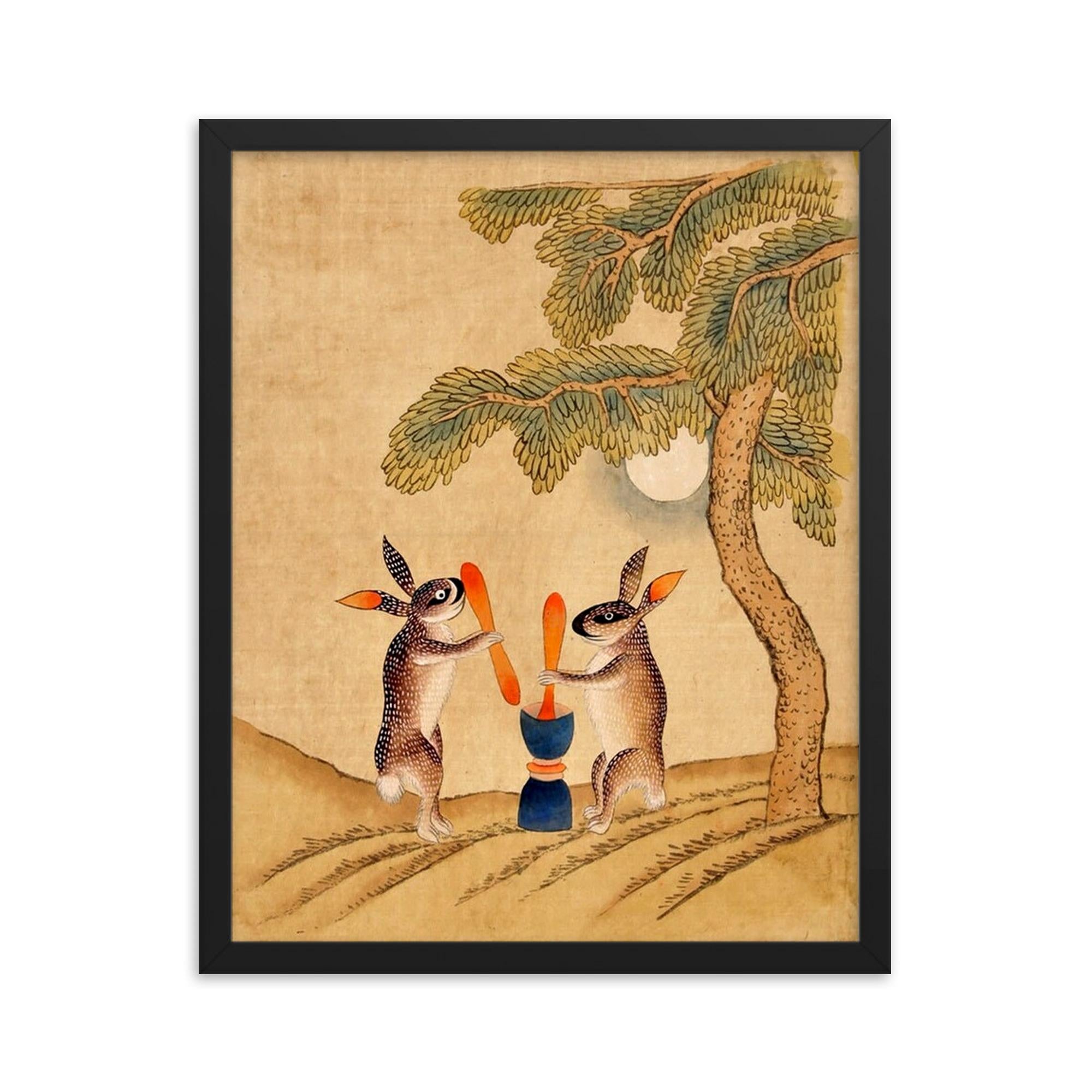 Framed Moon Bunny of Immortality Wall Art – Classic Minhwa Korean Mythology Folk Art Print for Unique Home Decor