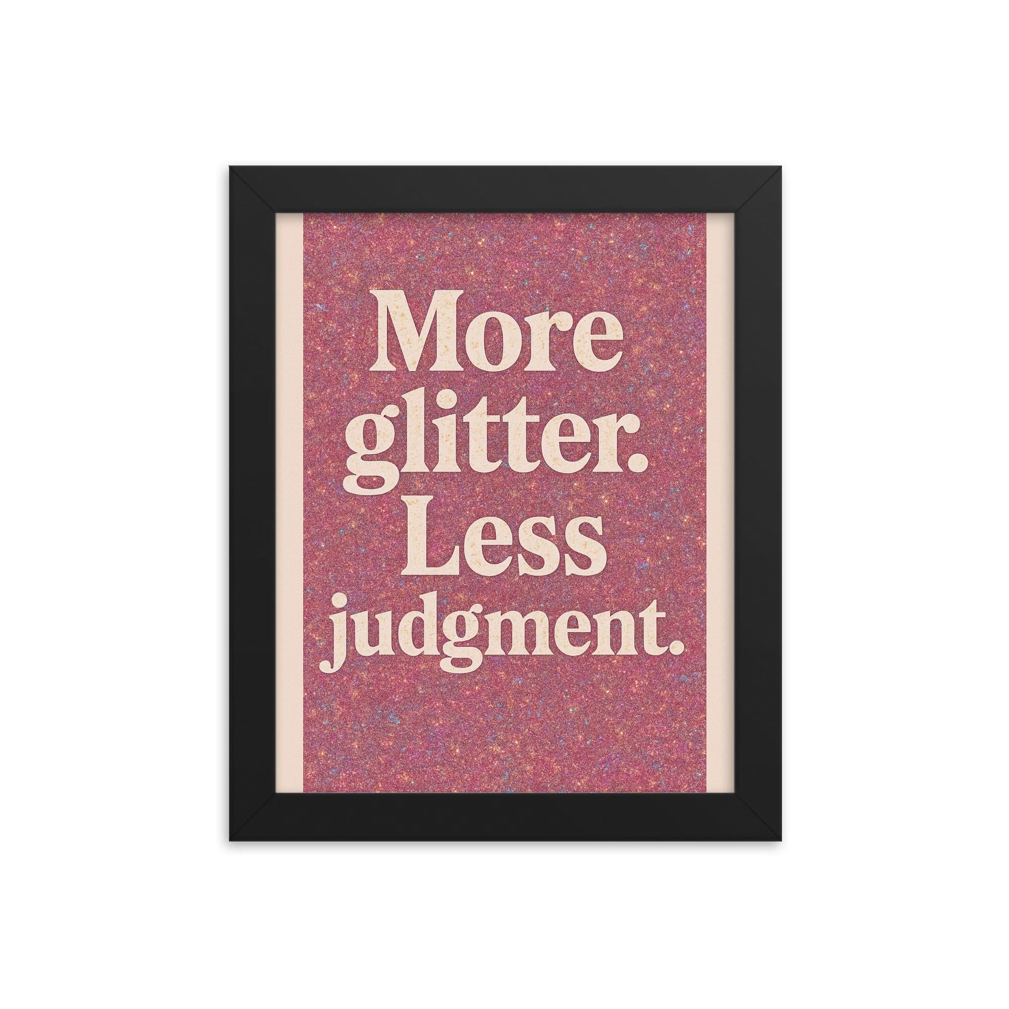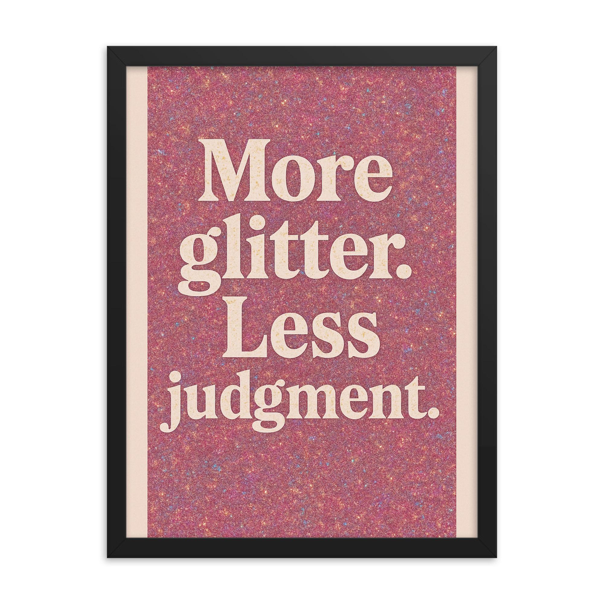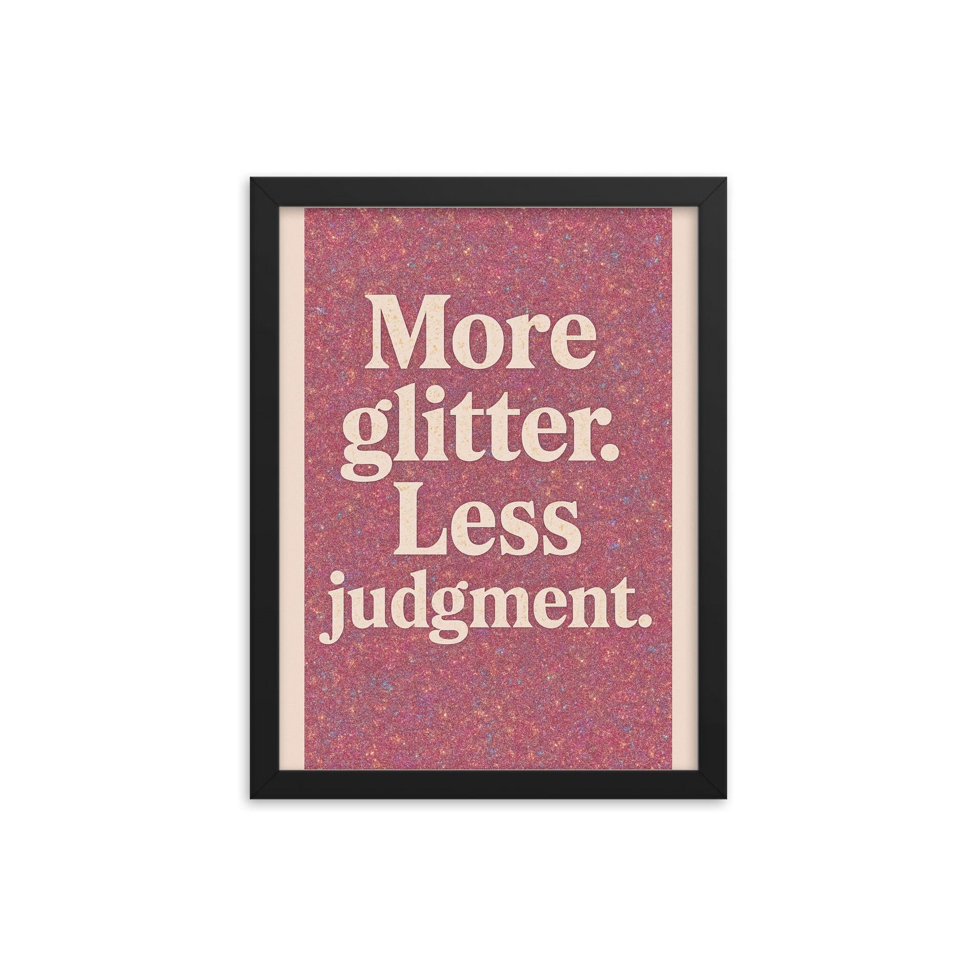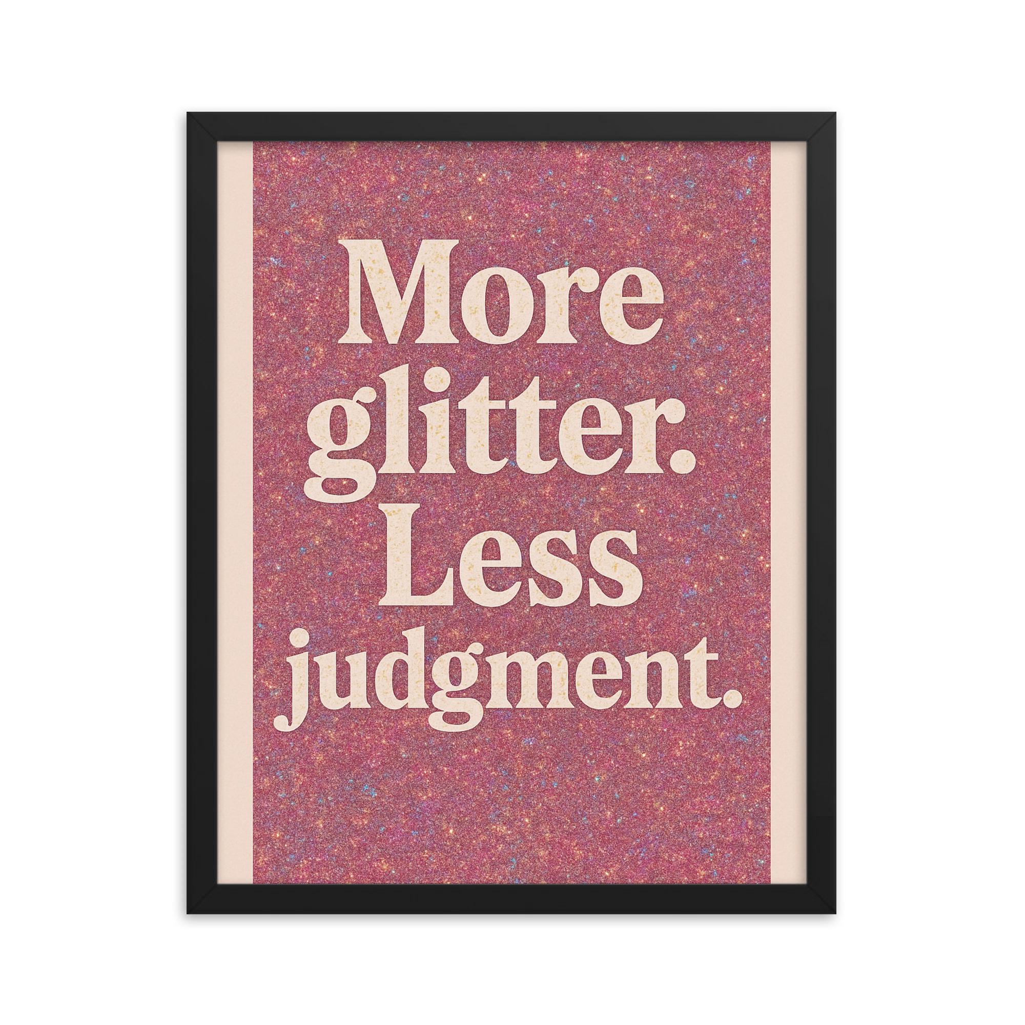 Brighten your space—and your mindset—with this uplifting framed print: More glitter Less judgment.