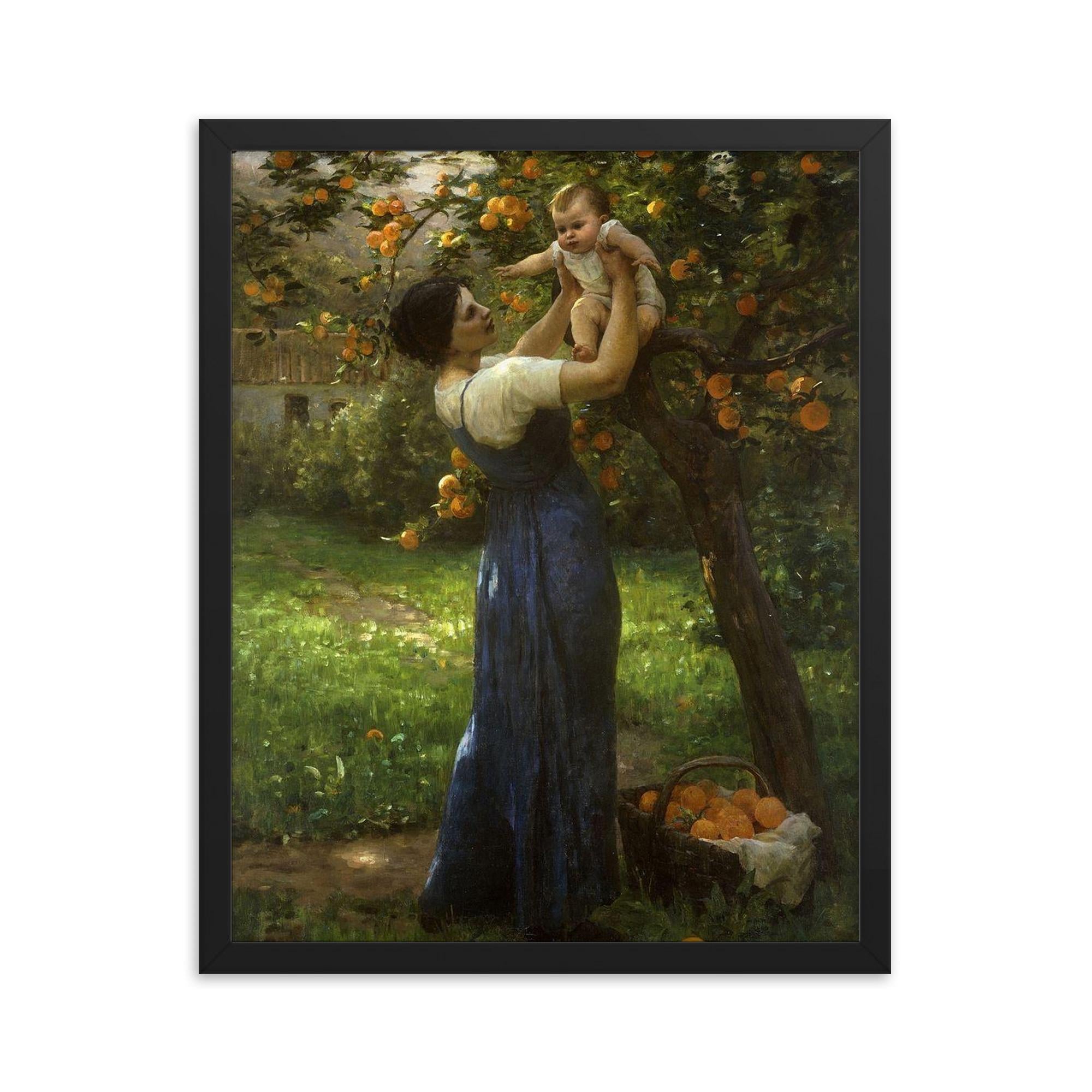Elevate your living space with the timeless beauty of Mother and Child in an Orange Grove by Virginie Demont-Breton, now available as a stunning framed print.