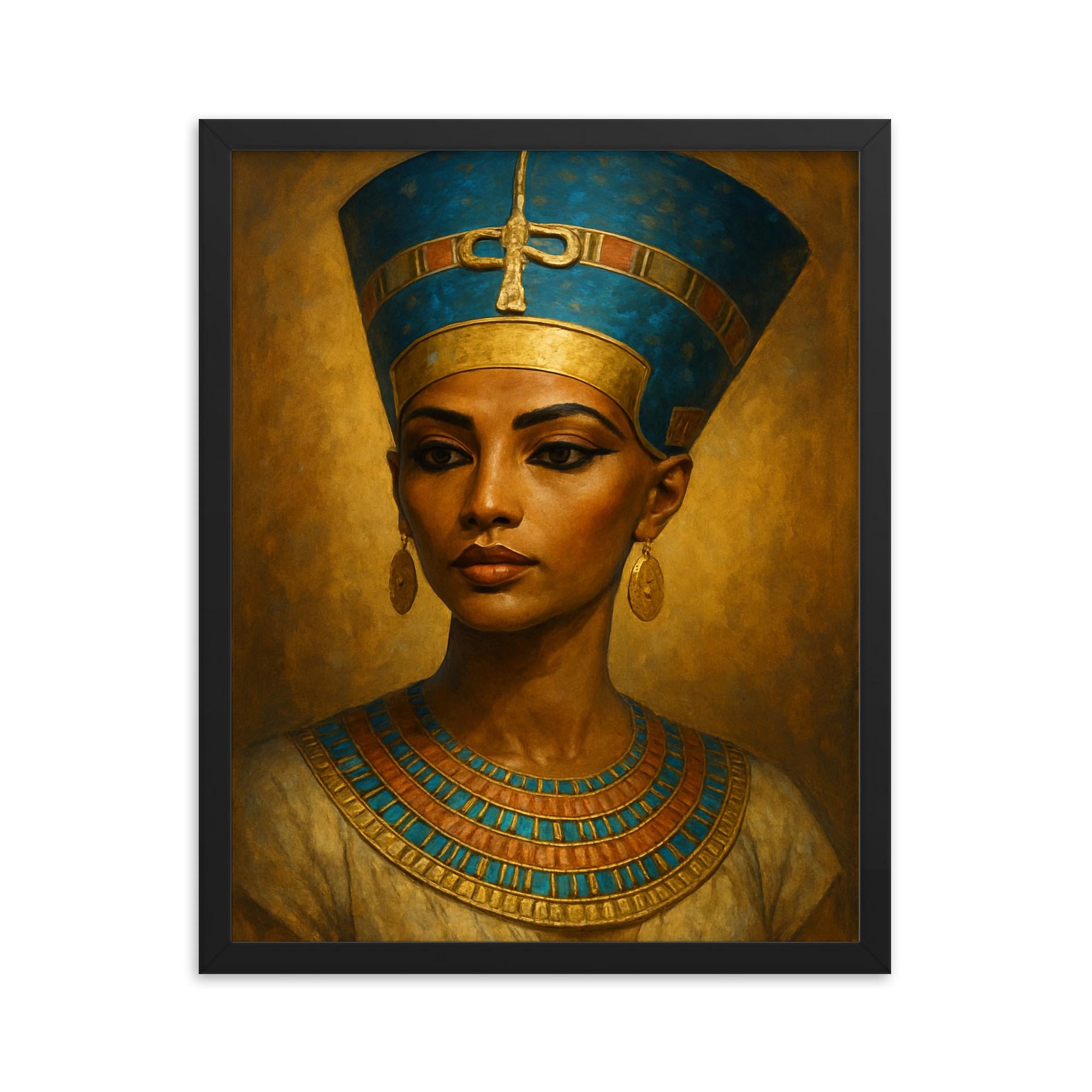 Elevate your space with timeless elegance through this stunning framed print of Nefertiti—the iconic symbol of beauty and power.
