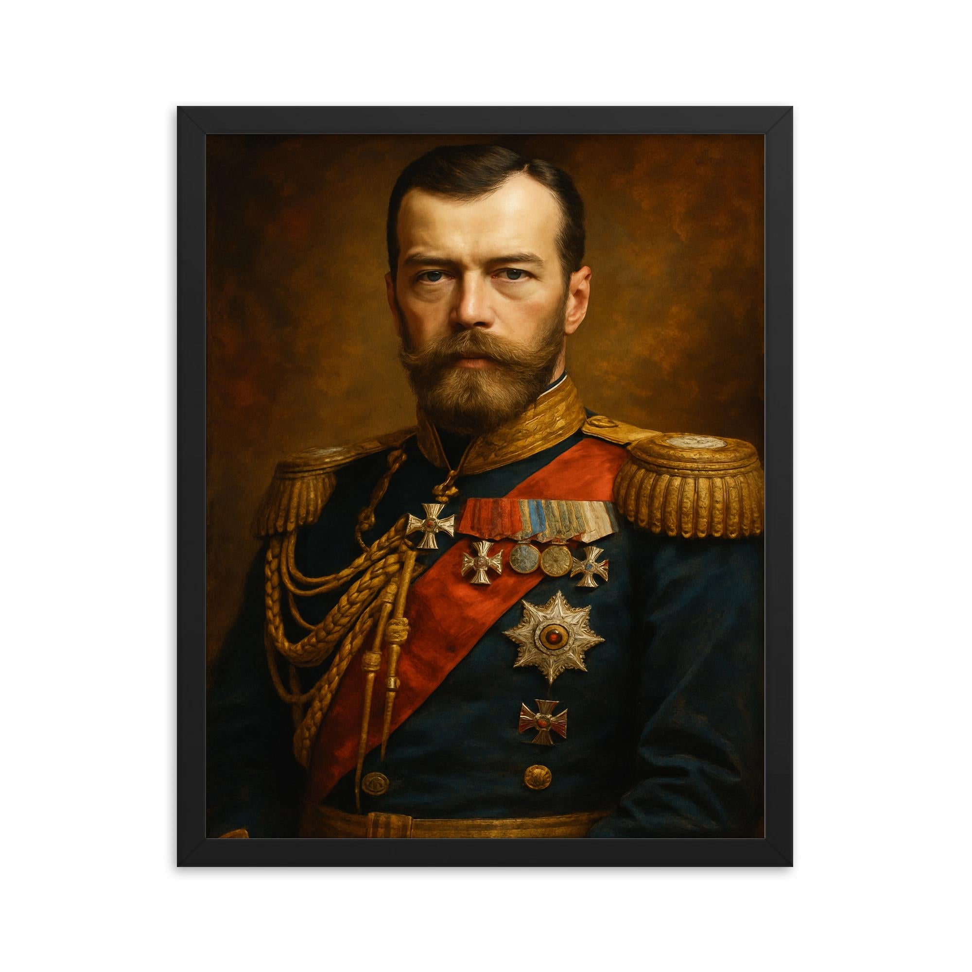 Bring timeless elegance to your space with our stunning framed print of Nicholas II of Russia—a perfect fusion of history and sophisticated wall art. This museum-quality piece pays homage to one of the most fascinating figures in Russian history, creating a captivating focal point in any room.