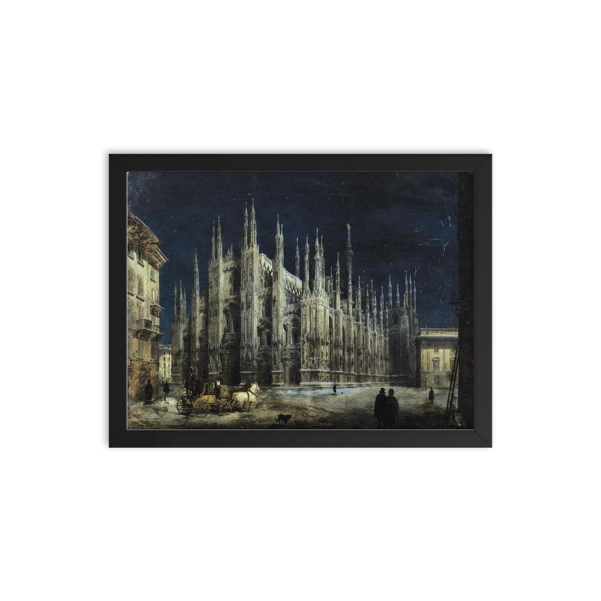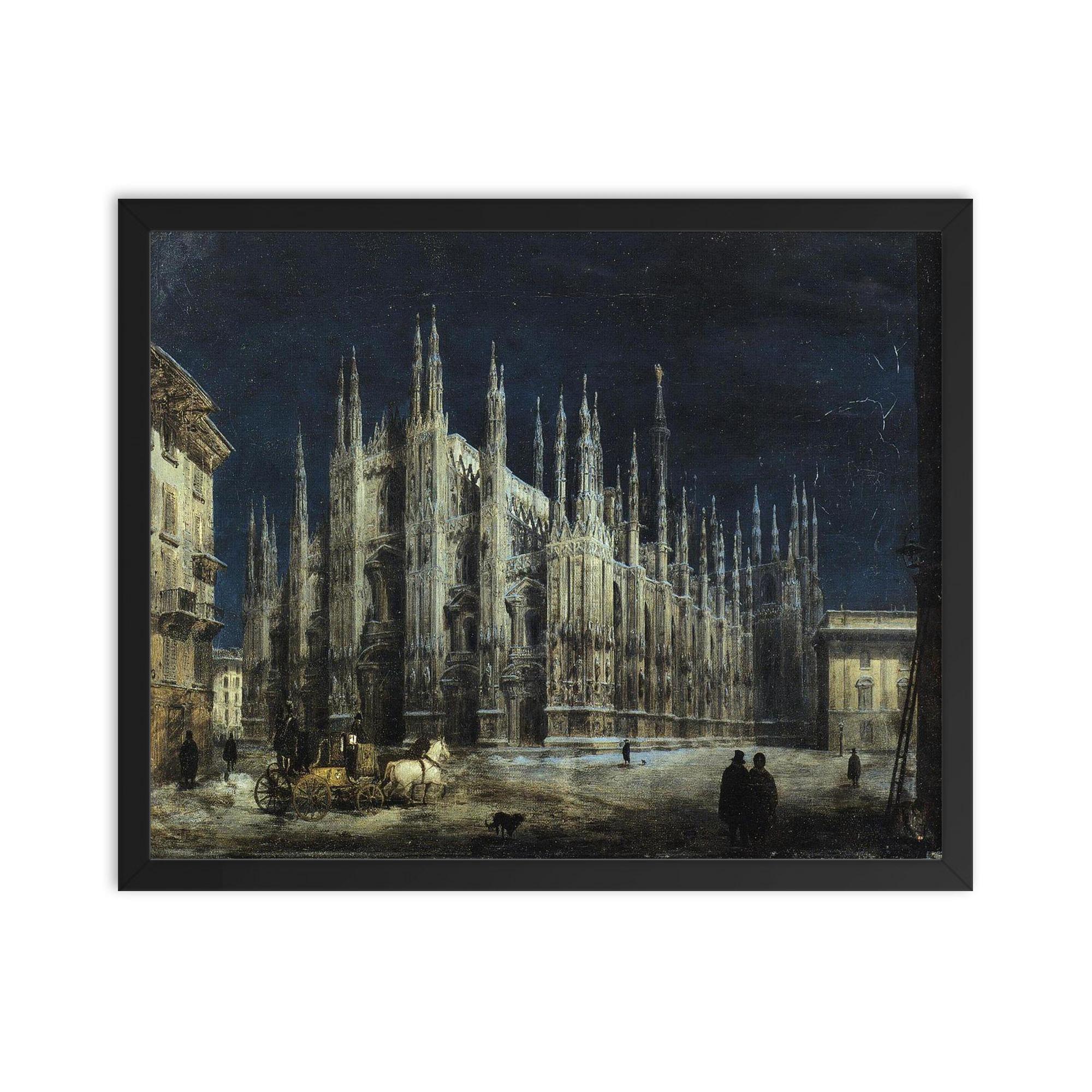 Elevate your living space with the timeless elegance of Night on the Piazza del Duomo by Angelo Inganni, beautifully presented as a framed print that brings classic artistry into your home.