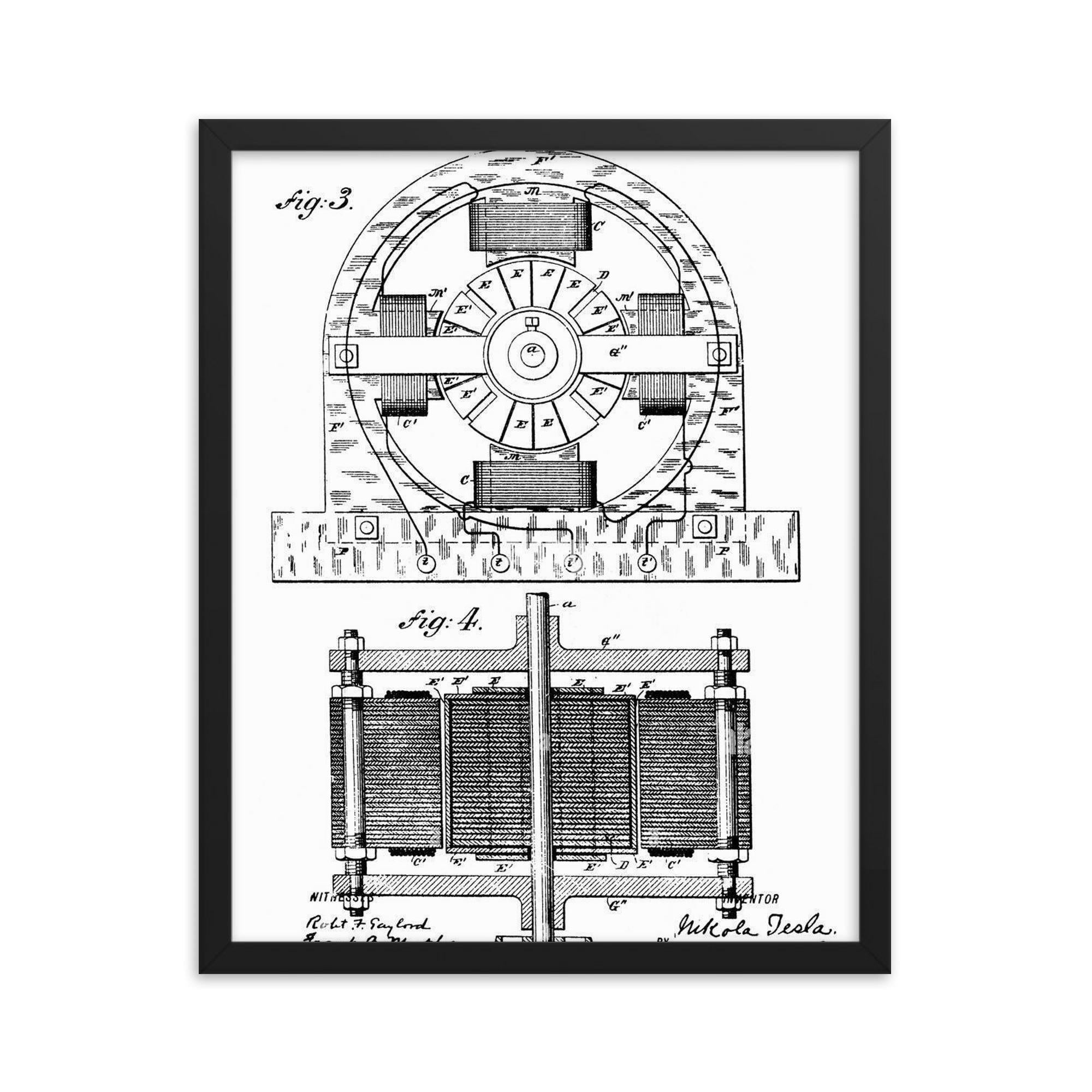 Own a Piece of Genius: Nikola Tesla’s Original Electro-Magnetic Motor Patent – Framed Wall Art