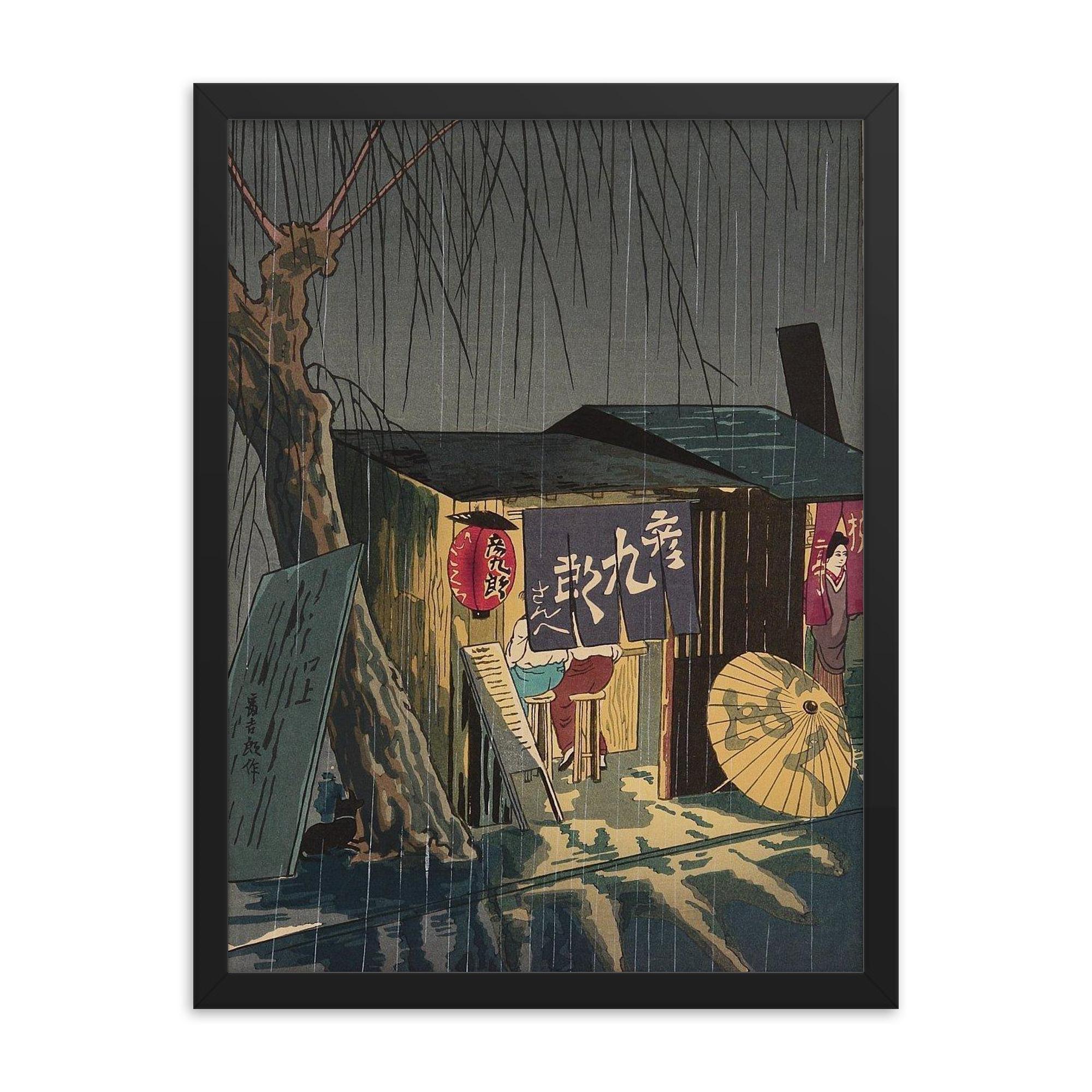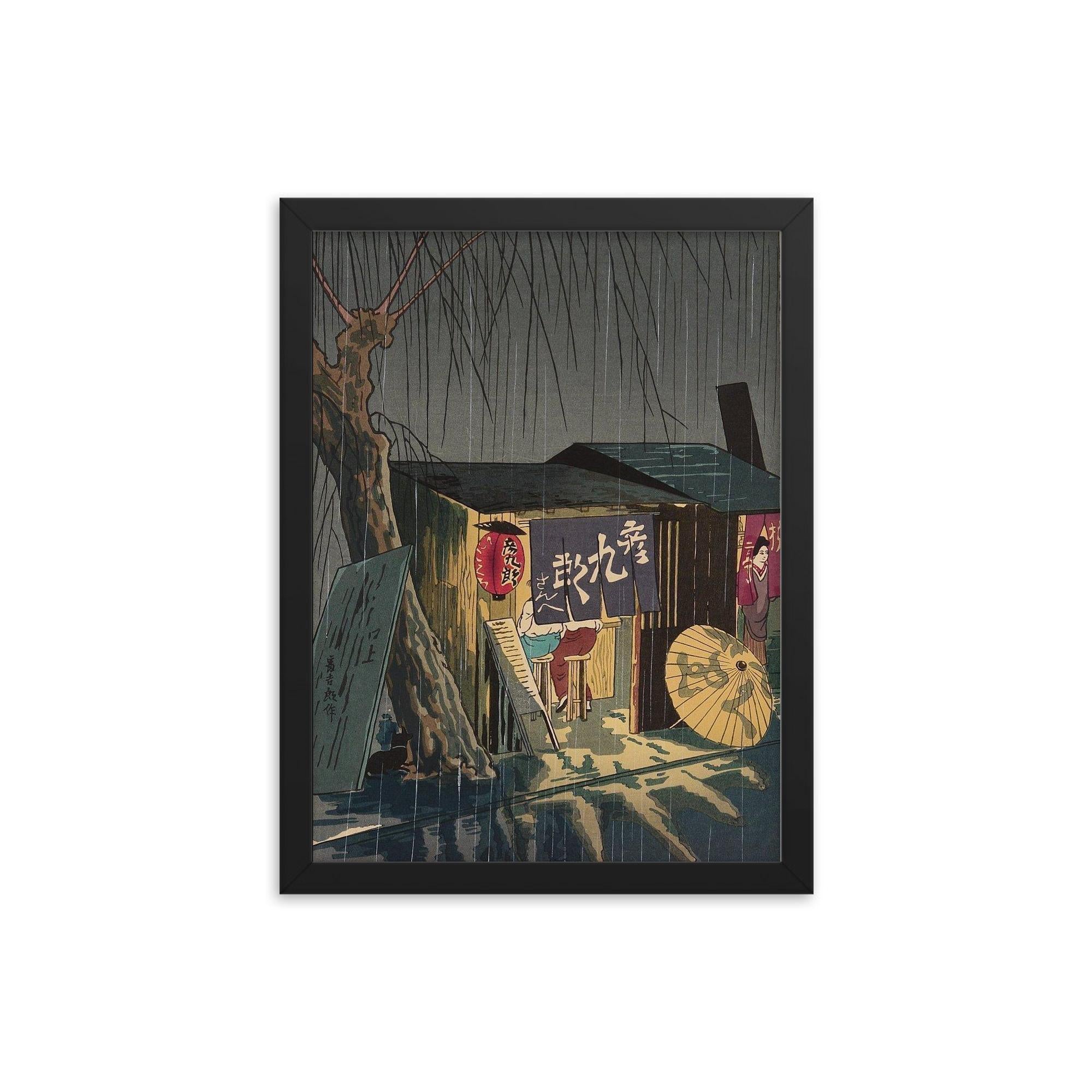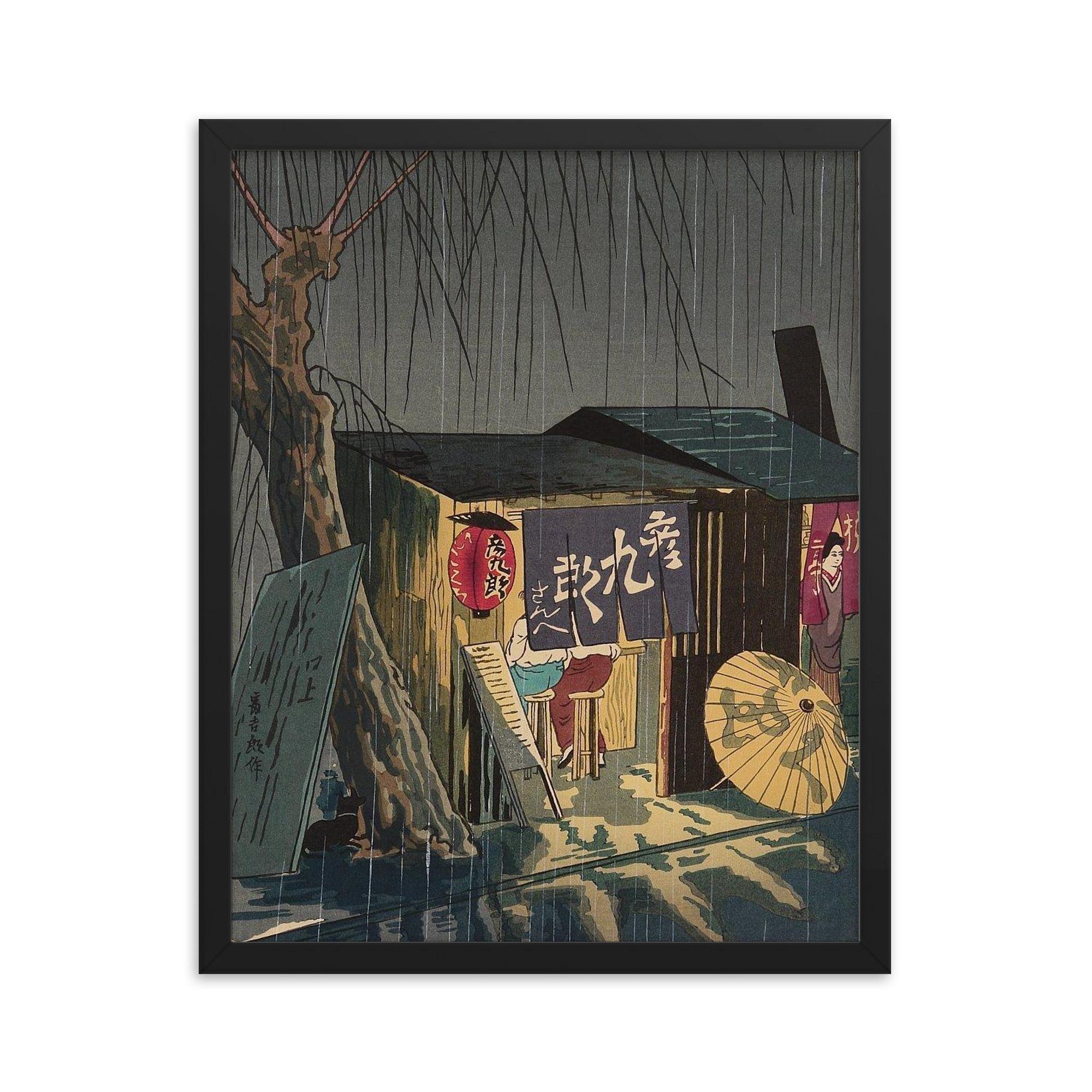 Framed Noodle Restaurant on a Rainy Night Wall Art by Tokuriki Tomikichiro – Authentic Japanese Landscape Print for Home or Office Decor