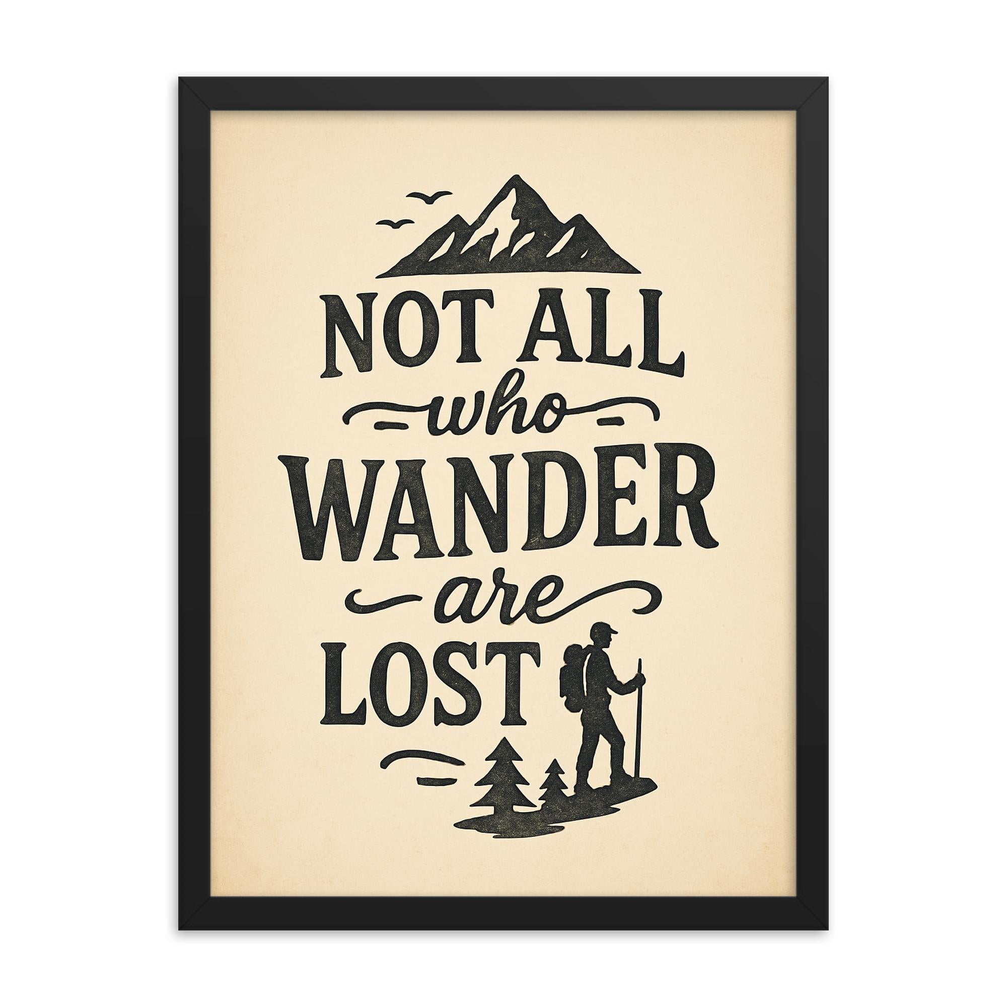 Bring inspiration and adventure into your home with this stunning framed print featuring the timeless phrase Not all who wander are lost.