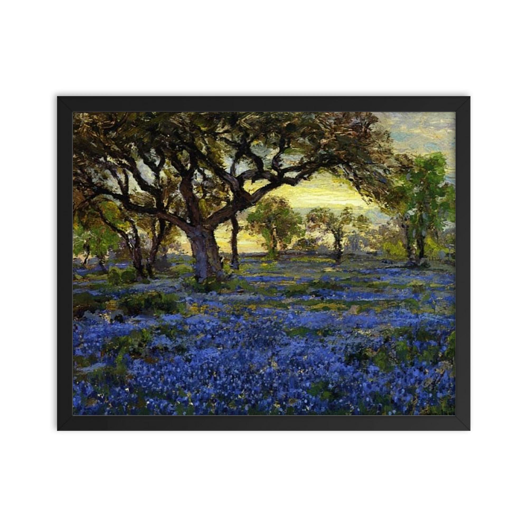 Transform your living space with the timeless beauty of the Old Live Oak Tree and Bluebonnets on West Texas Military Grounds, San Antonio framed print by celebrated Texas artist Julian Onderdonk.