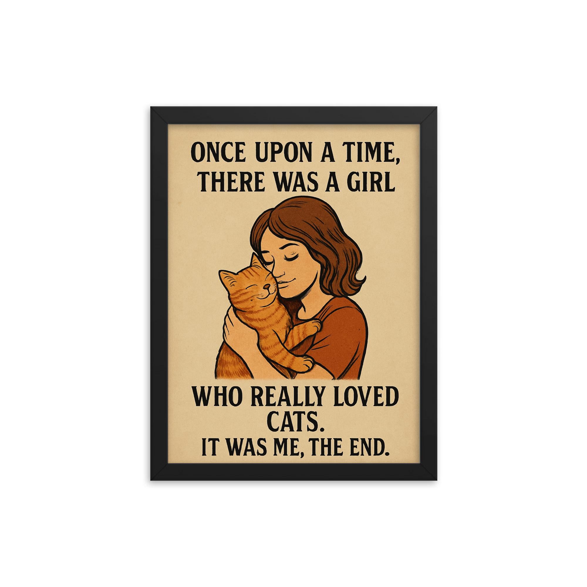 Celebrate your love for cats with this charming framed print: Once upon a time there was a girl who really loved cats It was me the end.